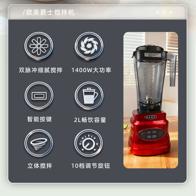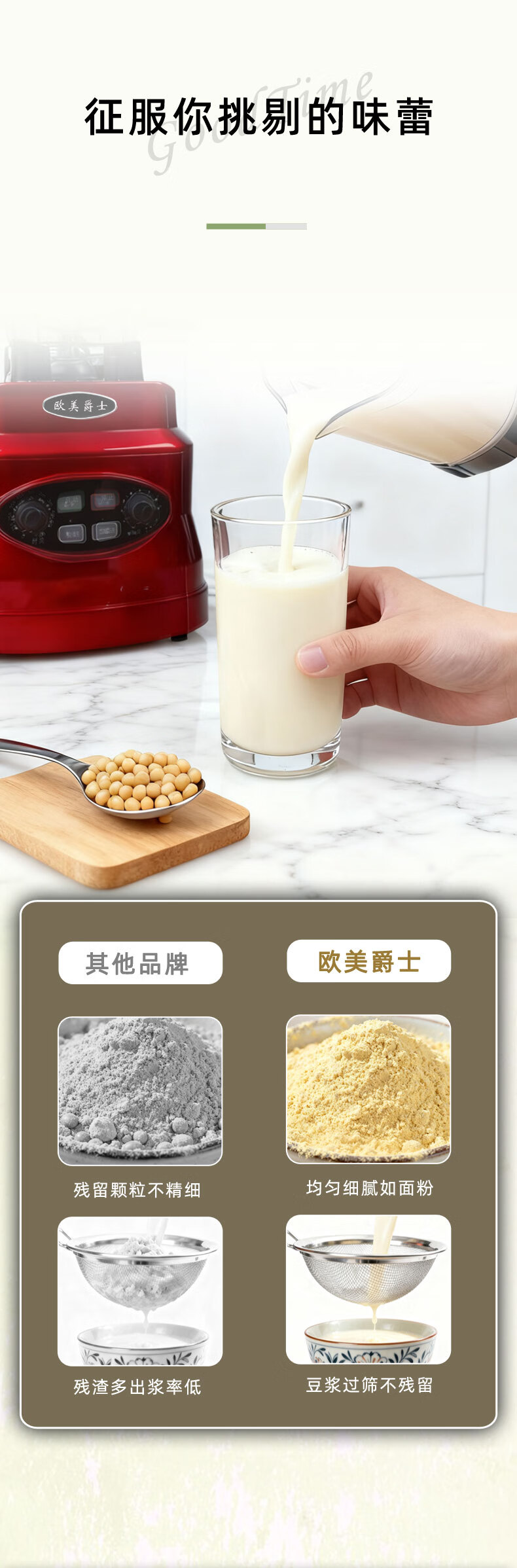欧美爵士破壁机大容量家用轻音全自动多功能降噪早餐料理机沙冰磨浆搅拌机豆浆榨果汁机婴儿辅食机OMB8R-C