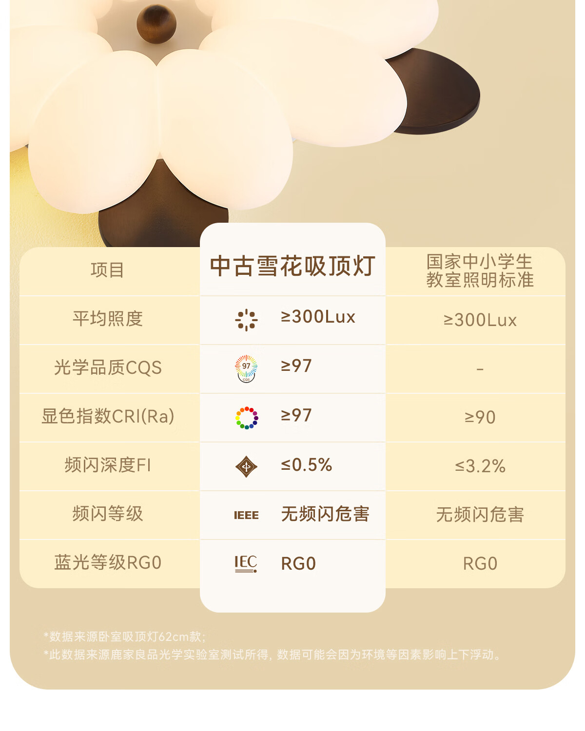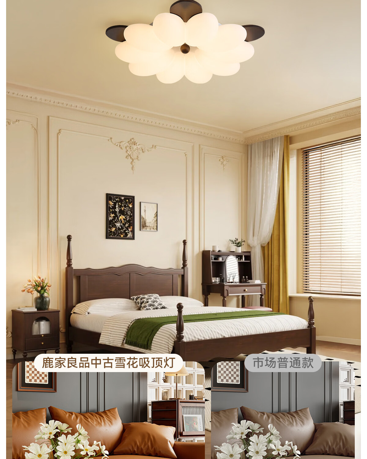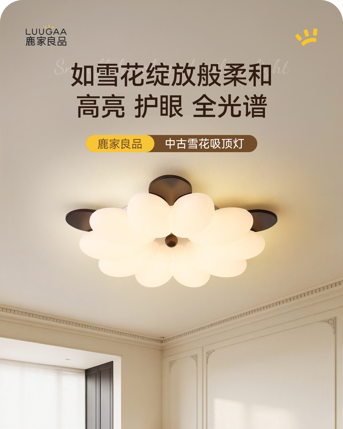 鹿家良品(LUUGAA)中古雪花卧室吸顶灯全光谱护眼中古风复古主卧卧室灯书房中山灯具 【荐】全光谱55cm三色光84W