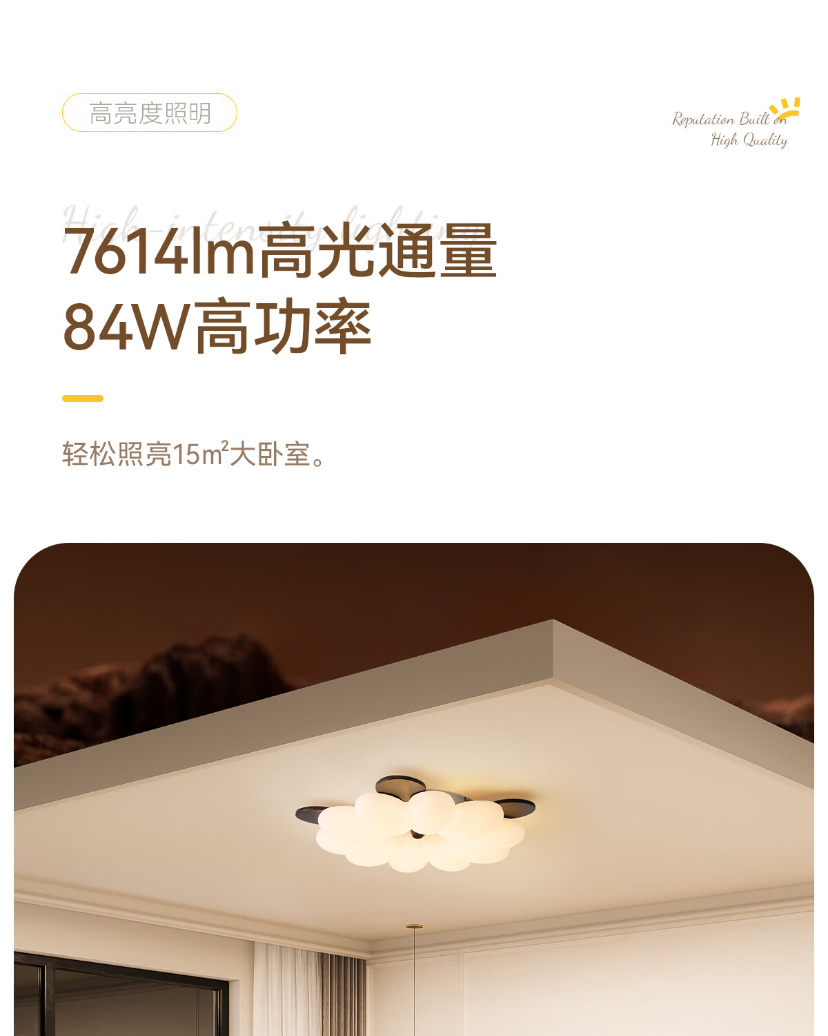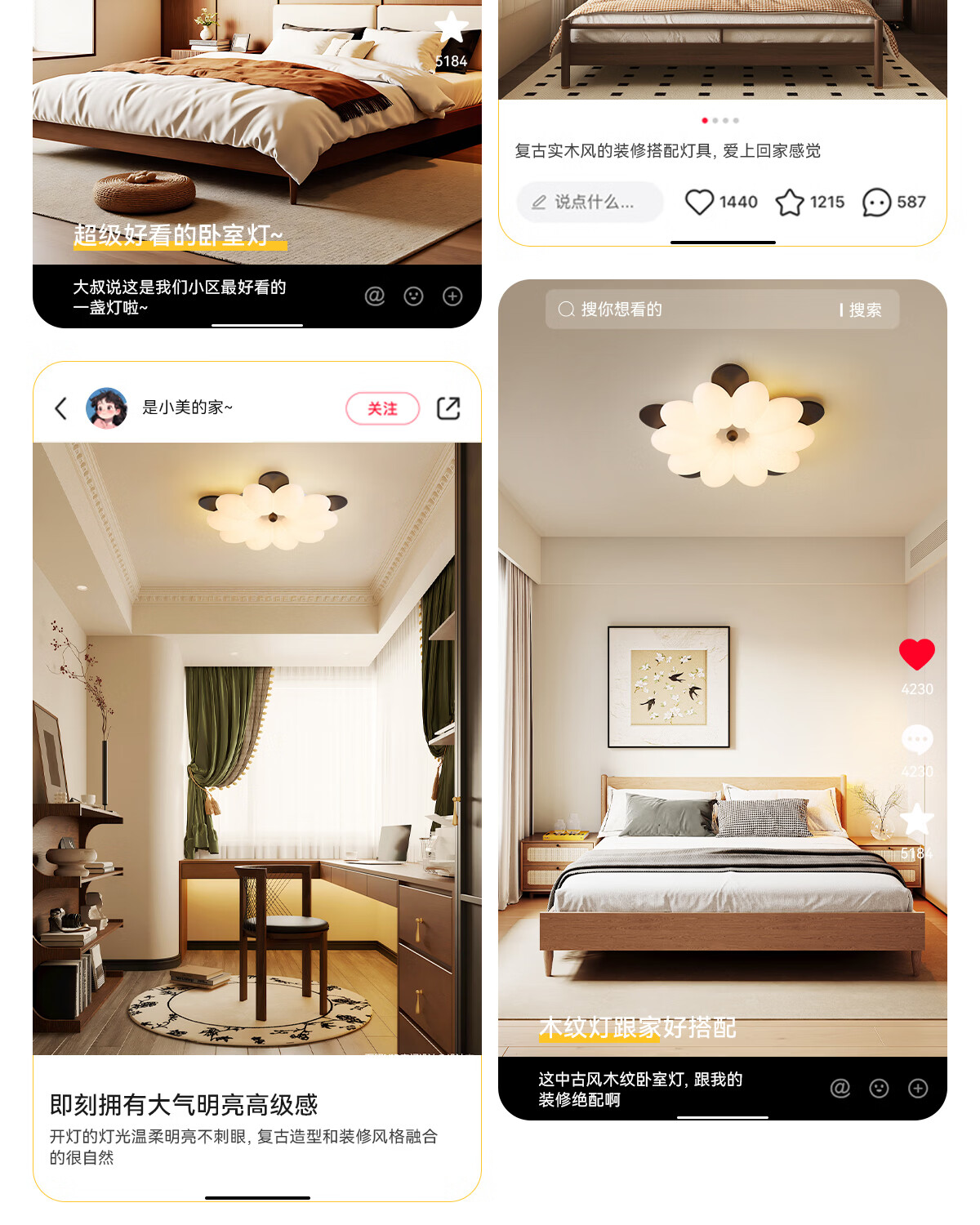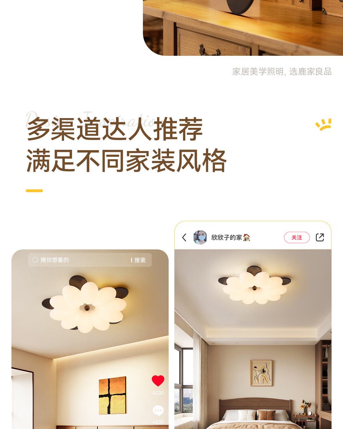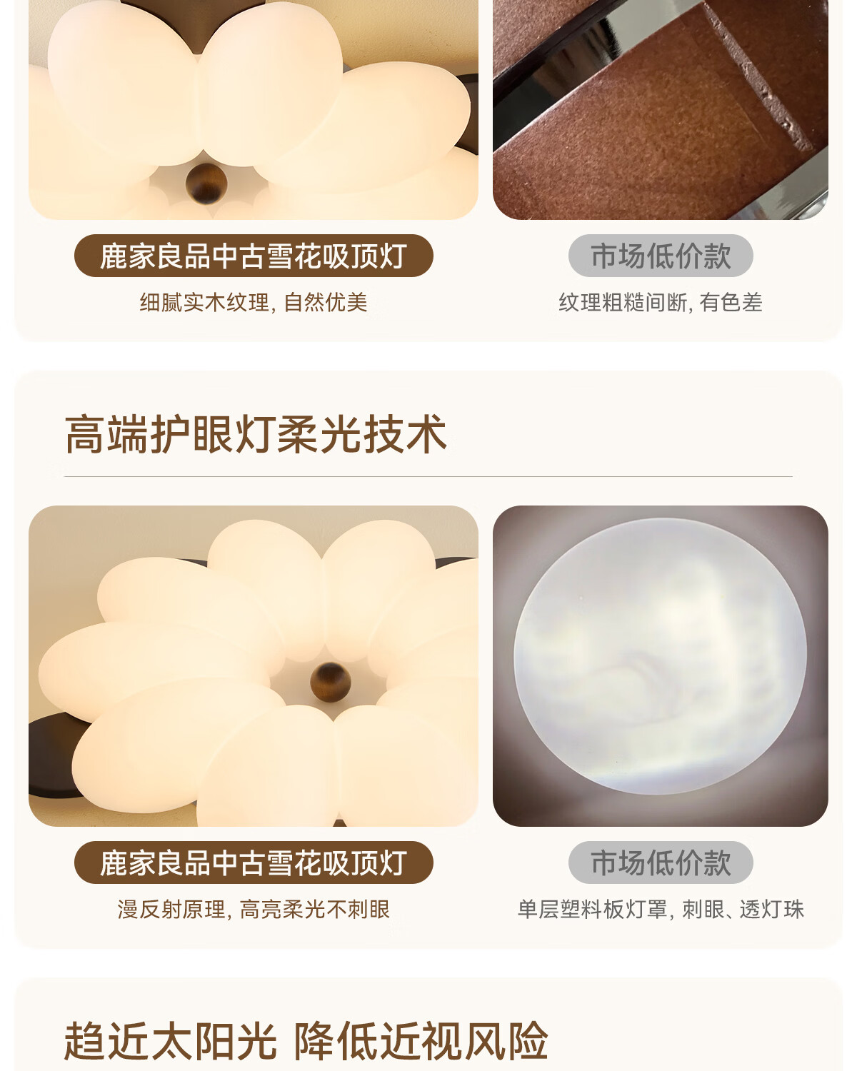 鹿家良品(LUUGAA)中古雪花卧室吸顶灯全光谱护眼中古风复古主卧卧室灯书房中山灯具 【荐】全光谱55cm三色光84W