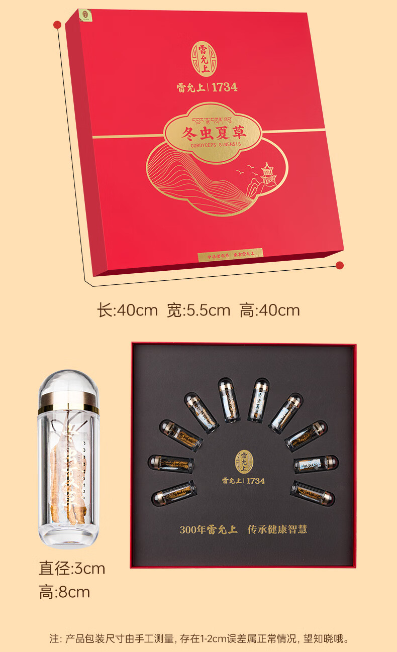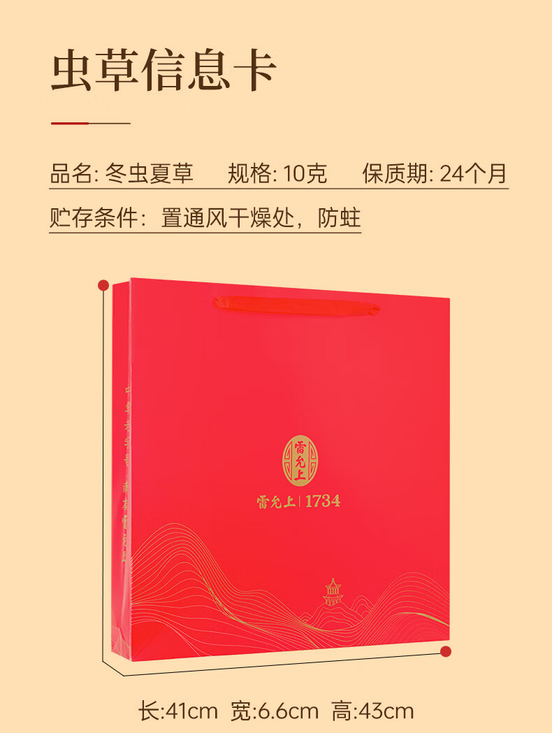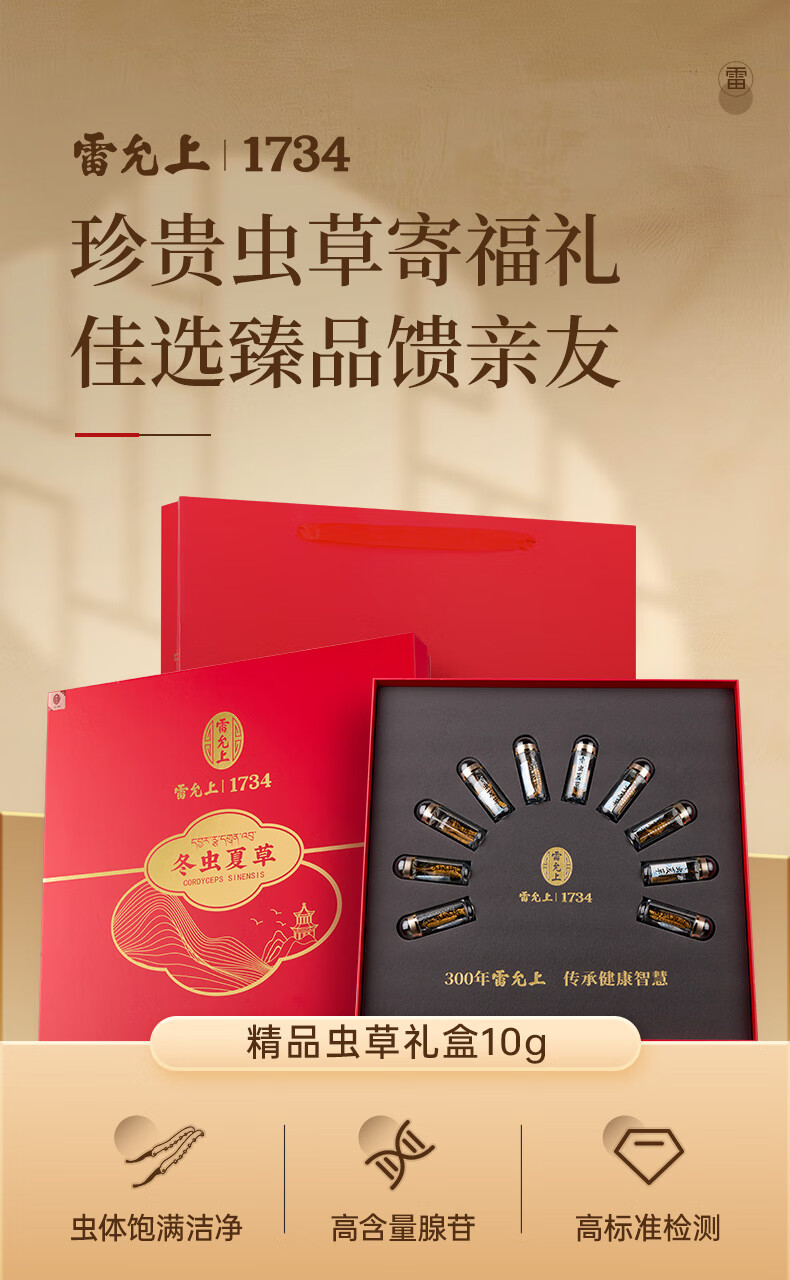 雷允上【年货礼盒】冬虫夏草礼盒约3-5根/g10g约30-50根 买10g送1g