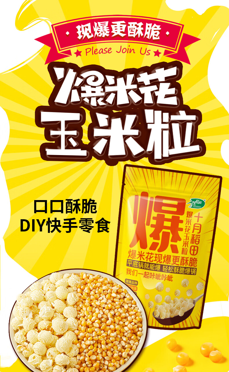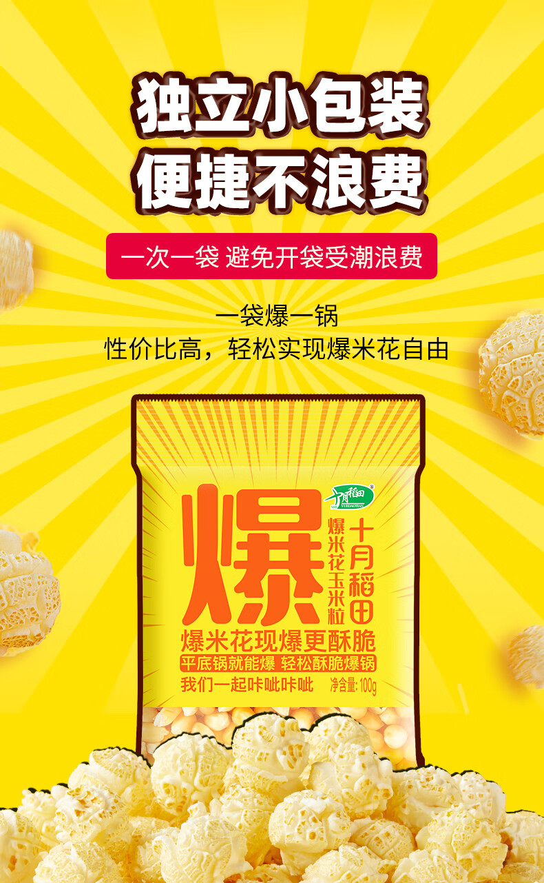 十月稻田 球形爆米花专用玉米粒 1.4斤7袋 (爆裂玉米 DIY 自制爆米花原料)