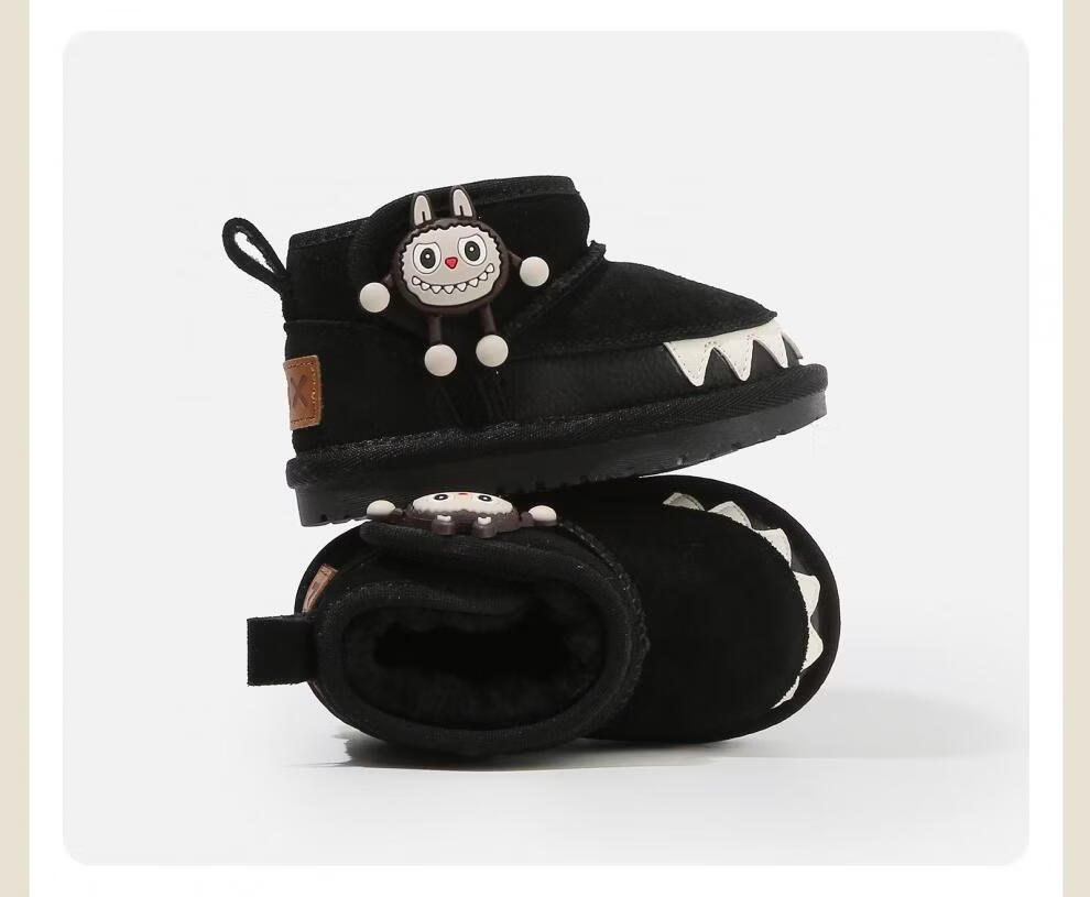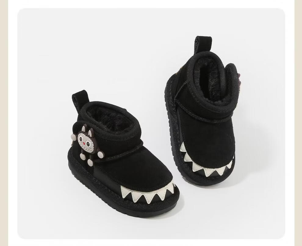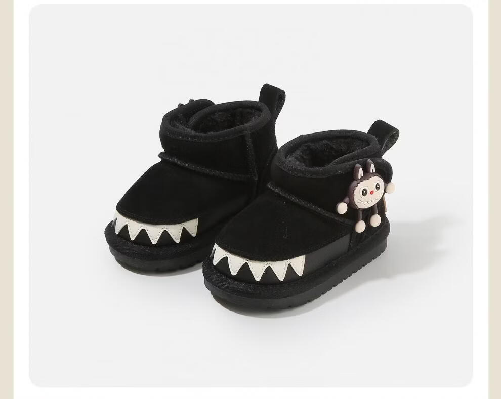甜贝星雪地靴婴儿童软底学步鞋子冬季新款加绒短靴女童鞋保暖小童 黑色 26 工厂订货价-30整件(50双)