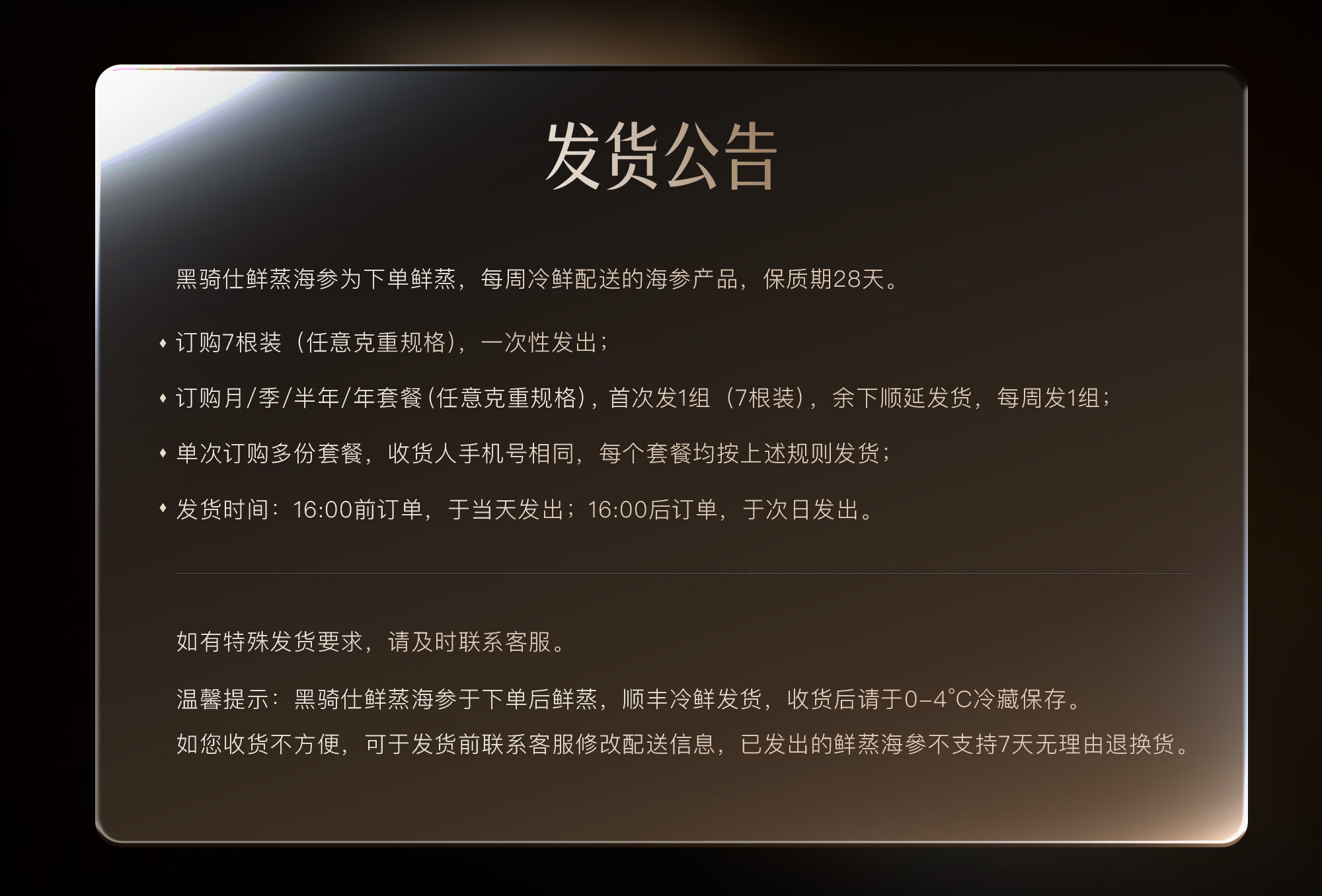 黑骑仕鲜蒸海参17g双周套餐大连野生辽参滋补品孕妇送礼即食 【单周套餐-浓香高汤味】17g*7支