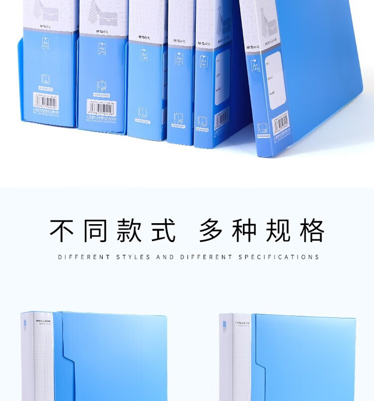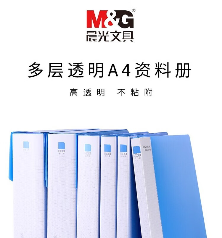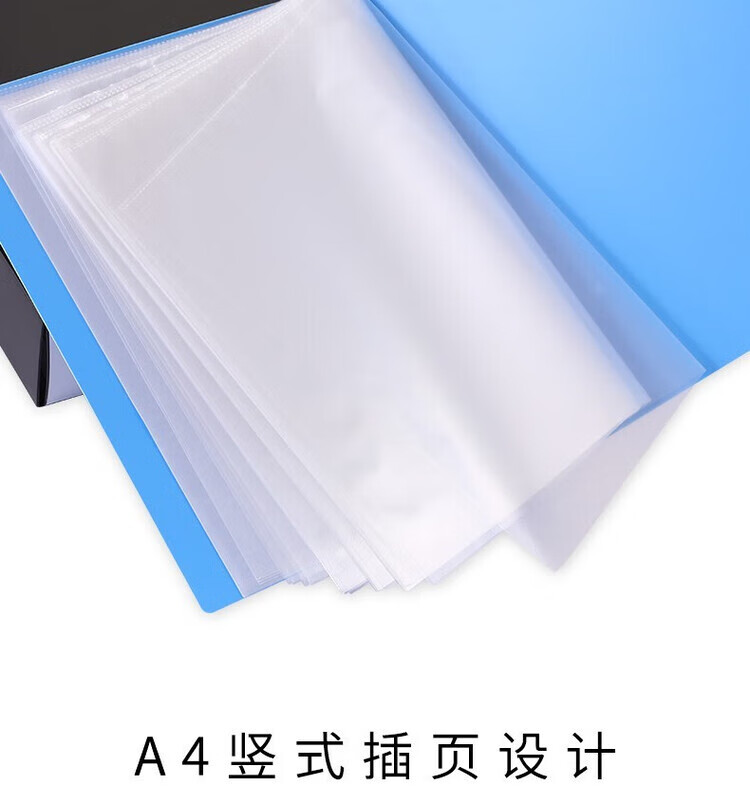 晨光(MG) A4资料册档案活页文件夹收纳册透明插页袋收集册合同文件收纳夹多层办公用品 【蓝色1个装】100页资料册丨附赠外盒