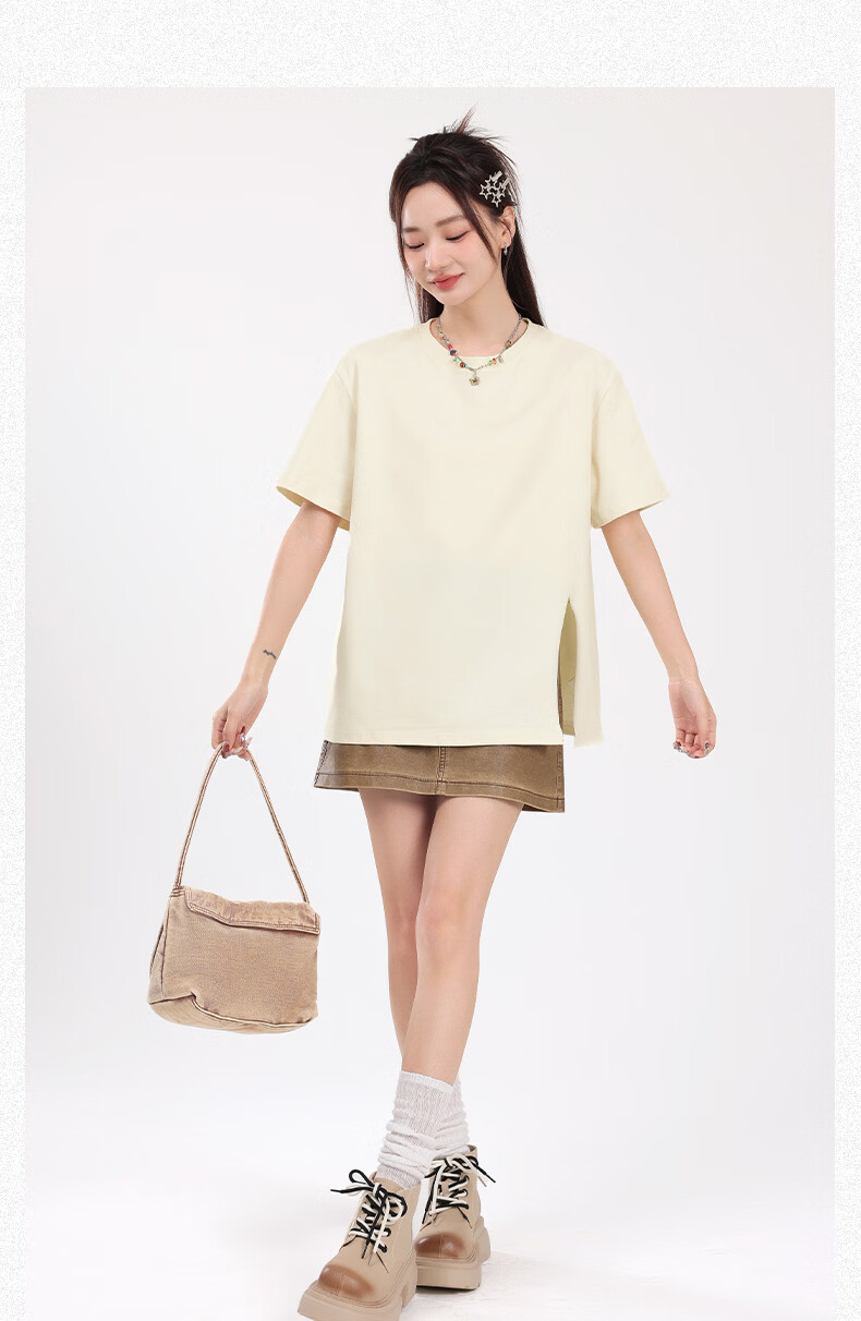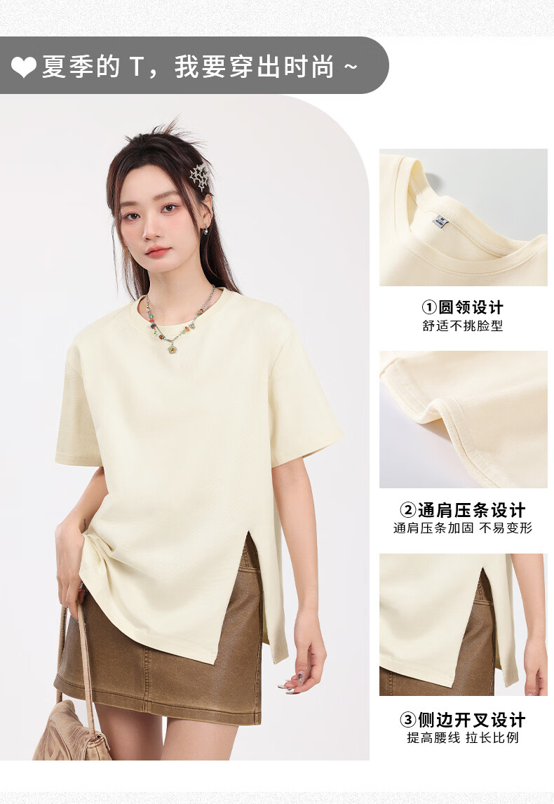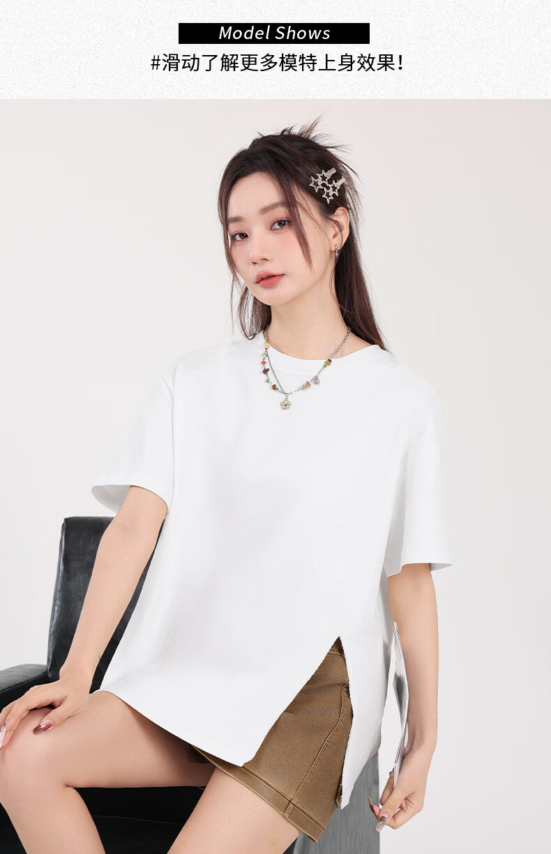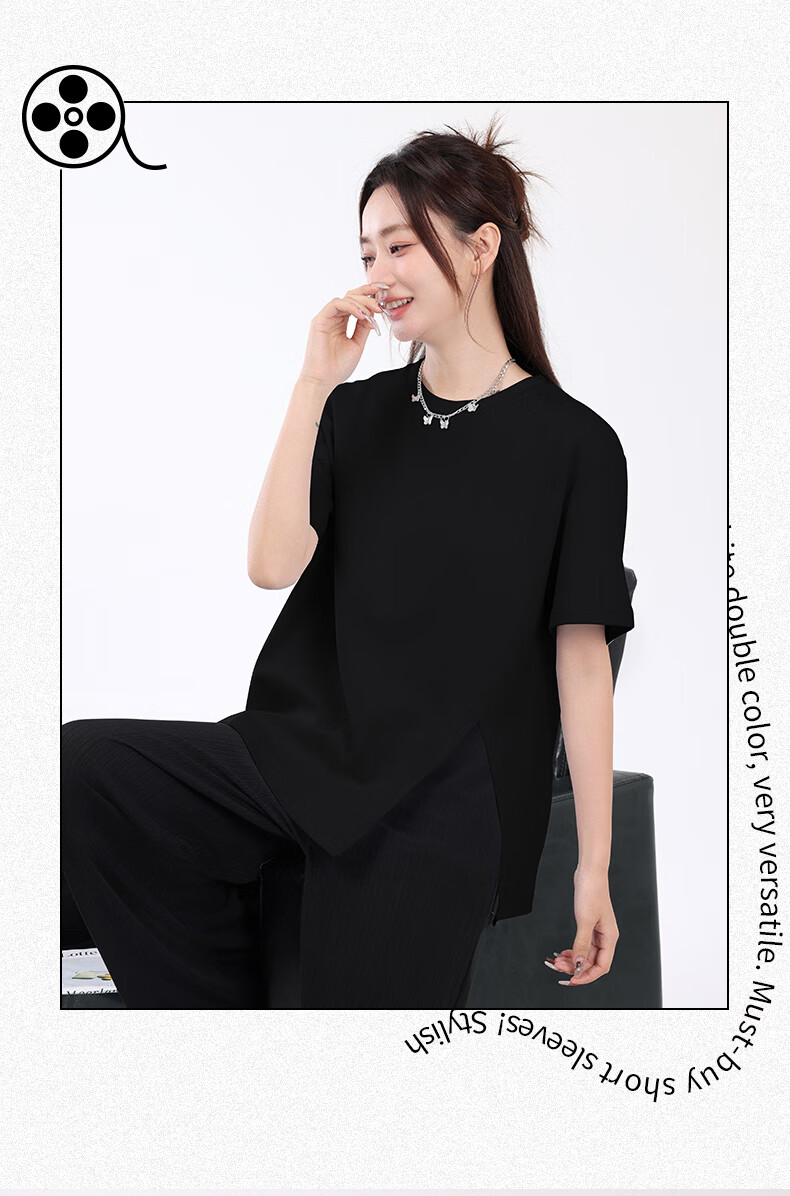 回力(Warrior)开叉宽松短袖T恤女2026年夏季女装新款潮流时尚慵懒随性休闲上衣 黑#回力白标K S