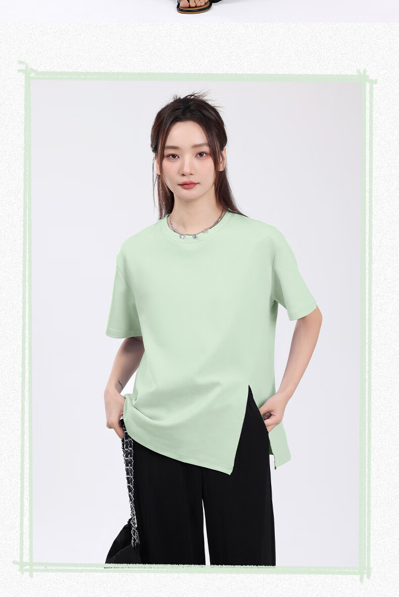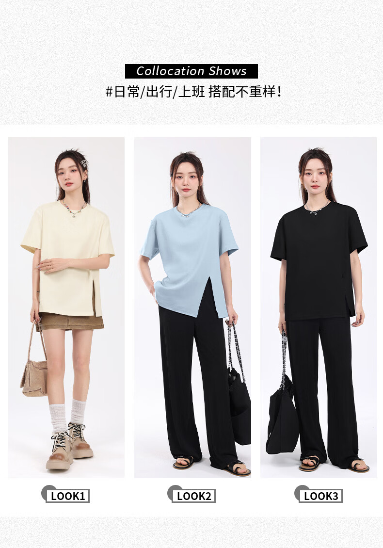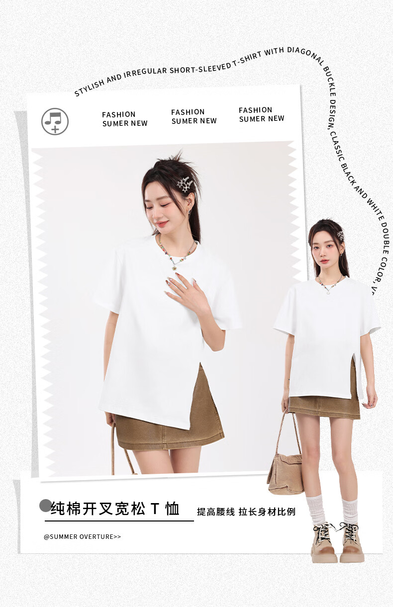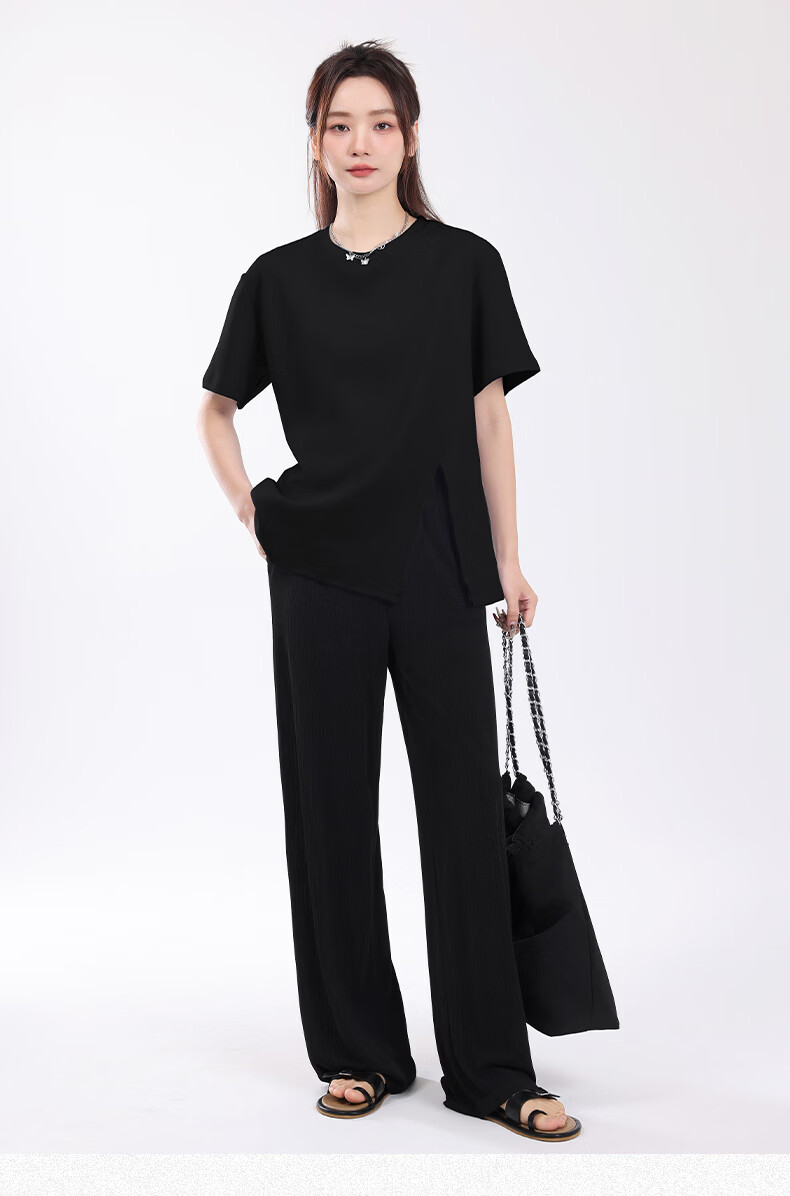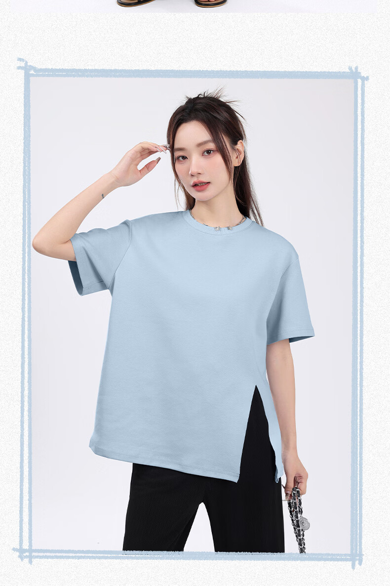 回力(Warrior)开叉宽松短袖T恤女2026年夏季女装新款潮流时尚慵懒随性休闲上衣 黑#回力白标K S