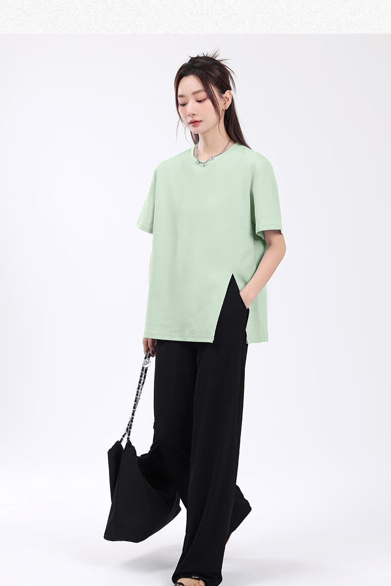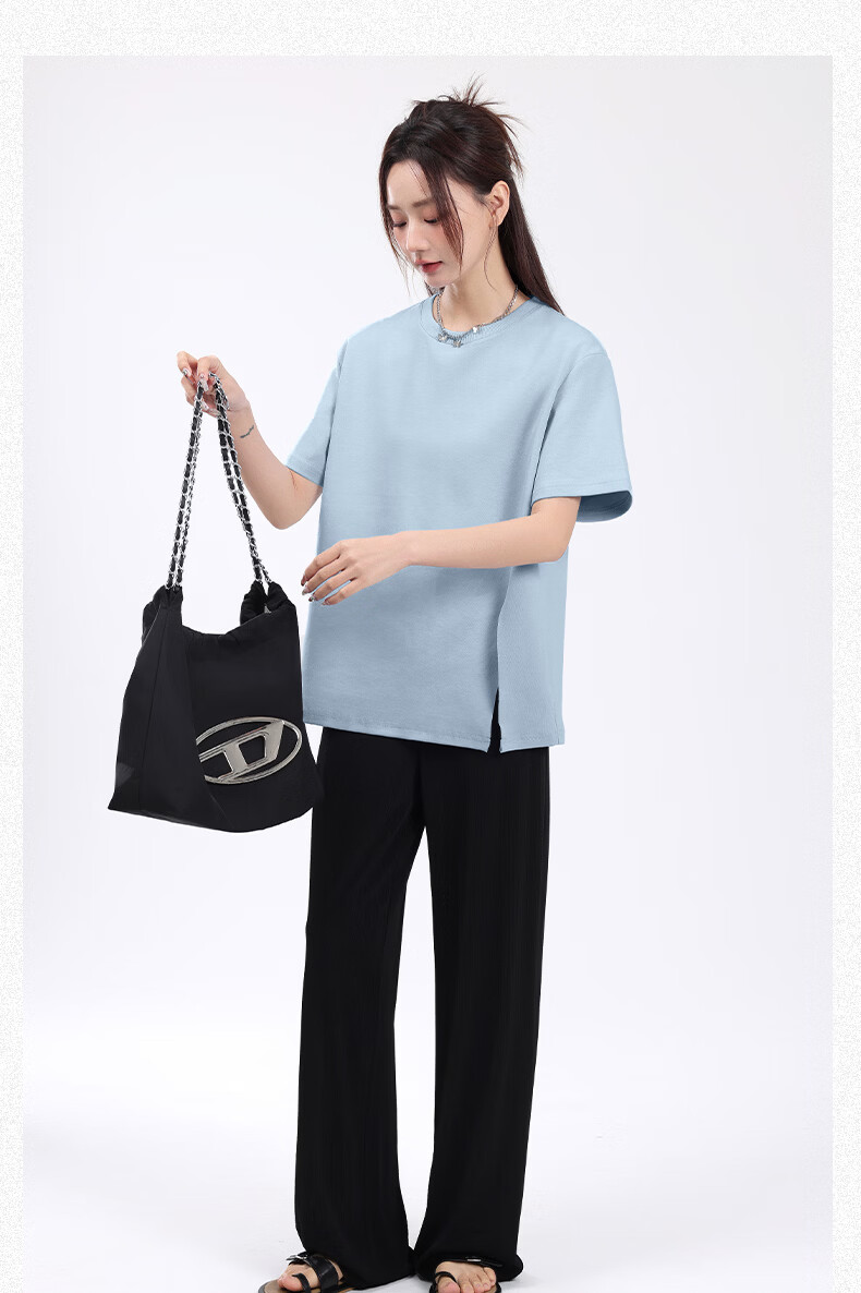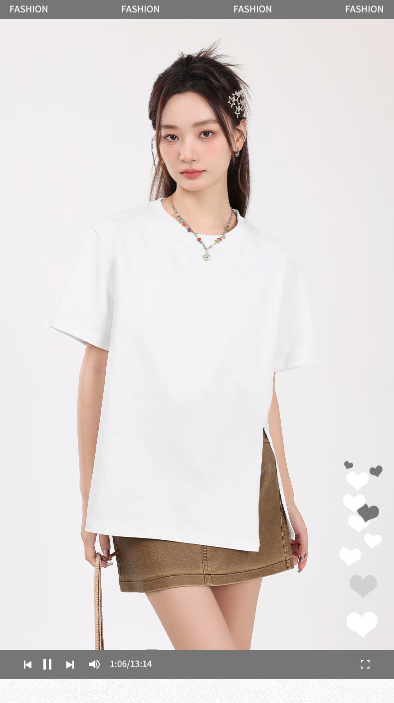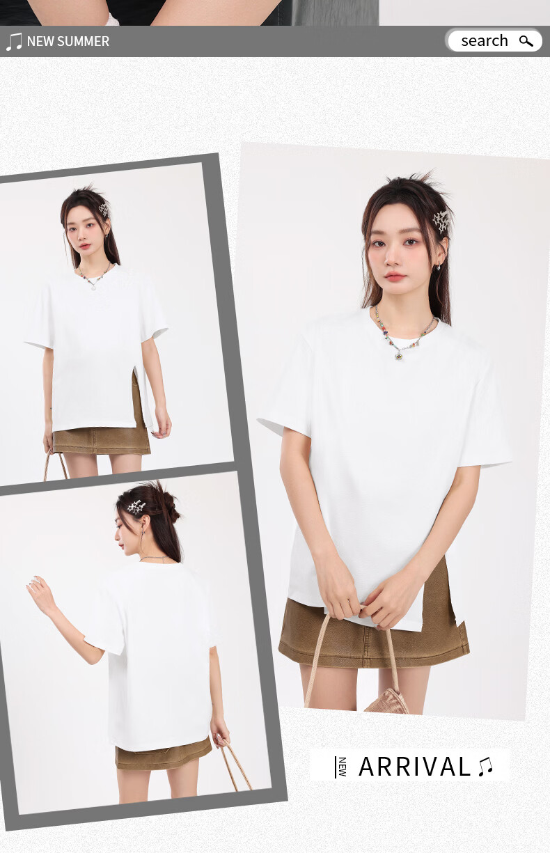 回力(Warrior)开叉宽松短袖T恤女2026年夏季女装新款潮流时尚慵懒随性休闲上衣 黑#回力白标K S