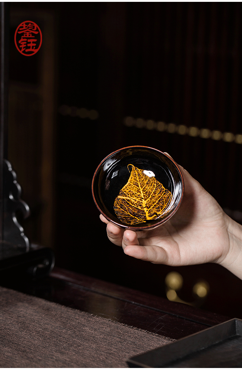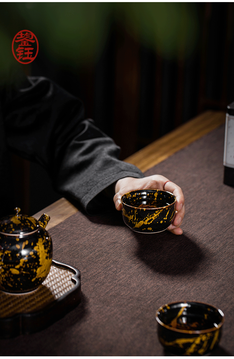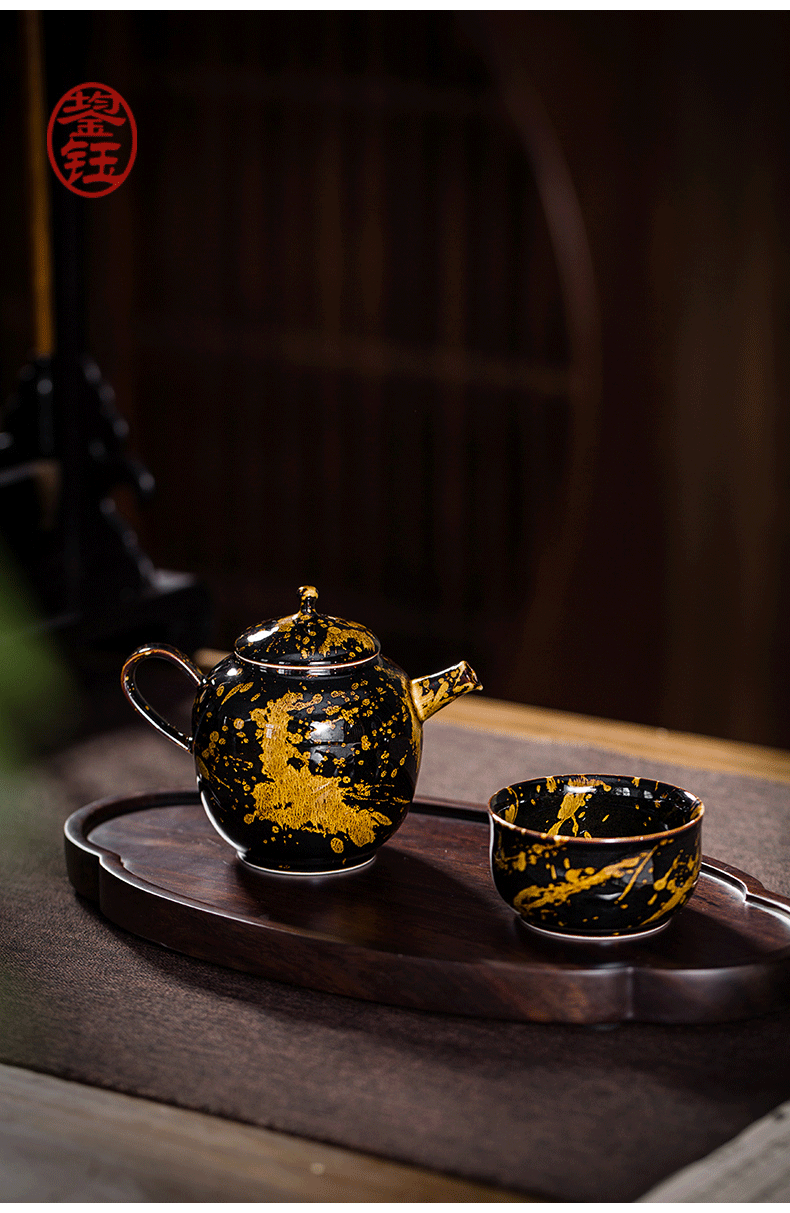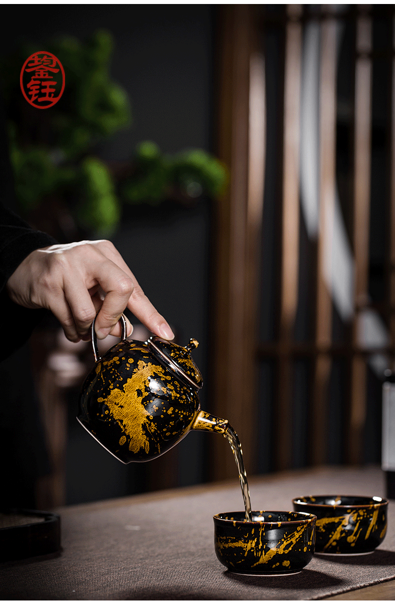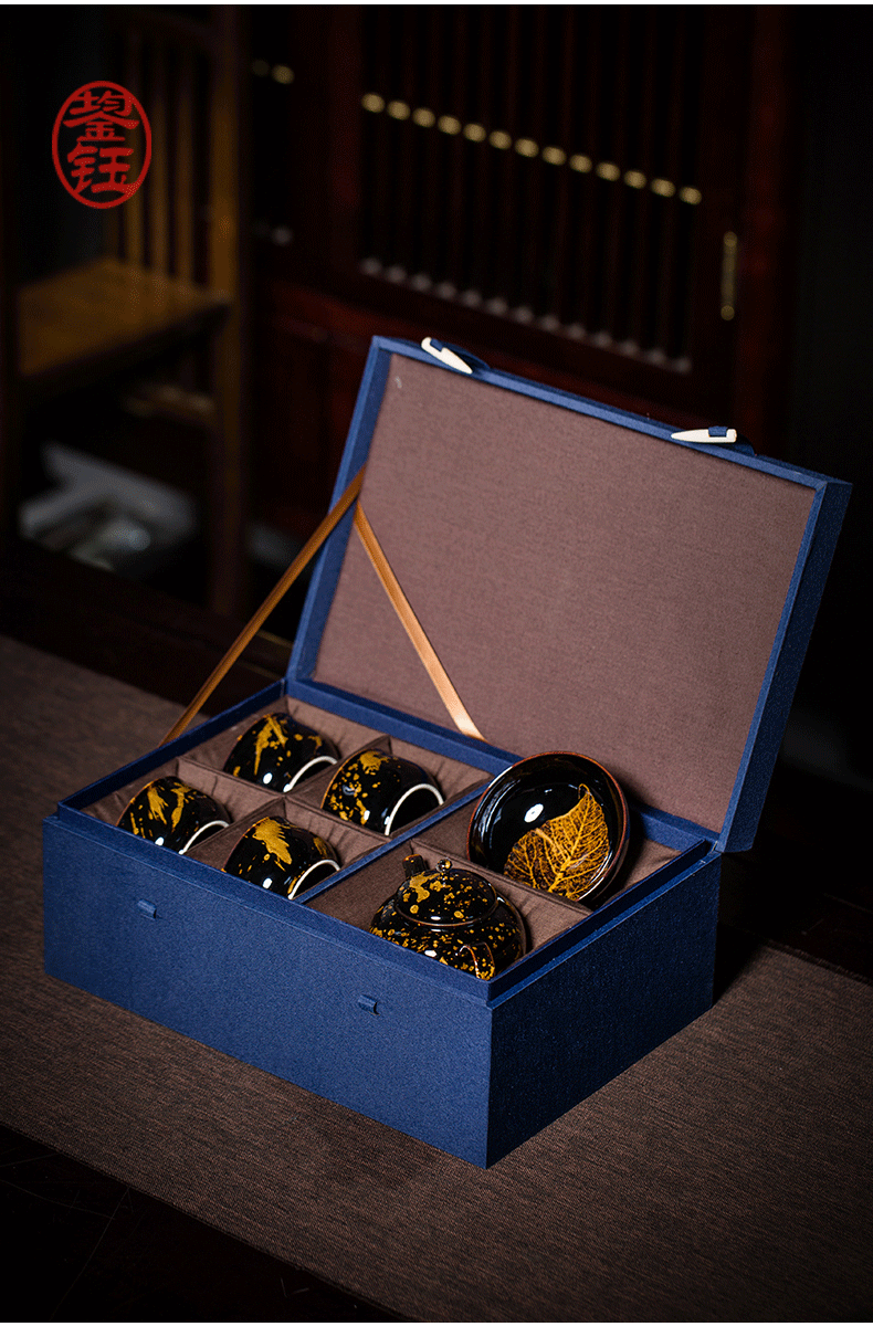 鋆钰 吉州窑功夫茶具套装陶瓷泡茶壶茶杯礼盒装 木叶盏 天目瓷 天目瓷六件套 色釉