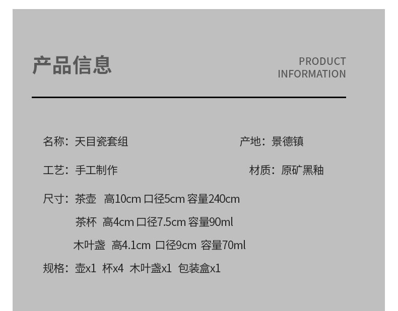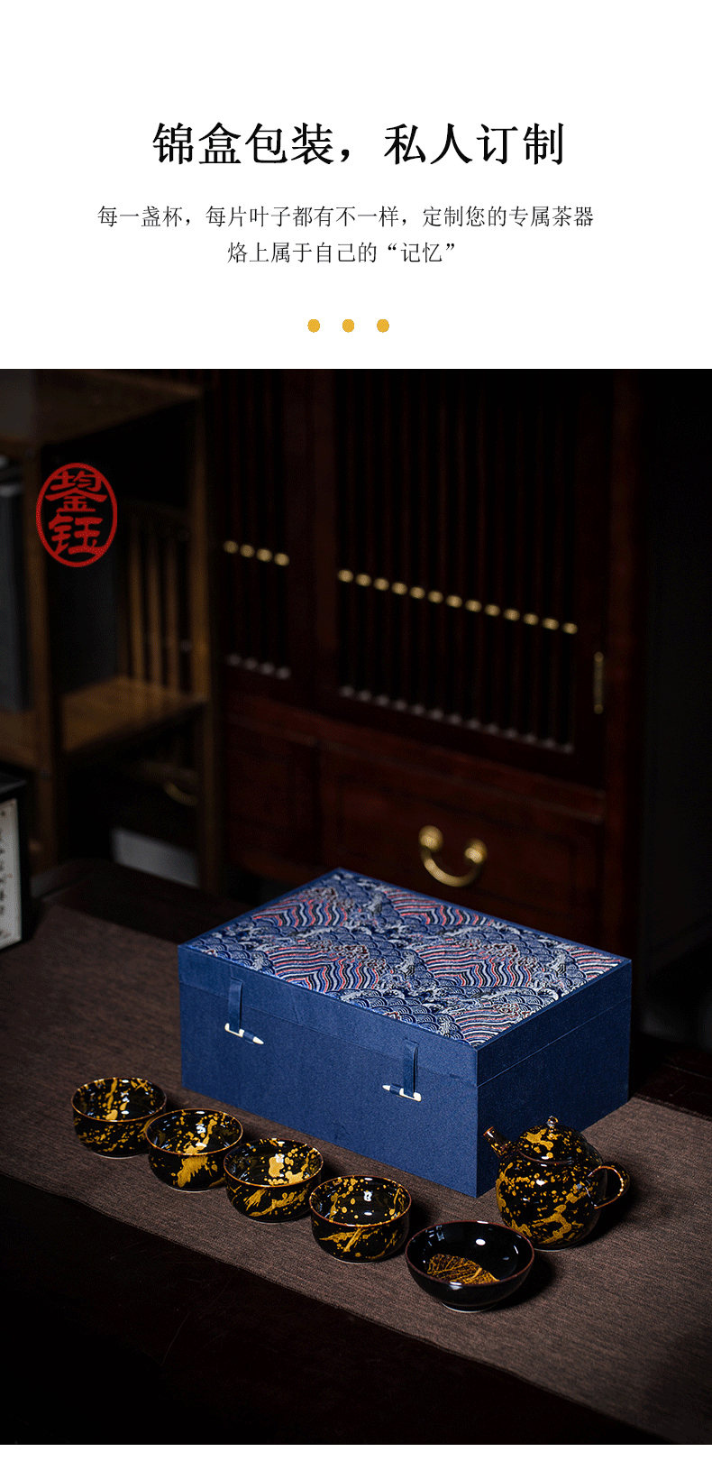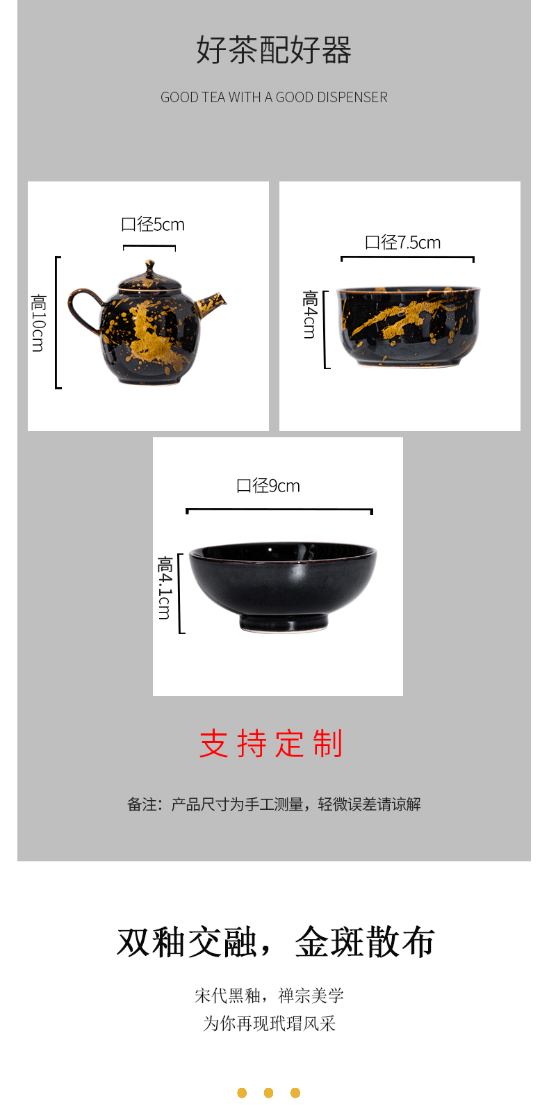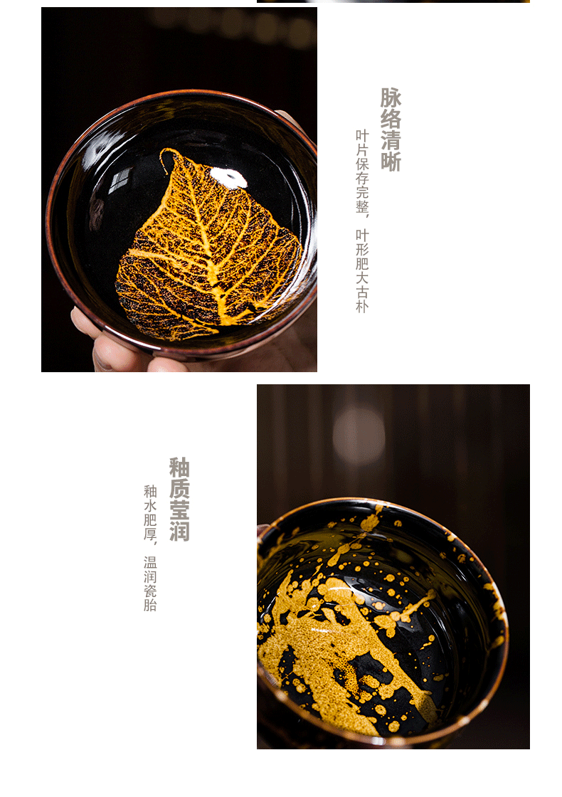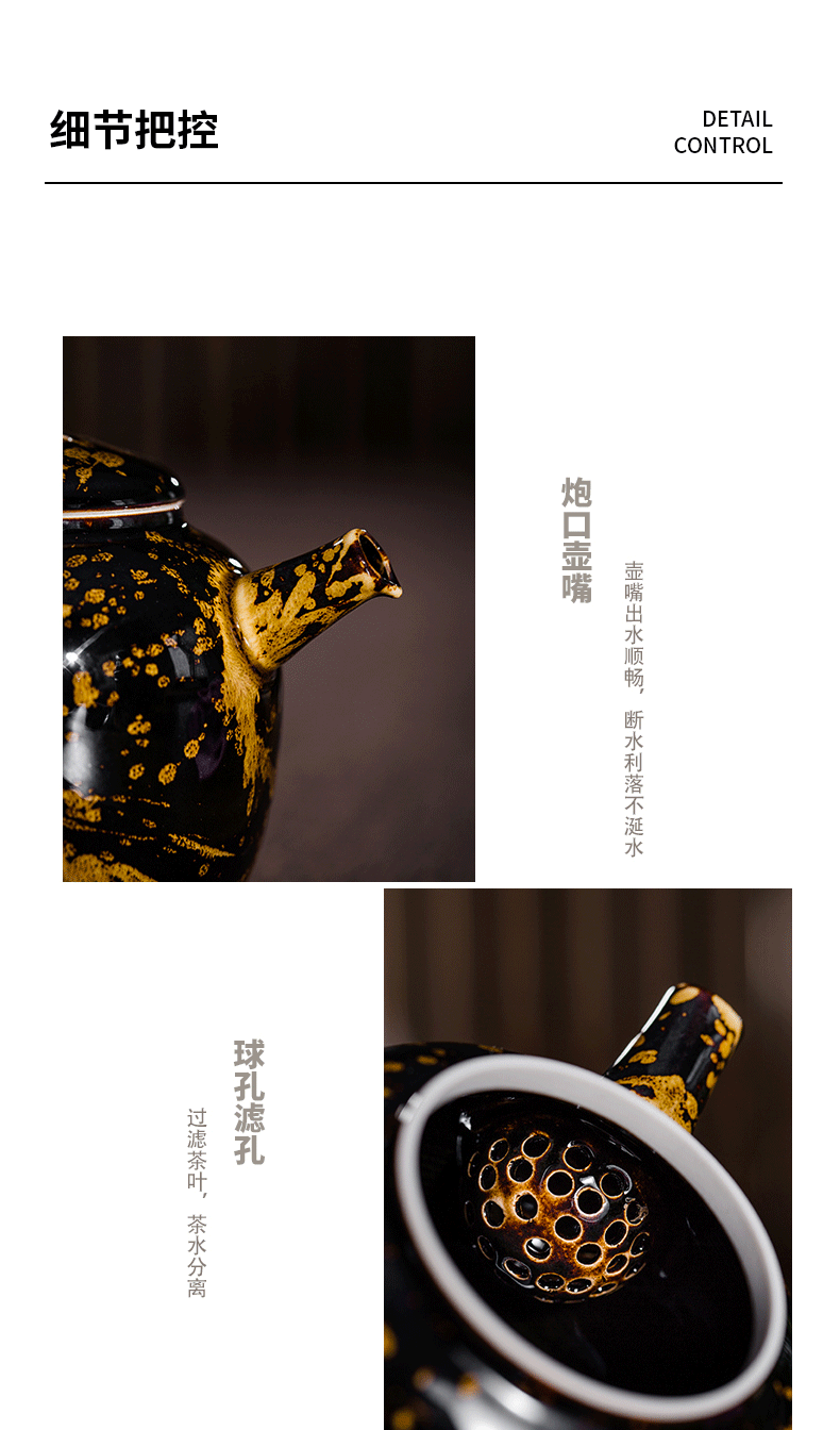 鋆钰 吉州窑功夫茶具套装陶瓷泡茶壶茶杯礼盒装 木叶盏 天目瓷 天目瓷六件套 色釉