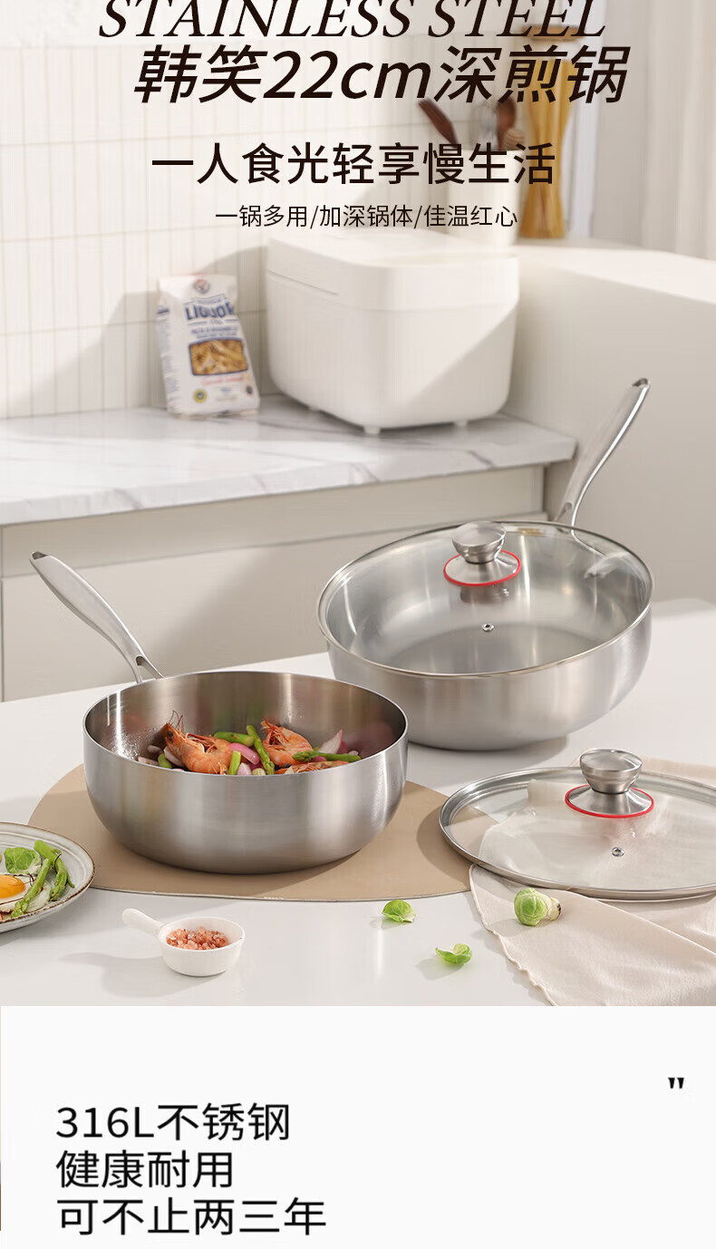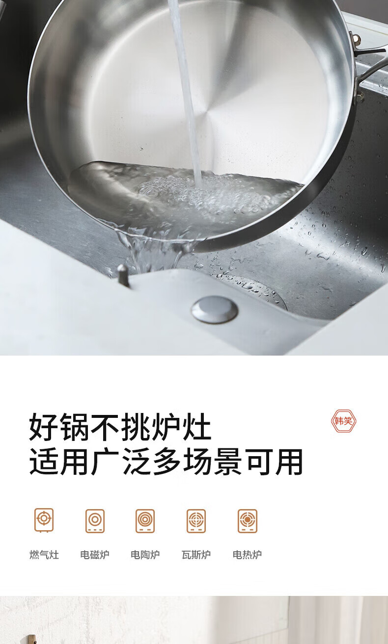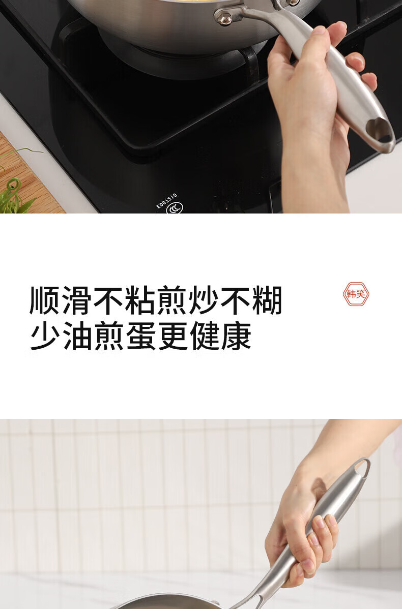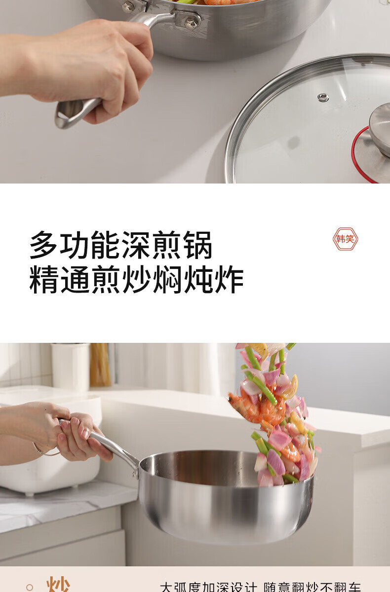 韩笑316不锈钢平底锅无涂层不粘锅炒锅家用电磁炉专用加深煎锅炒菜锅 316加深平底锅【三件套】 28cm