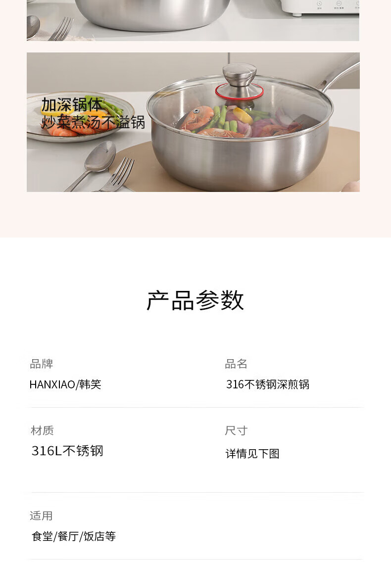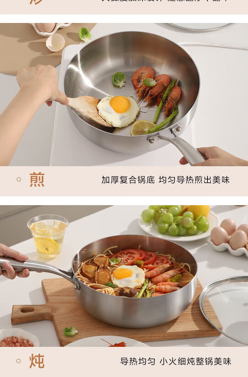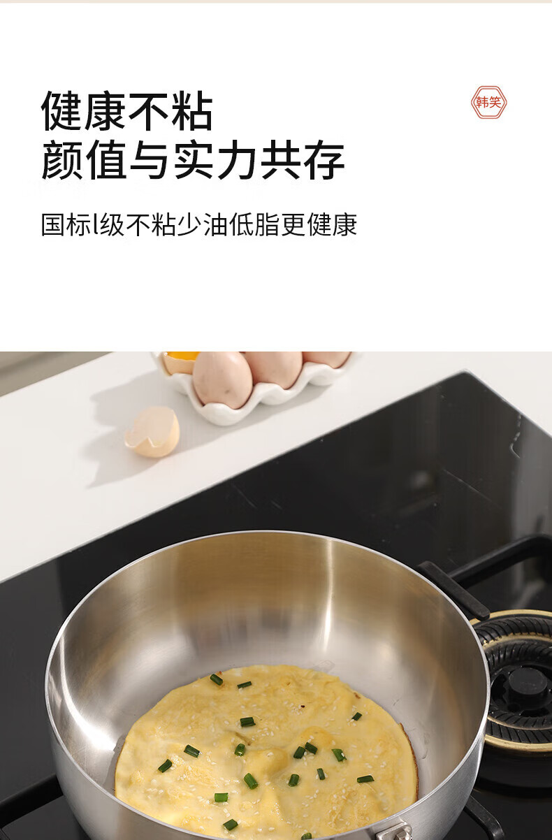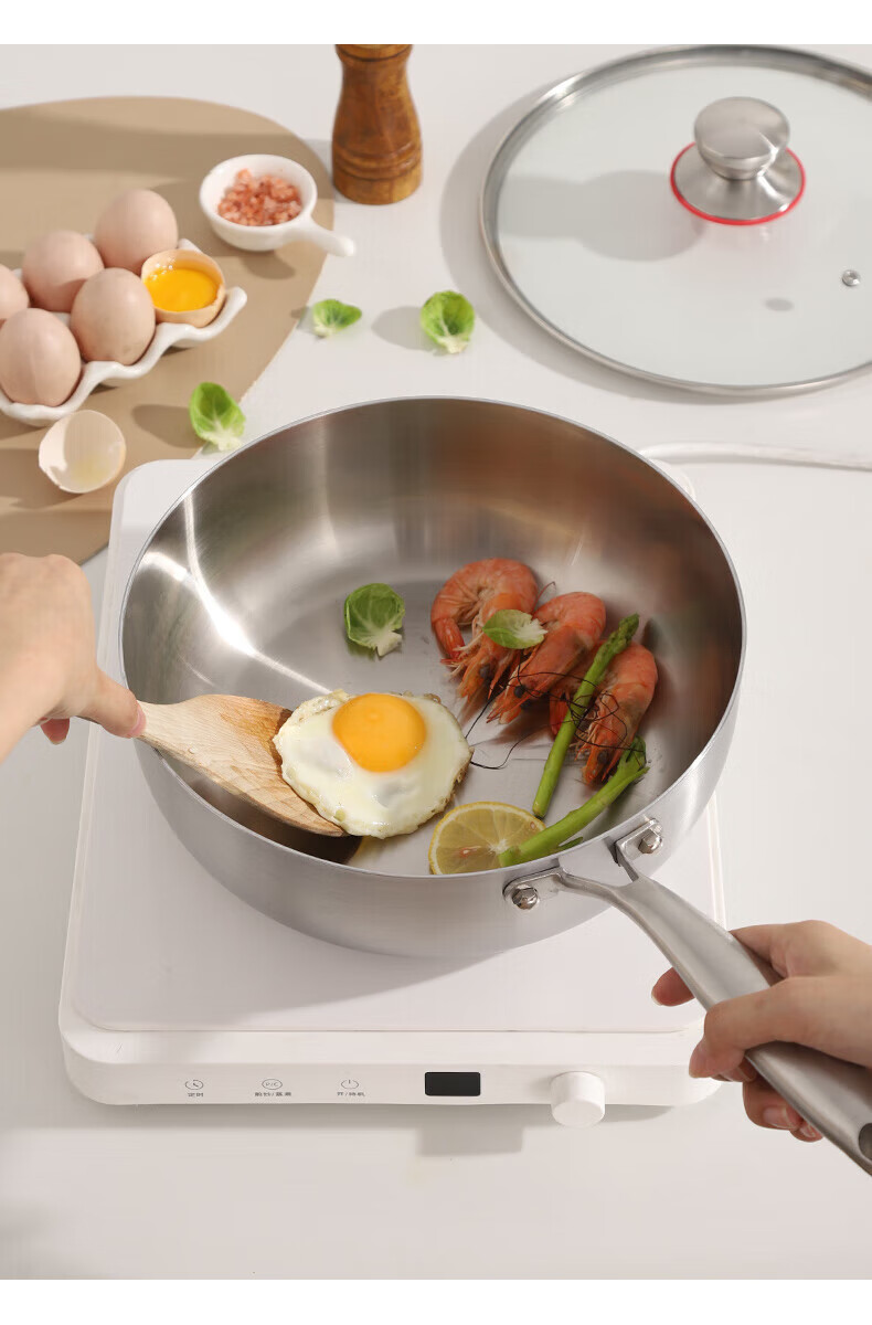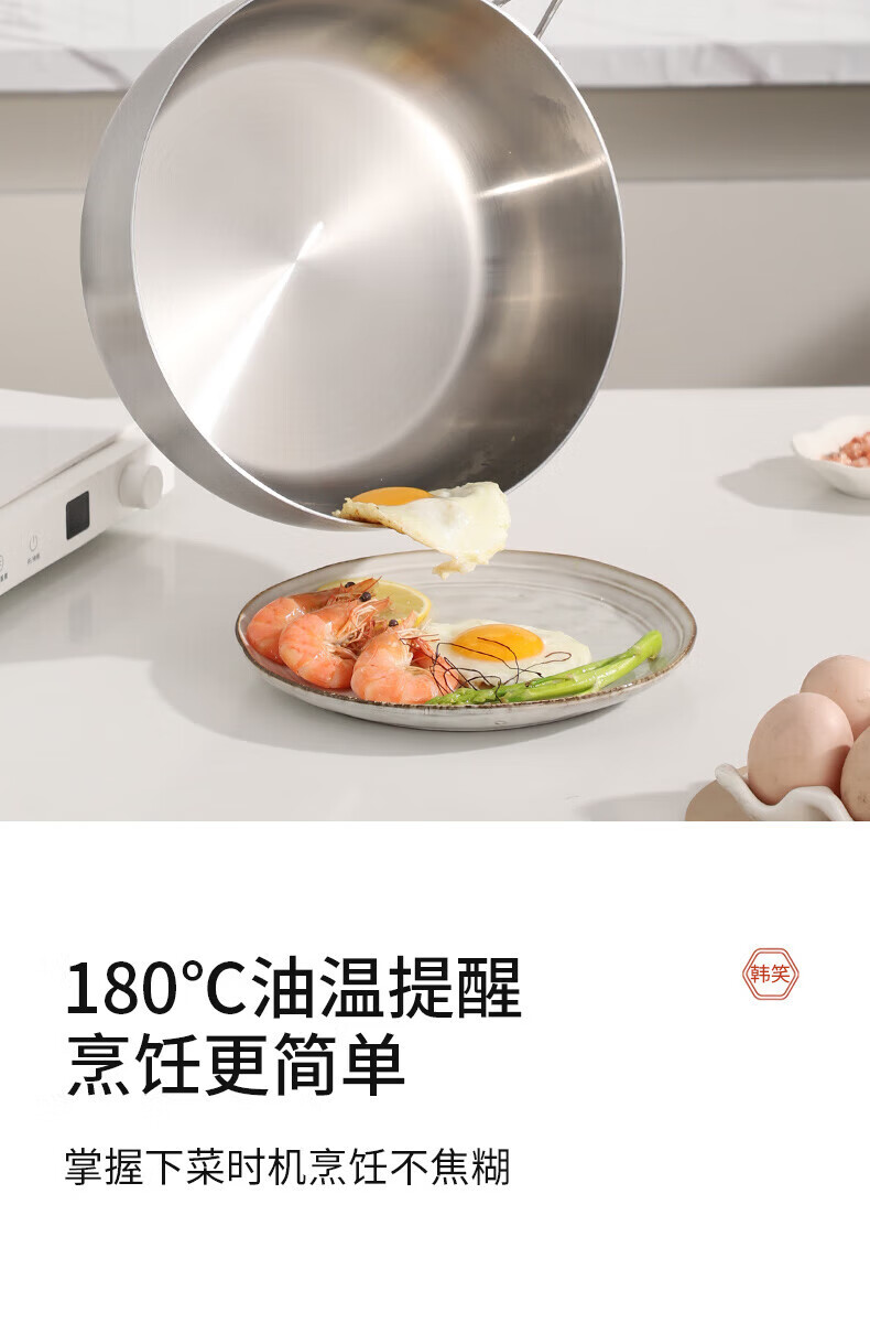 韩笑316不锈钢平底锅无涂层不粘锅炒锅家用电磁炉专用加深煎锅炒菜锅 316加深平底锅【三件套】 28cm