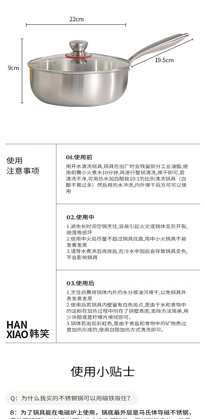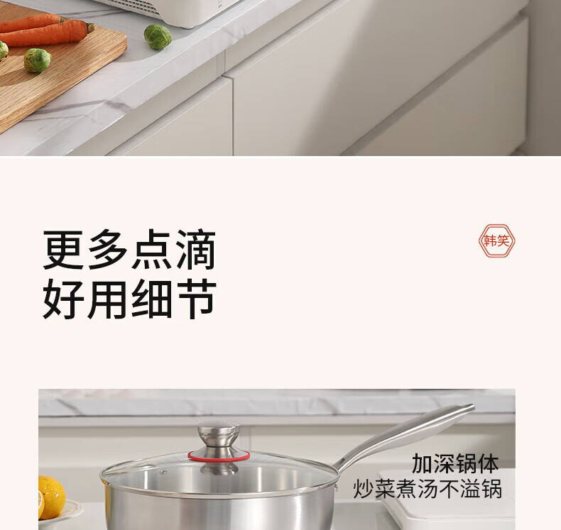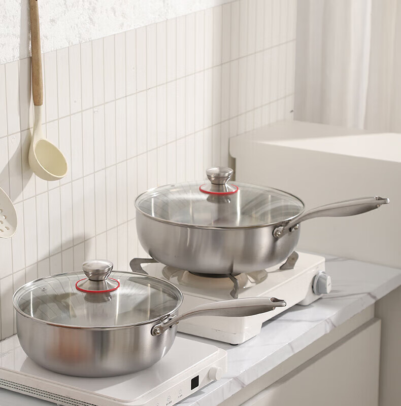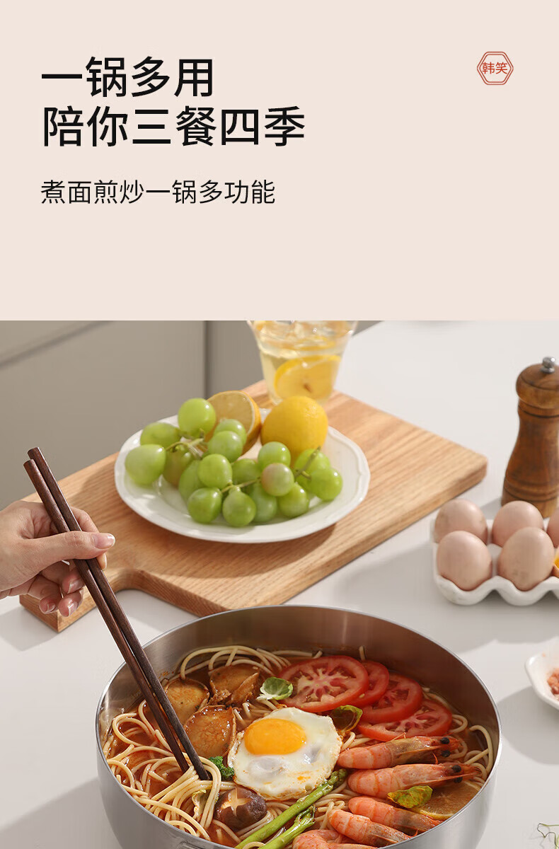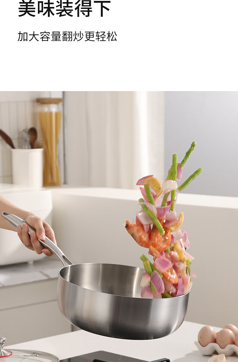 韩笑316不锈钢平底锅无涂层不粘锅炒锅家用电磁炉专用加深煎锅炒菜锅 316加深平底锅【三件套】 28cm