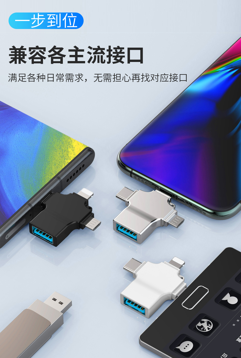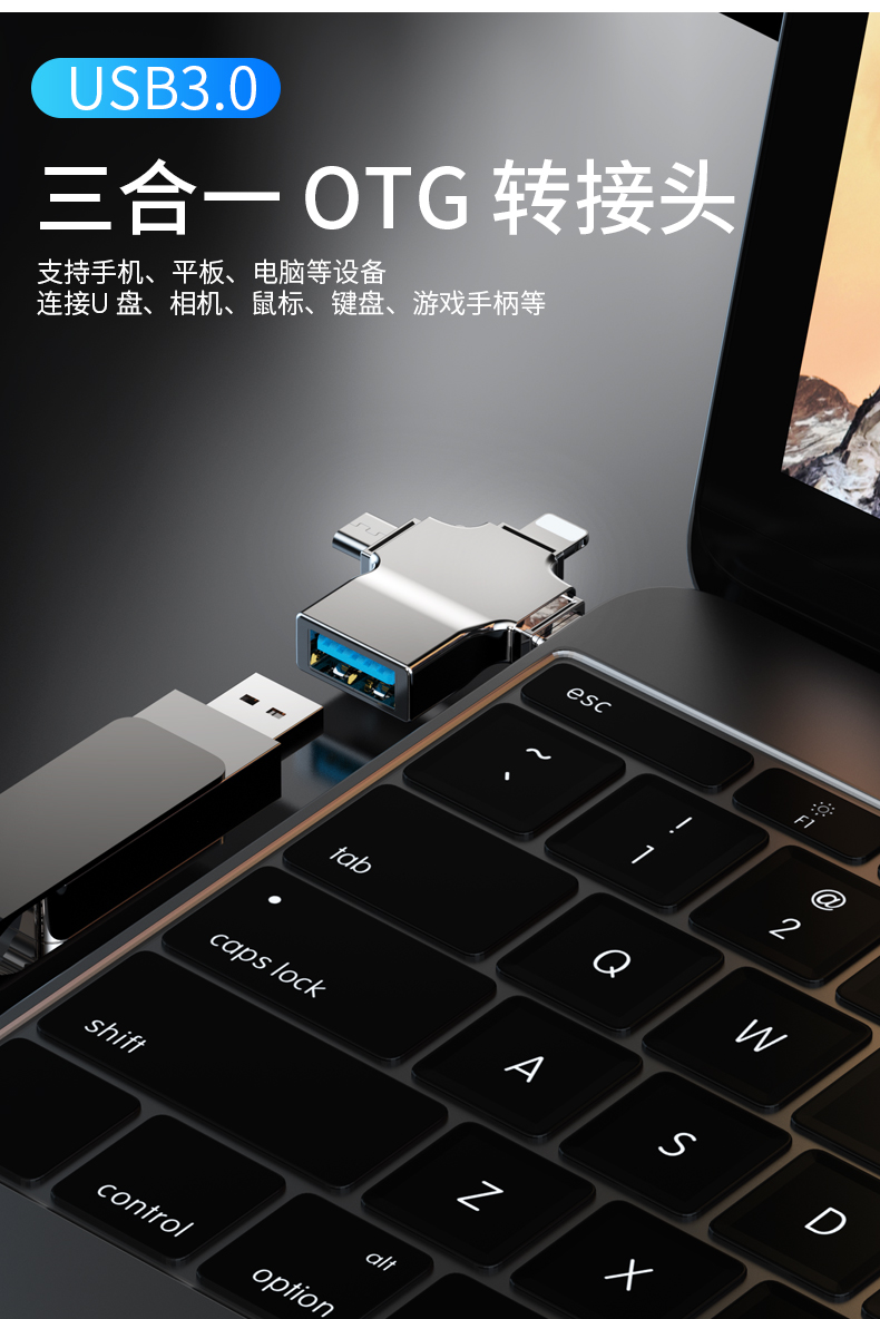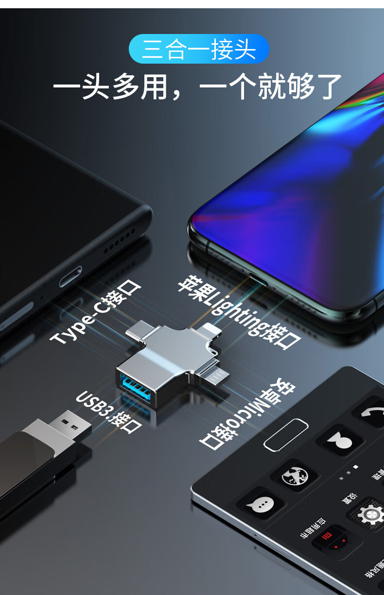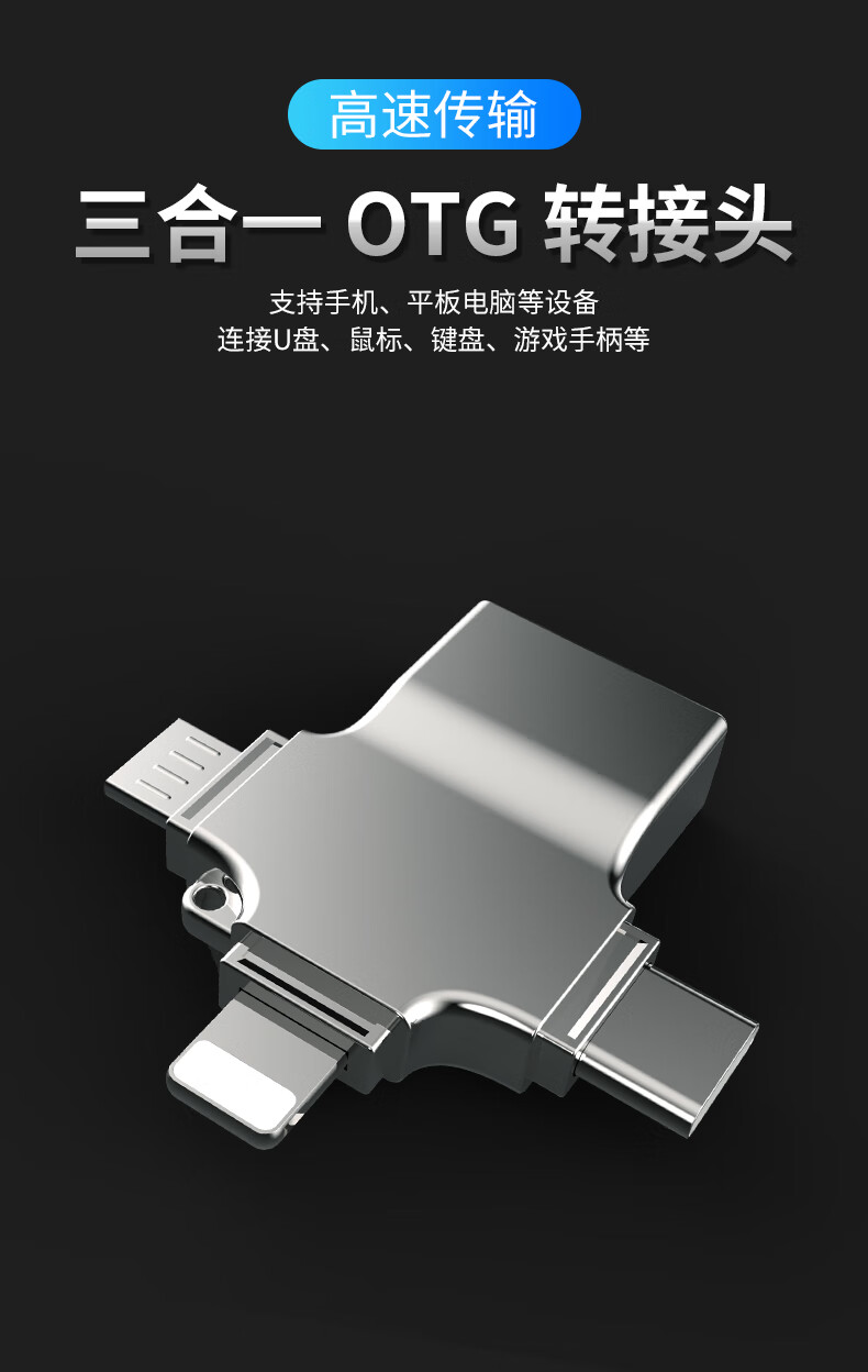 飞特斯顿 otg转接头安卓typeC三合一手机U盘外接转接器数据线多头转换器二合一适用苹果华为荣耀 太空银【外接U盘/鼠标/键盘/相机/读卡器】OTG