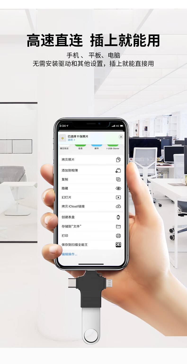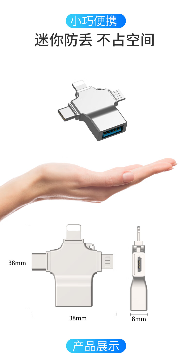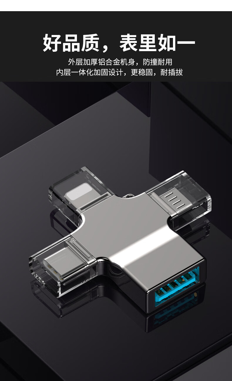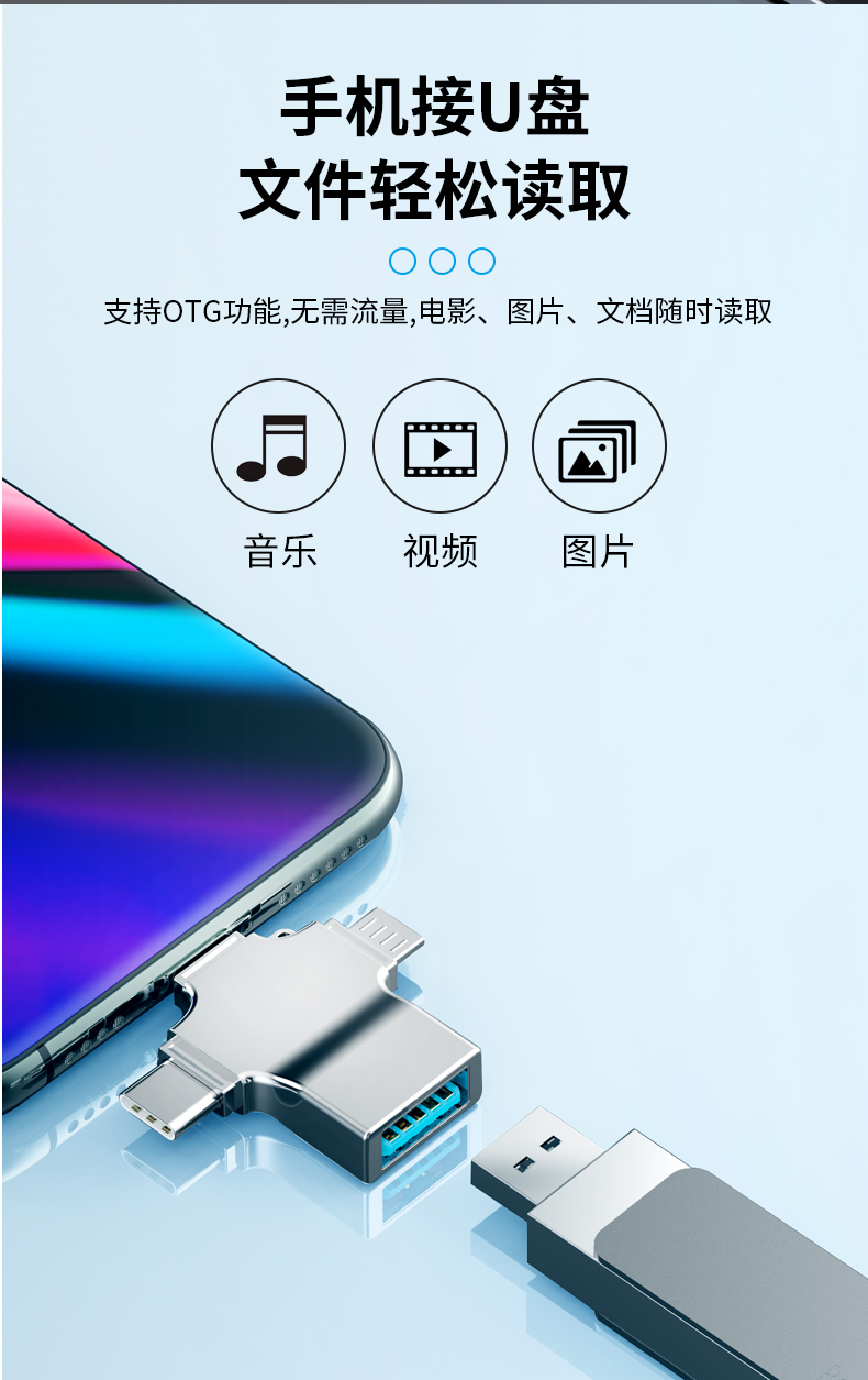飞特斯顿 otg转接头安卓typeC三合一手机U盘外接转接器数据线多头转换器二合一适用苹果华为荣耀 太空银【外接U盘/鼠标/键盘/相机/读卡器】OTG