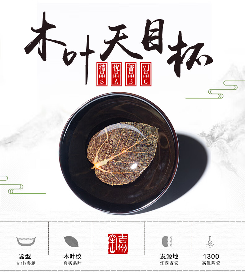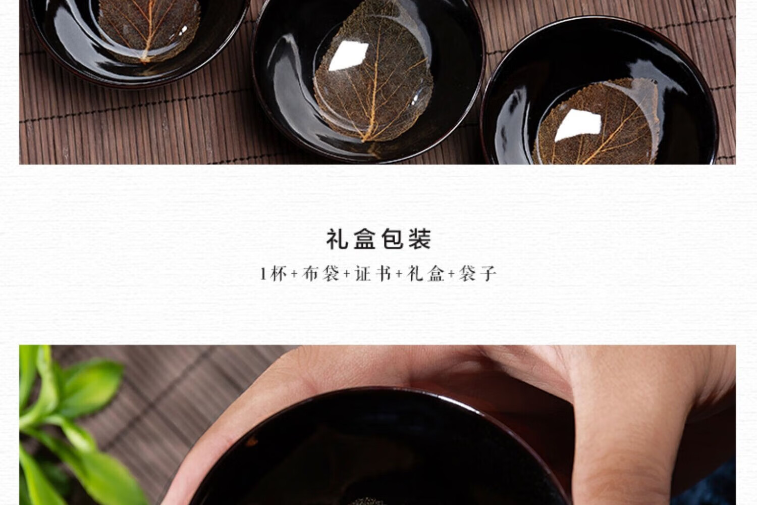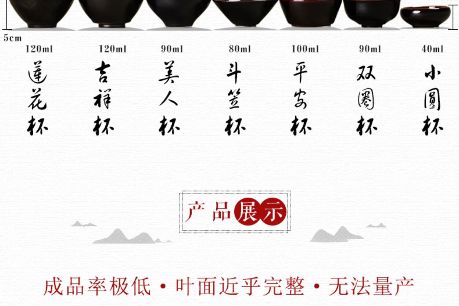 吉州窑木叶盏茶杯主人杯单杯木叶天目盏建盏高档宋代点茶礼盒陶瓷 木叶天目盏-小圆杯
