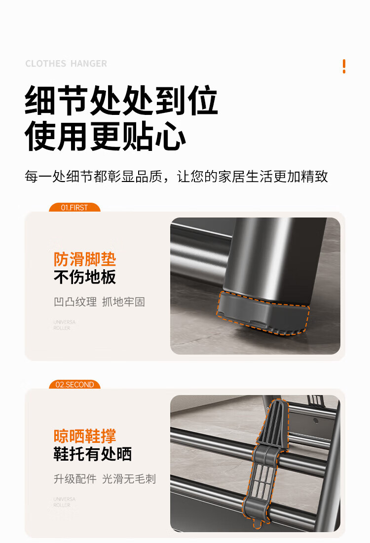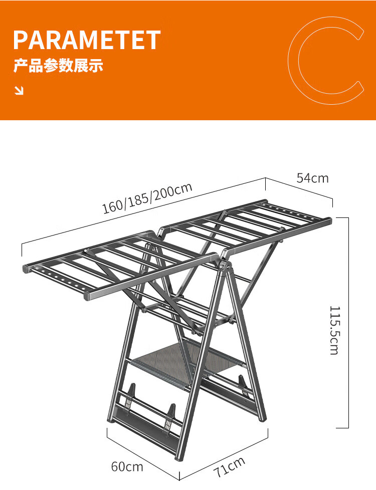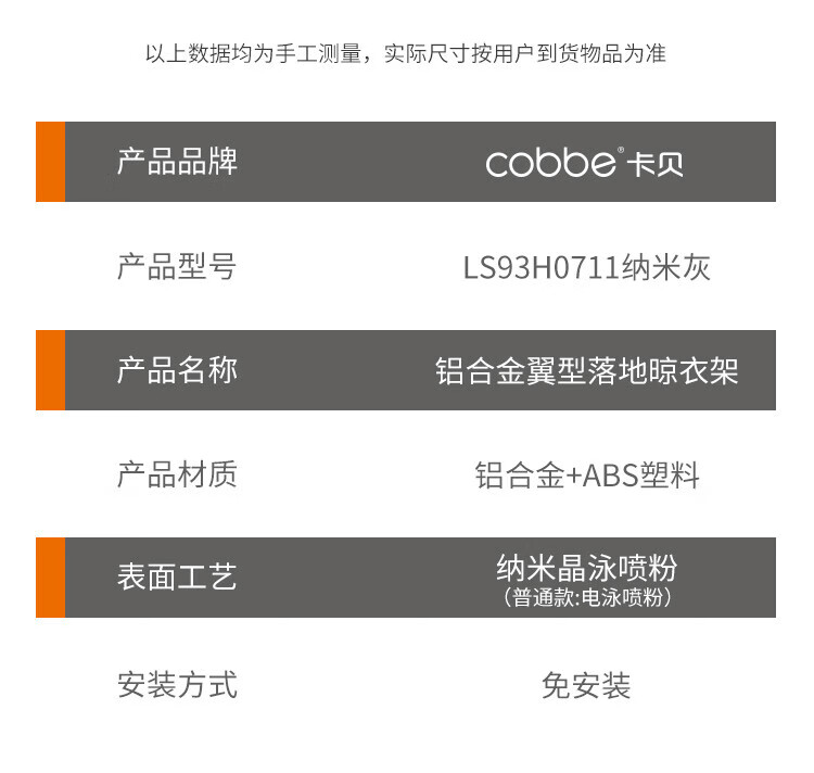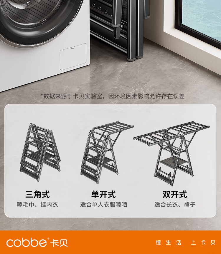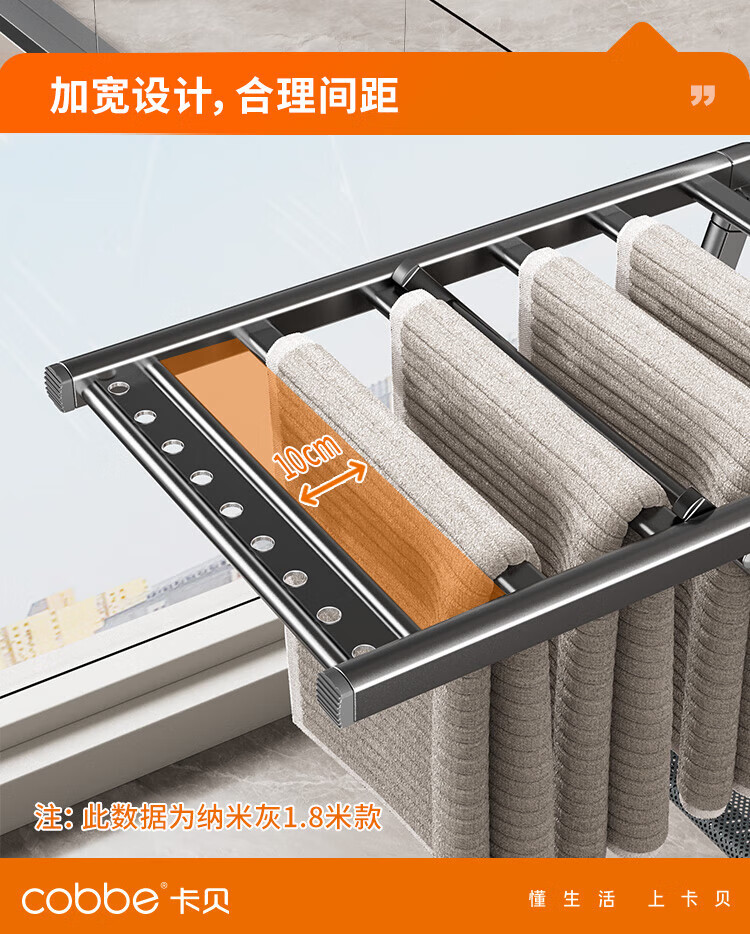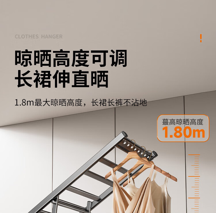 卡贝(cobbe)落地晾衣架折叠凉晒衣架挂衣服家用室内宿舍阳台晒被子铝合金衣杆 纳米灰【2.0M加粗加厚】