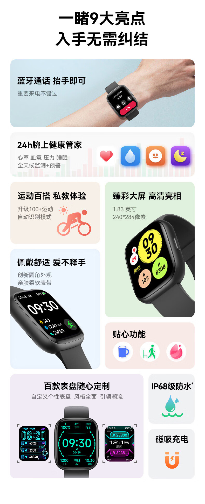 lifesense运动智能手环9测心率血氧睡眠监测智能穿戴手表防水游泳健身跑步长续航运动手环送礼男友女友 【旗舰款】WATCH3黑色-升级大屏长续航蓝牙通话