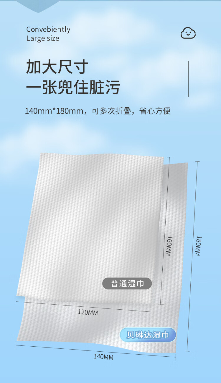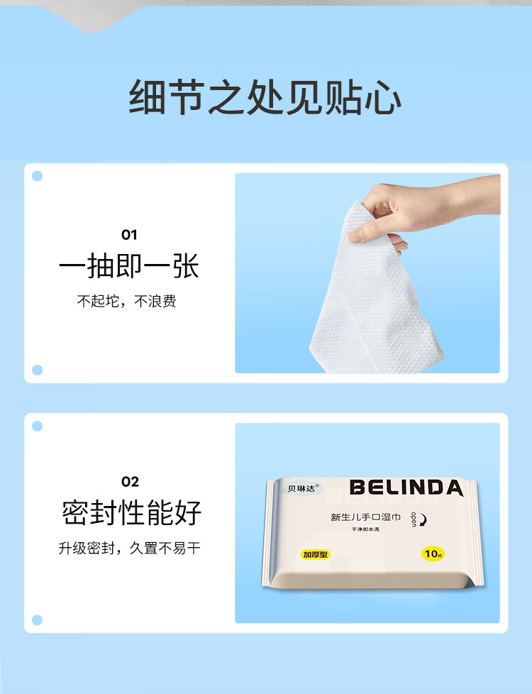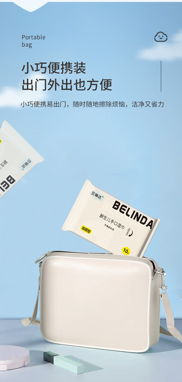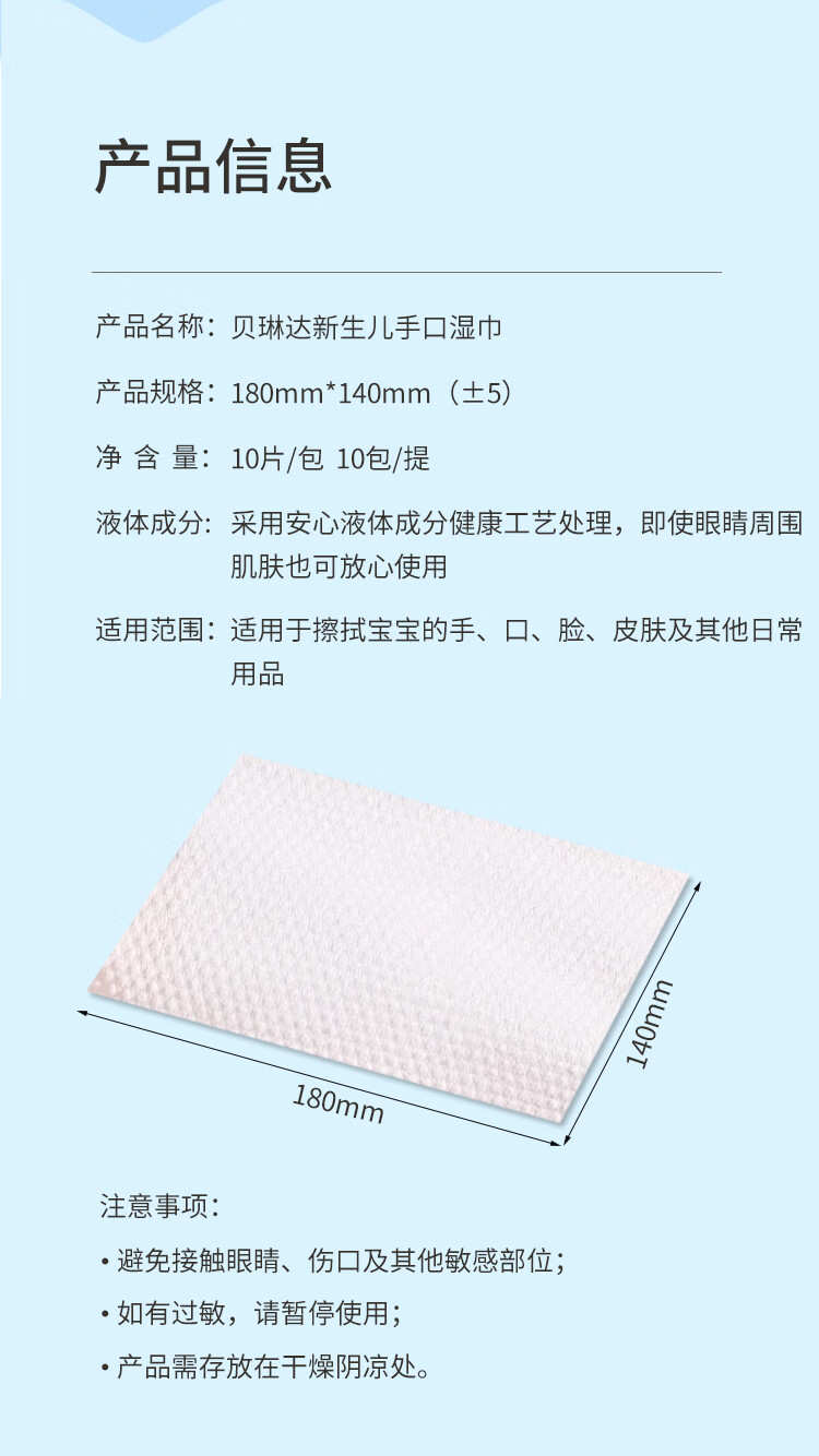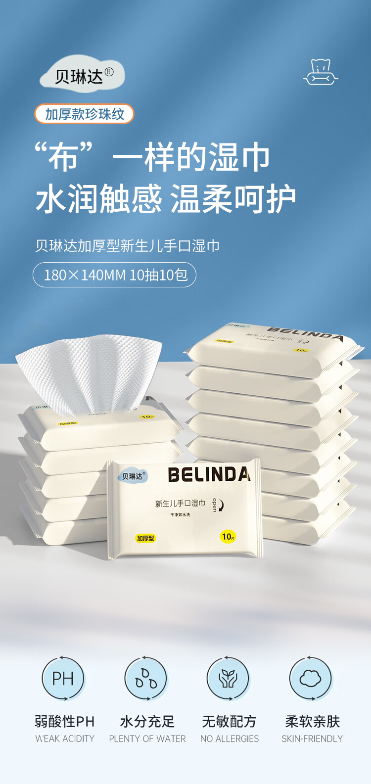 贝琳达湿巾婴儿湿巾便携小包手口湿纸巾宝宝手口屁屁专用儿童湿巾 10抽 20包 纯水湿巾【便携装】