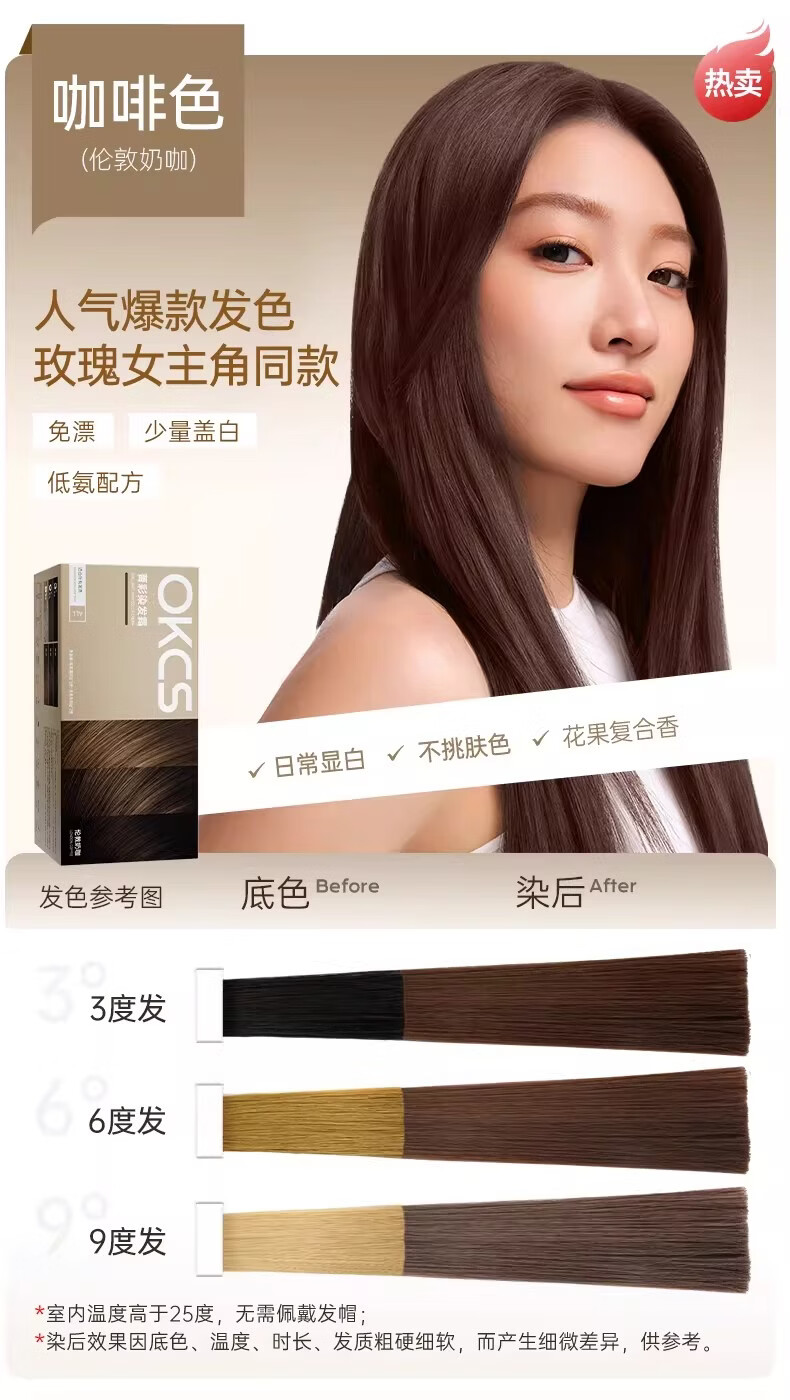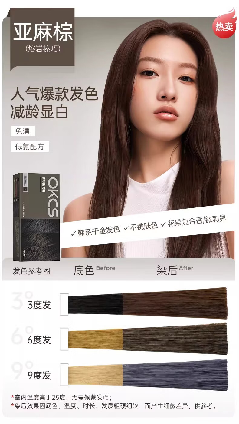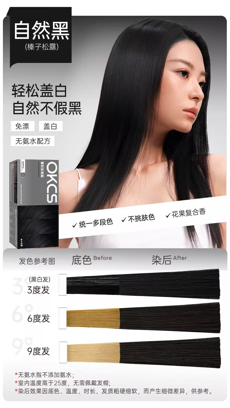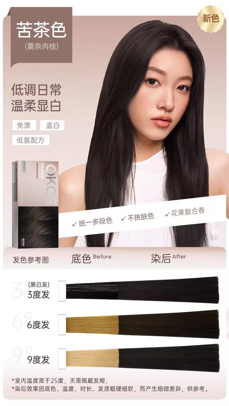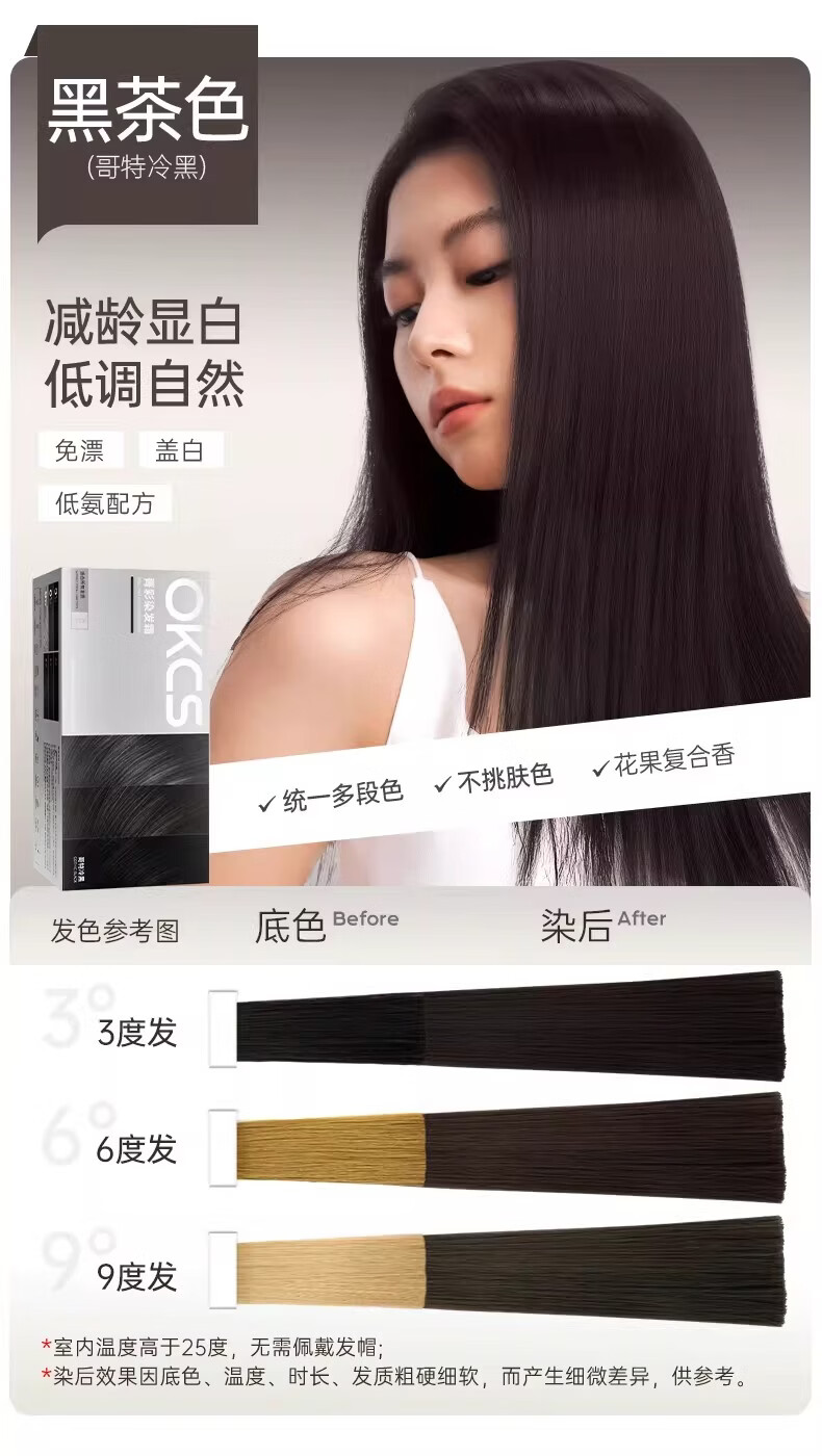 OKCS染发膏植物纯染发剂自己染自然黑盖白发染头膏不沾男女士专用 褐棕色【乌木褐棕】 1盒装-长发要拍多盒-配洗护小样