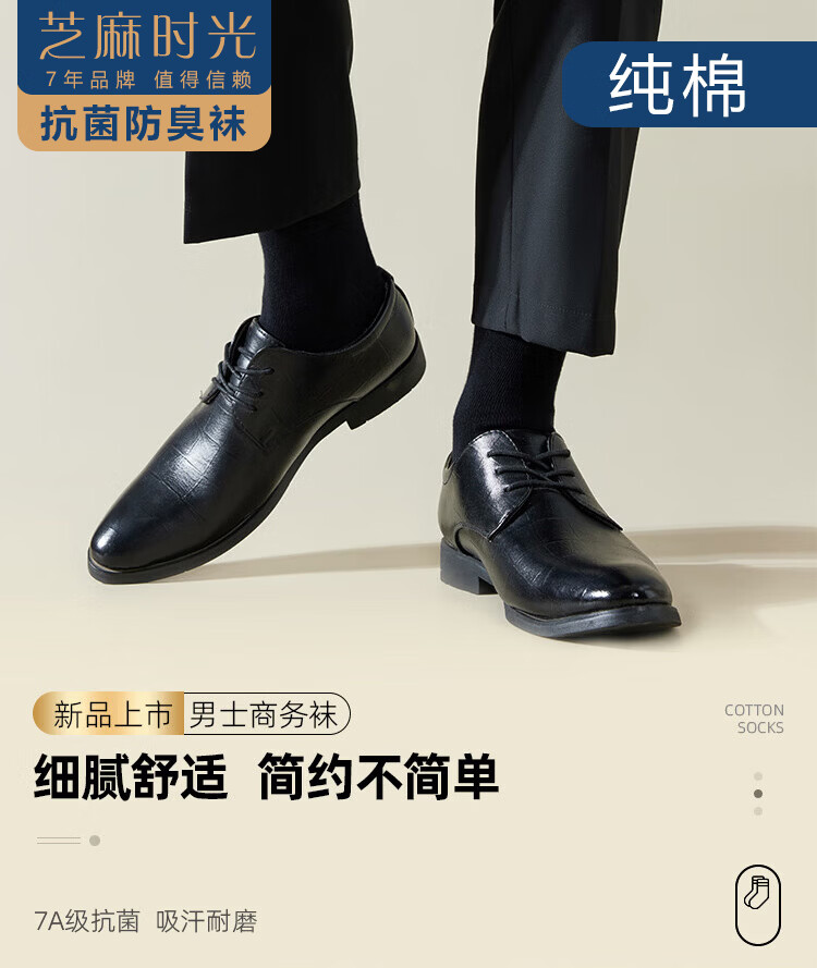 芝麻时光男袜子纯棉10a级抗菌袜子 男士 中筒纯棉防臭袜四季款均码38-43码 拍1发6【3黑3白包含赠送共发6双