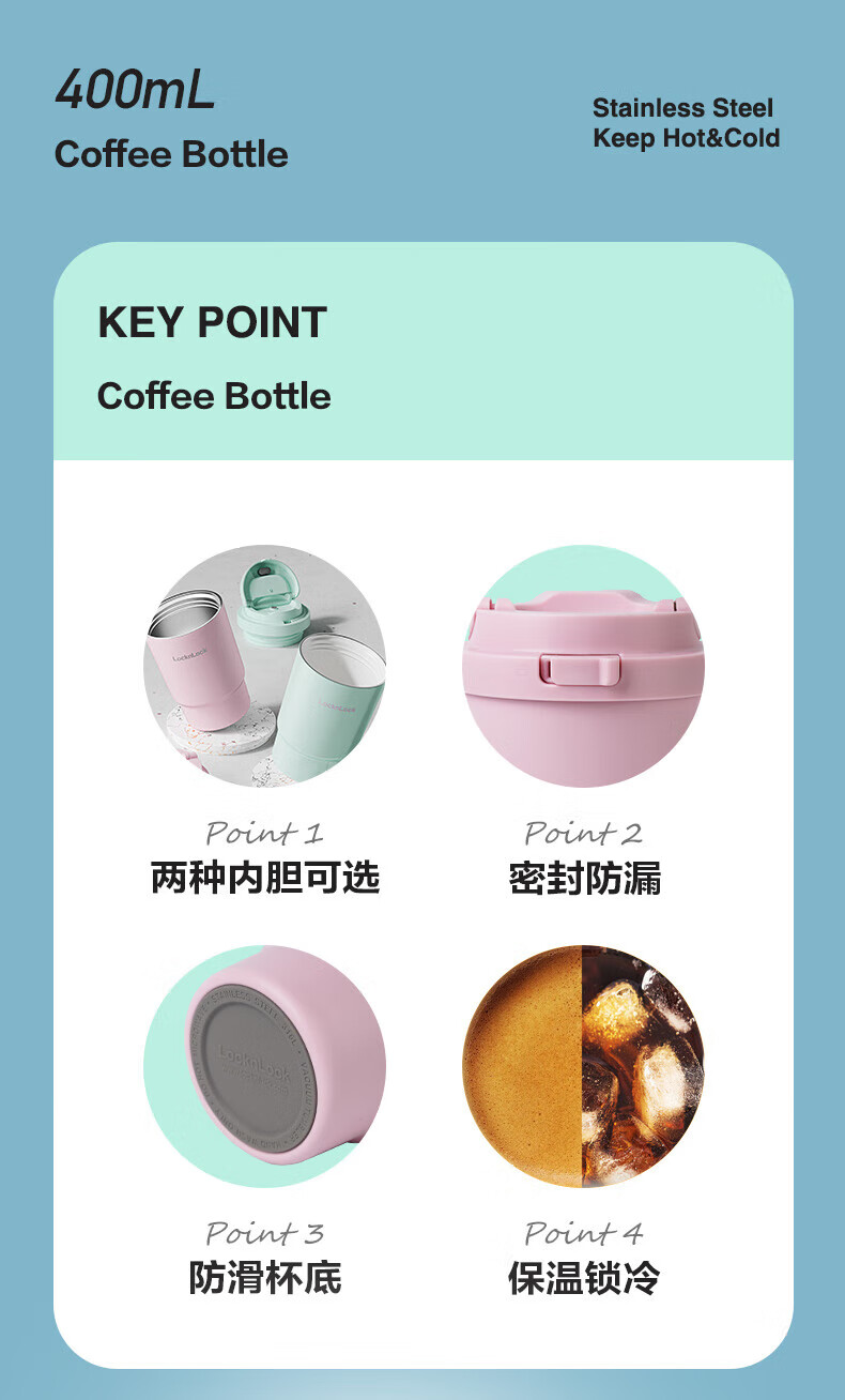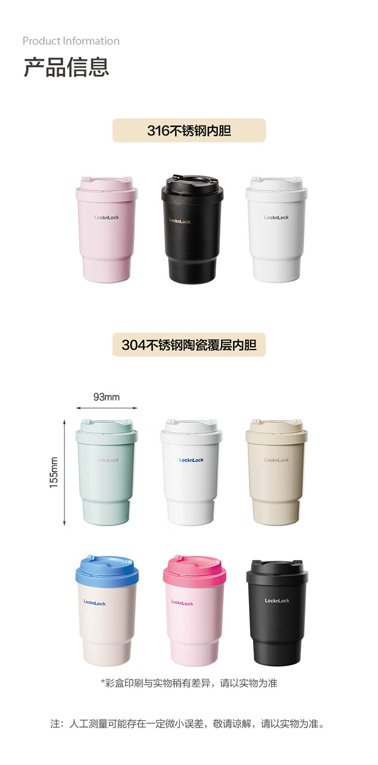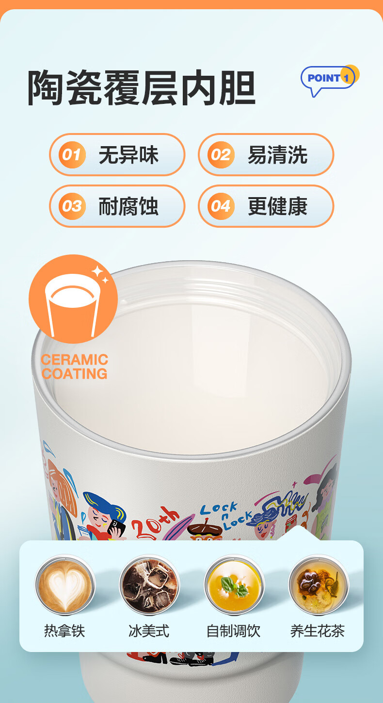 乐扣乐扣(LOCK&LOCK)304不锈钢陶瓷覆层内胆保温杯咖啡杯男女学生水杯【年会福利】 米咖色【陶瓷覆层内胆】 400ml