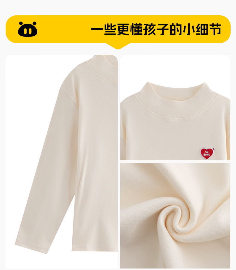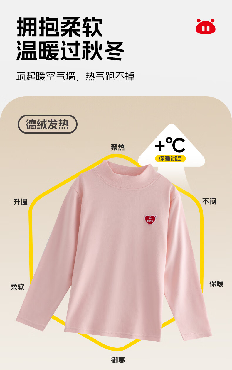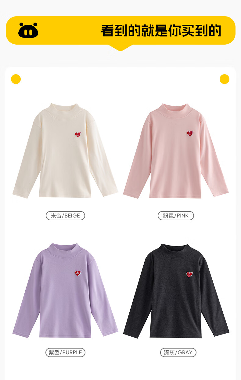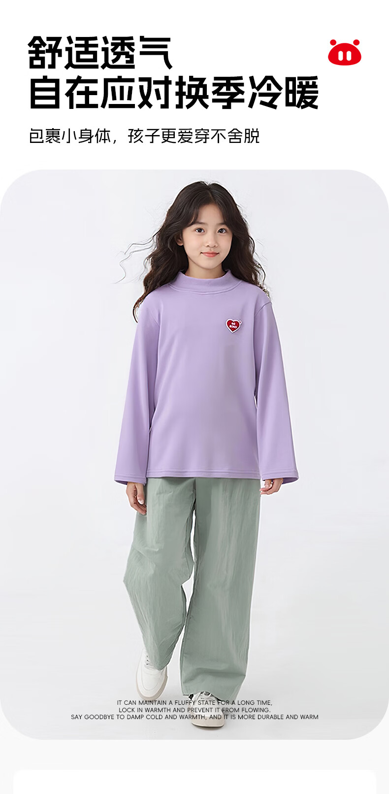猪猪侠(GG·BOND)儿童T恤26新款德绒打底衫半高领百搭男童内搭女童春秋保暖上衣 紫色 160