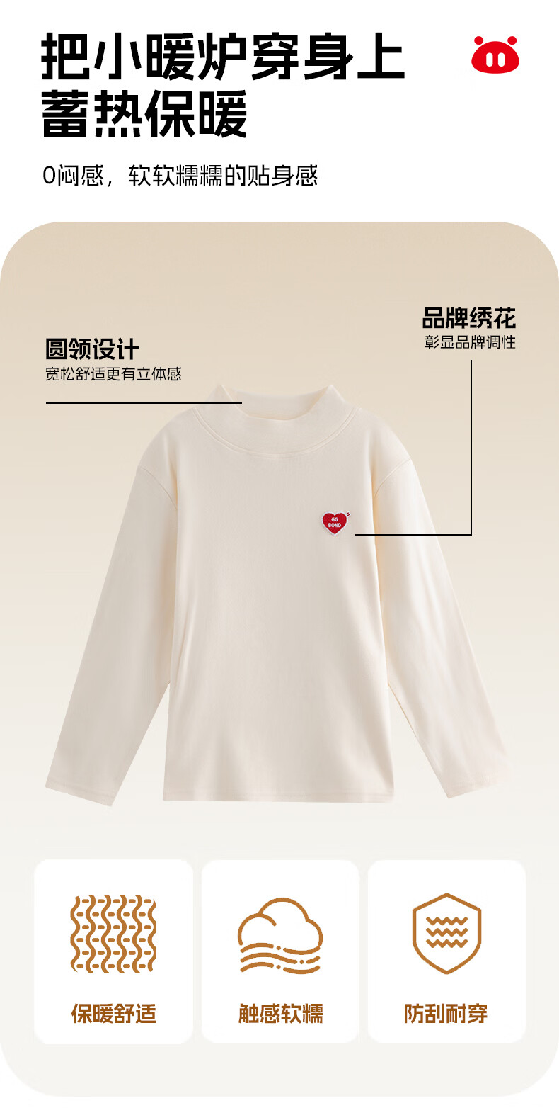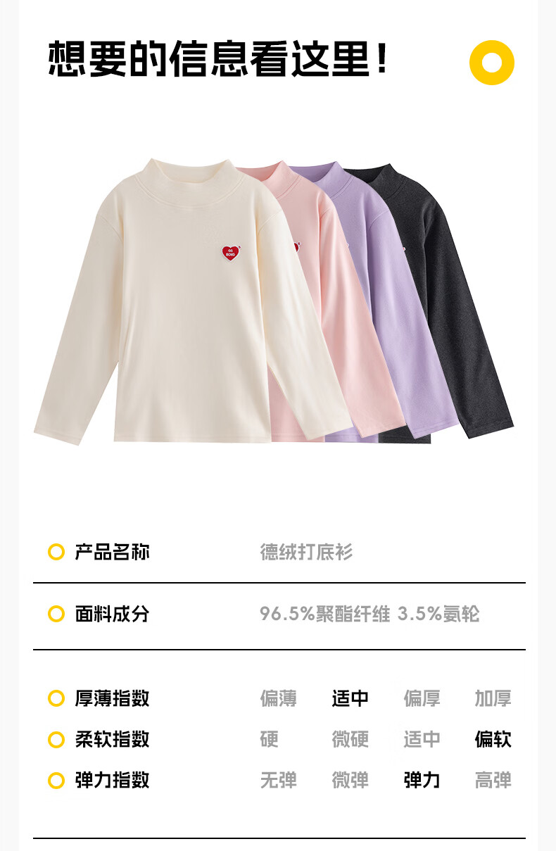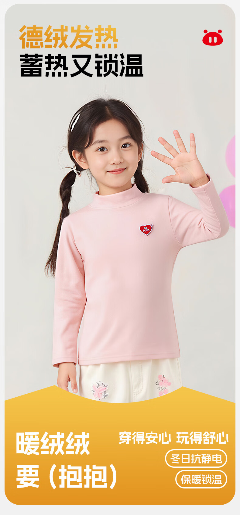 猪猪侠(GG·BOND)儿童T恤26新款德绒打底衫半高领百搭男童内搭女童春秋保暖上衣 紫色 160