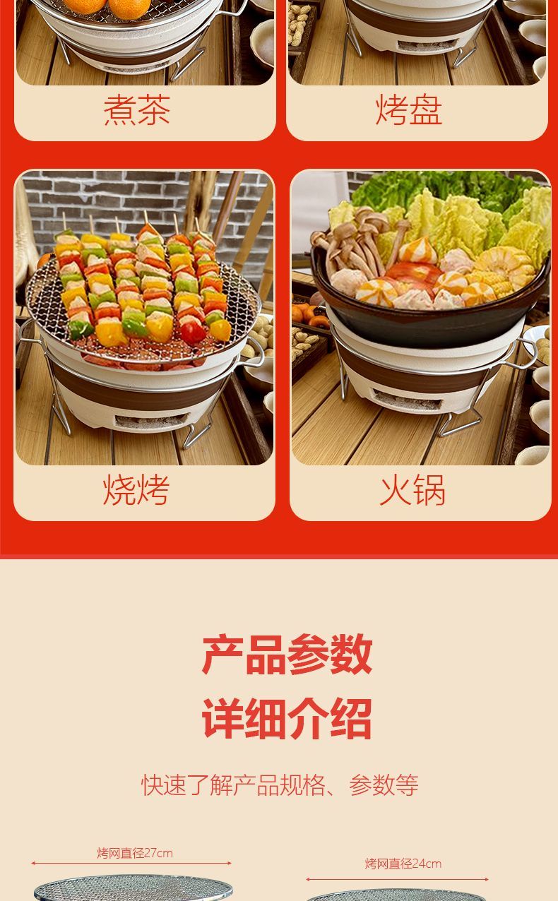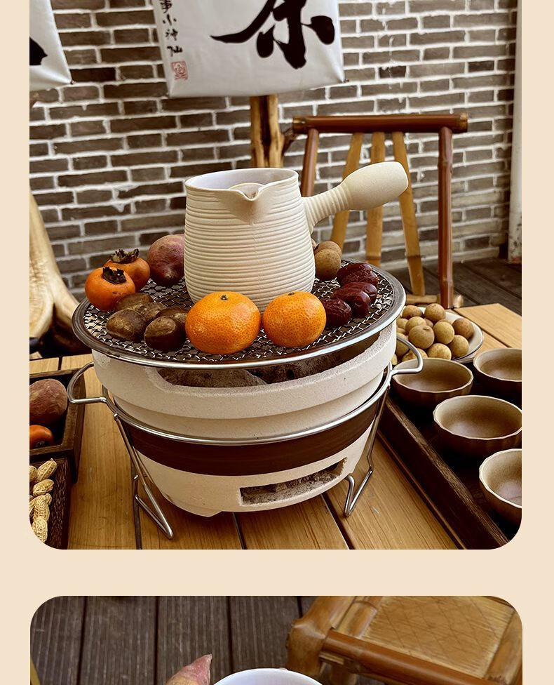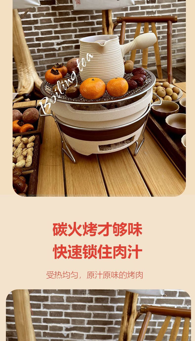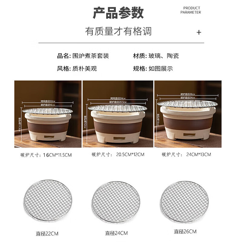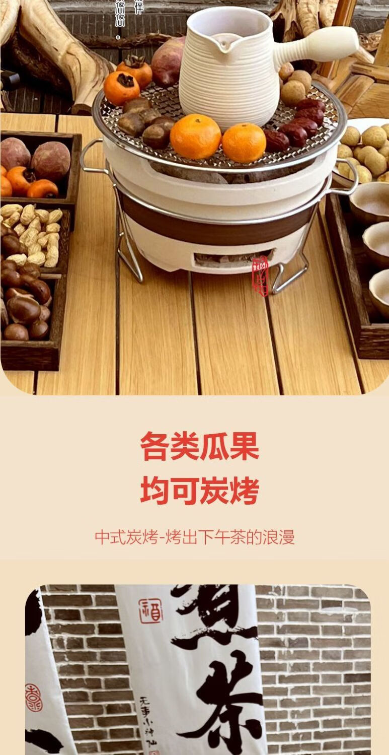 格术围炉煮茶器套装器具烧烤炉家用烤火炉烧烤木炭炉子取暖器户外碳炉 大号速燃碳全套-茶壶+茶杯6个