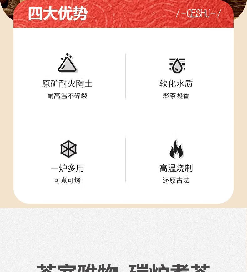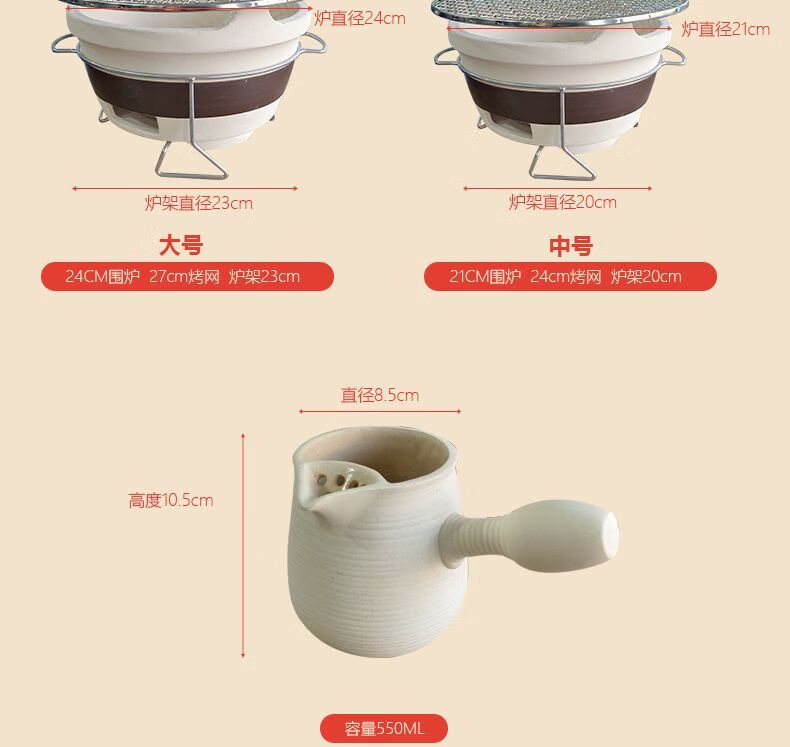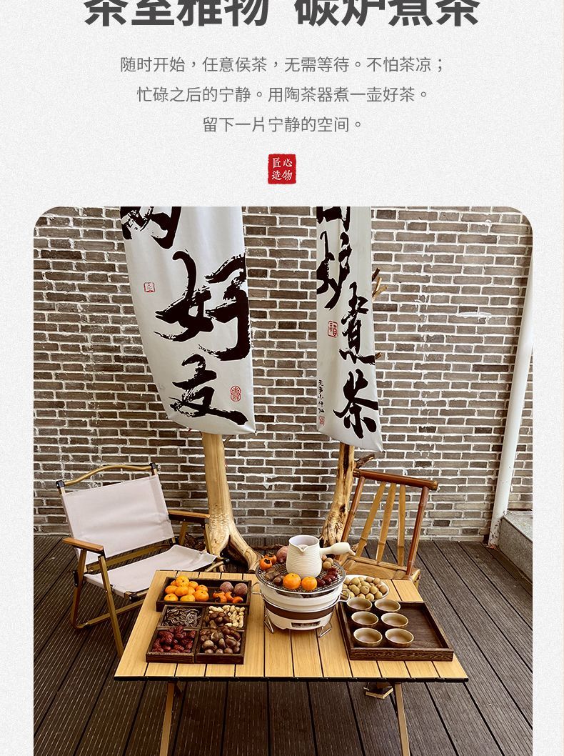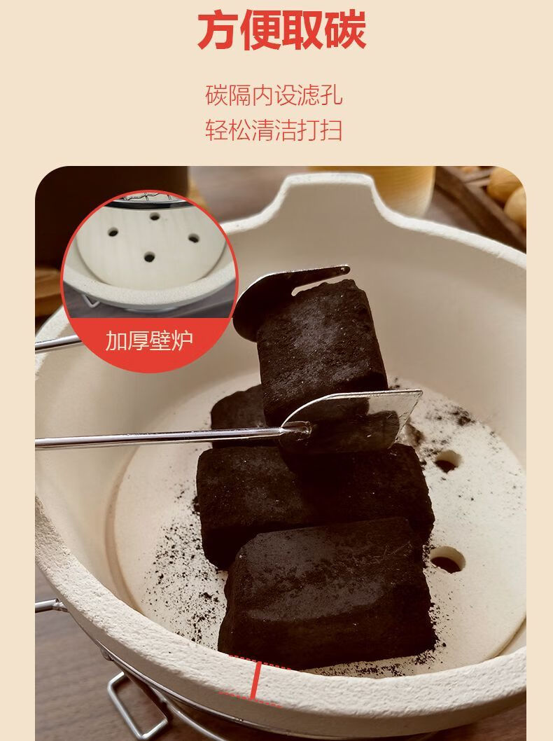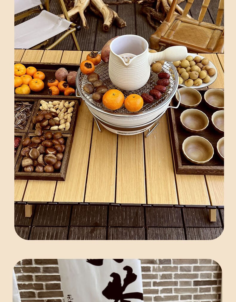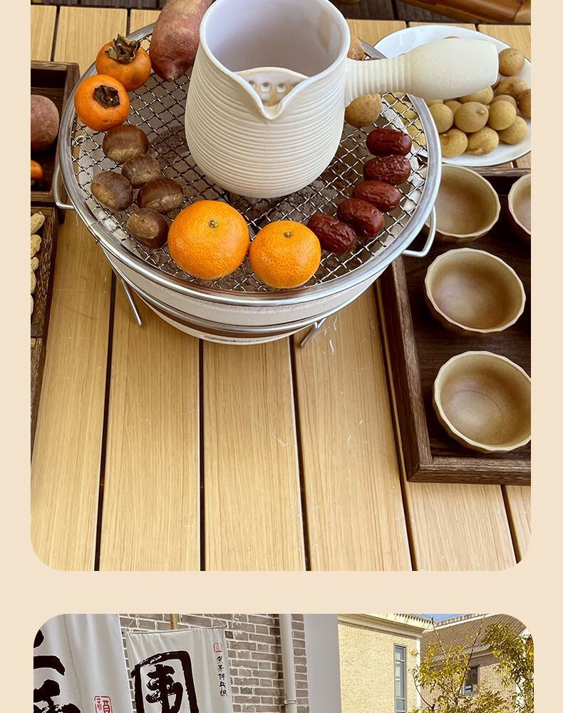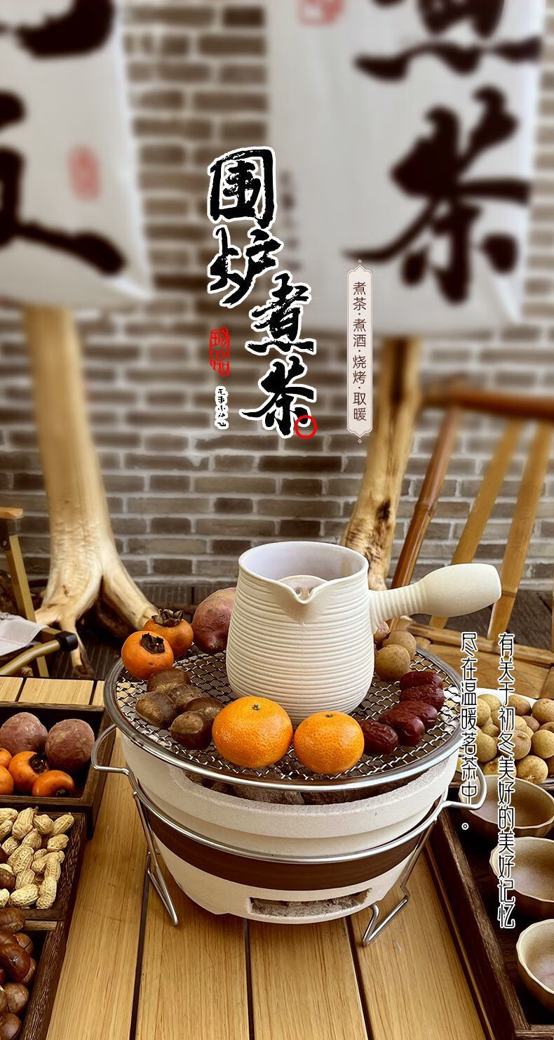 格术围炉煮茶器套装器具烧烤炉家用烤火炉烧烤木炭炉子取暖器户外碳炉 大号速燃碳全套-茶壶+茶杯6个