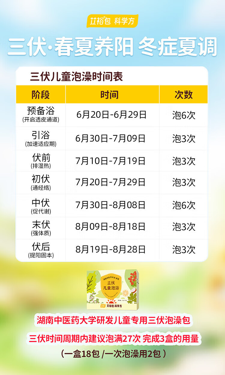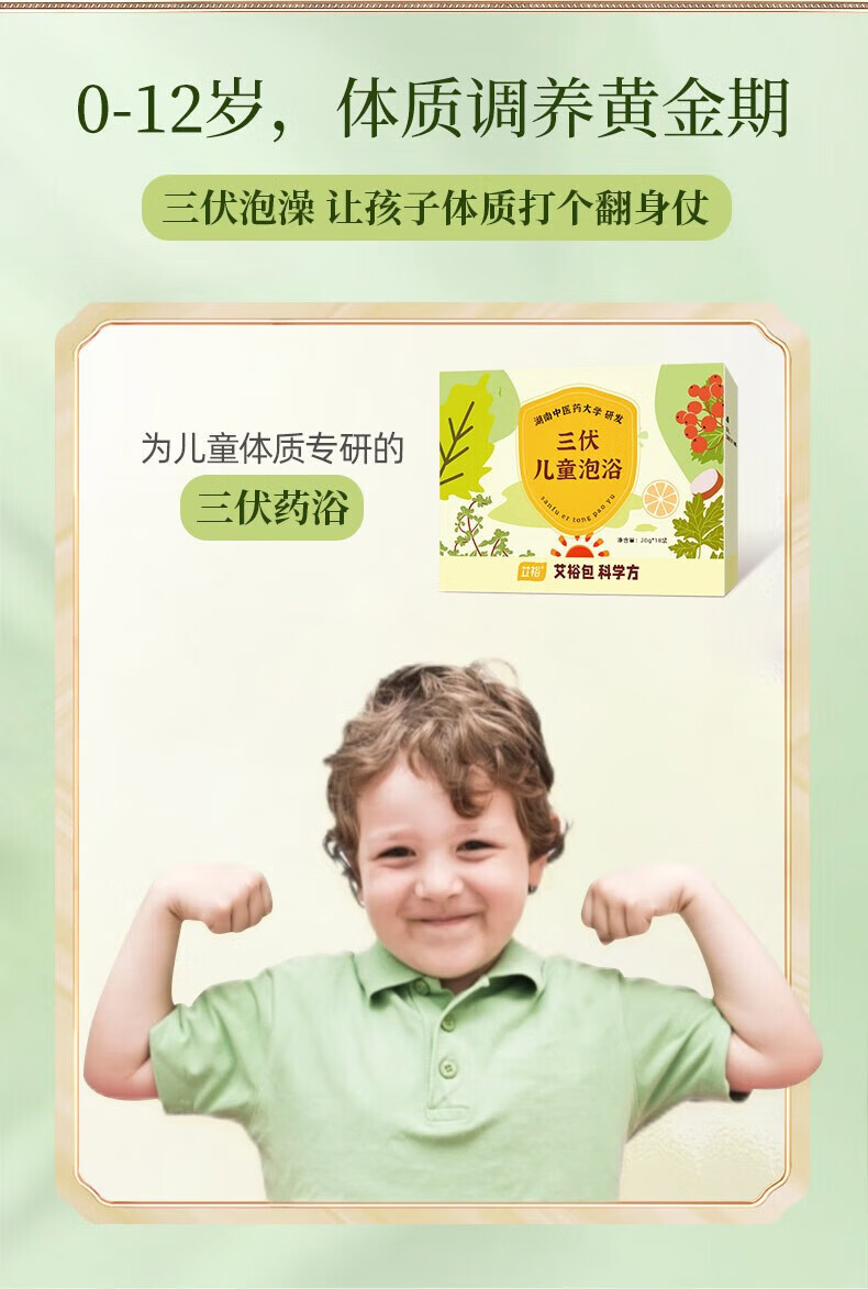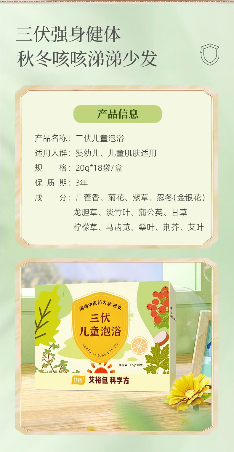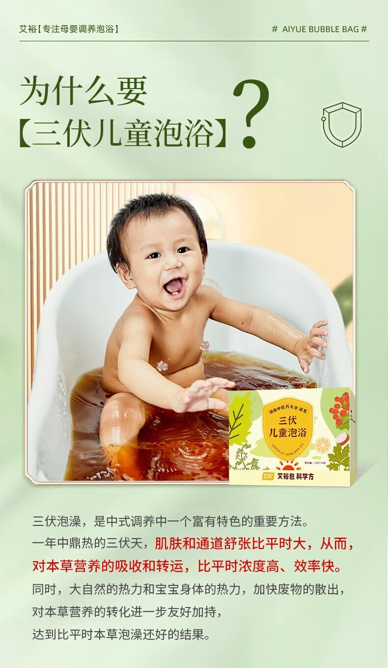 艾裕三伏儿童泡浴包 婴幼儿三伏贴三九天药浴包 艾草泡澡药包 063益体泡包(风寒/流涕)20g*12袋