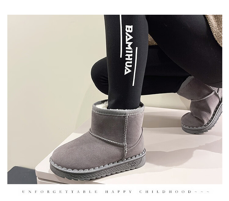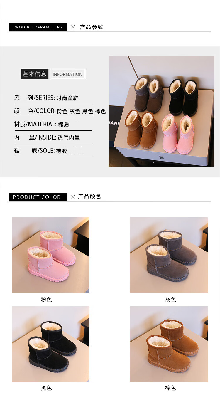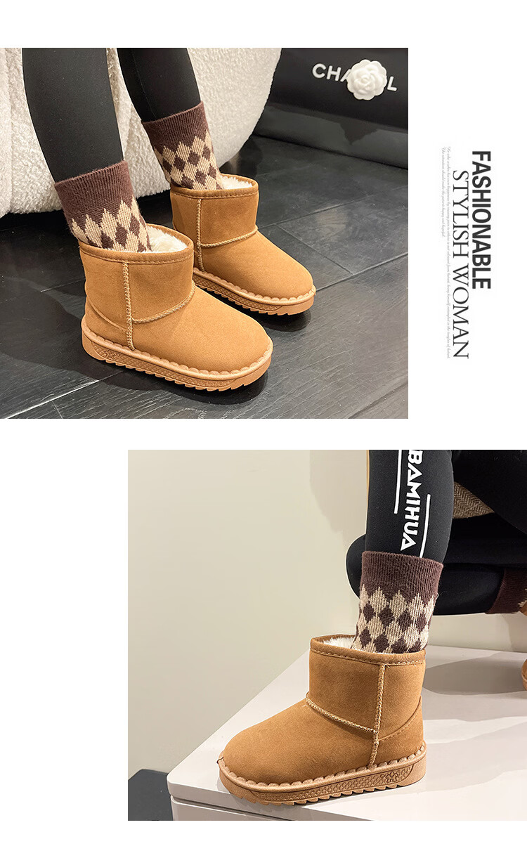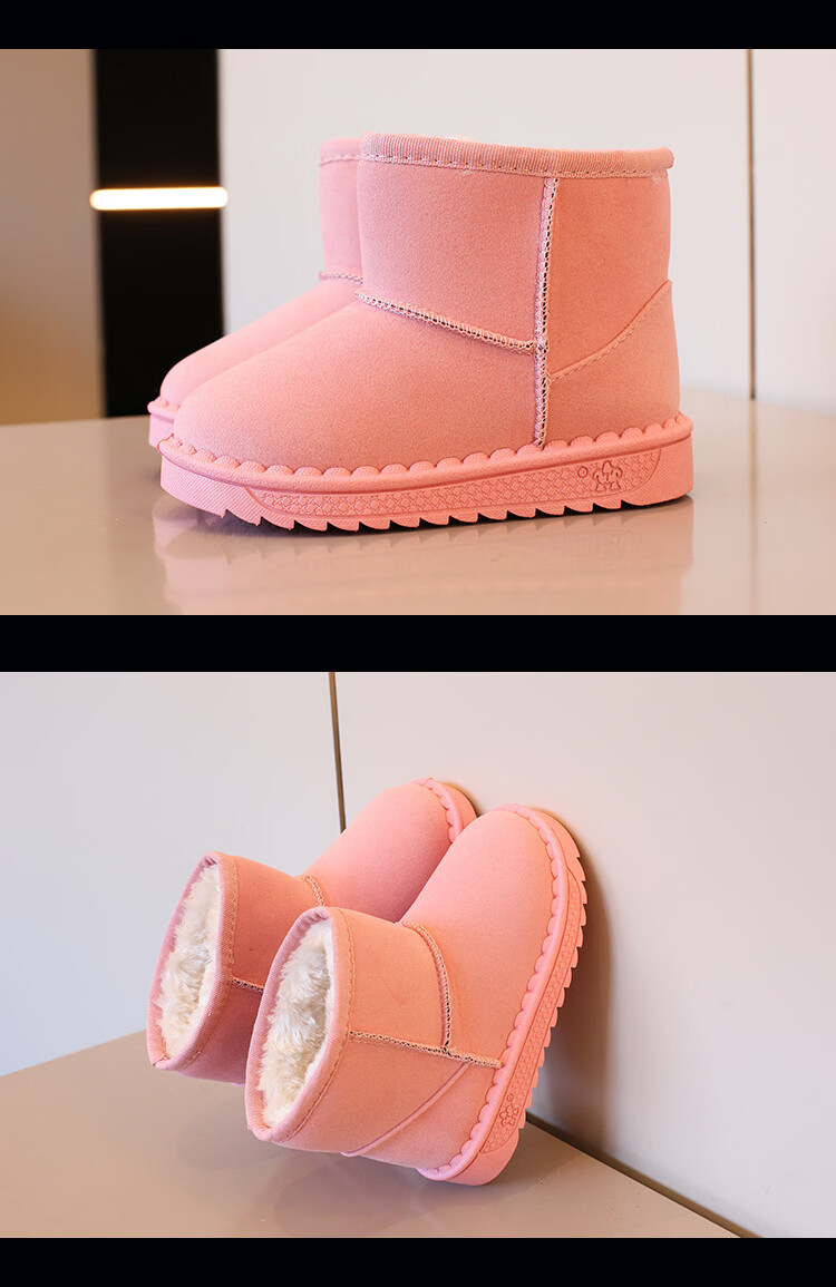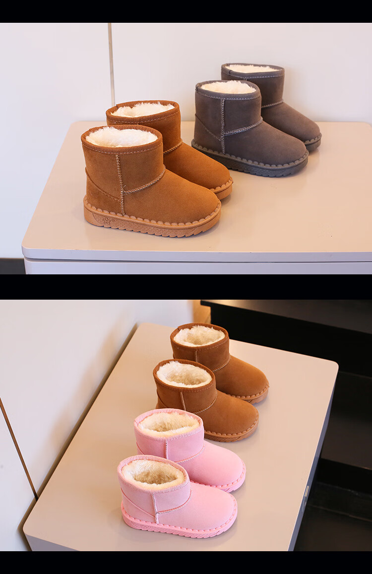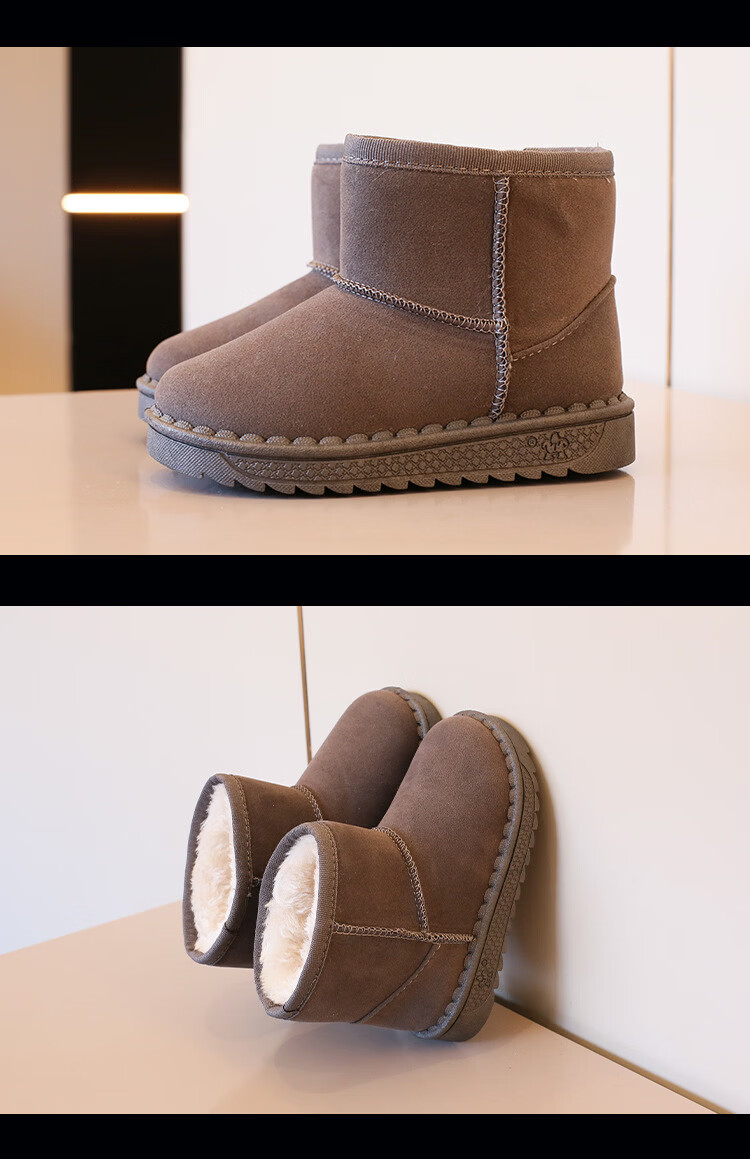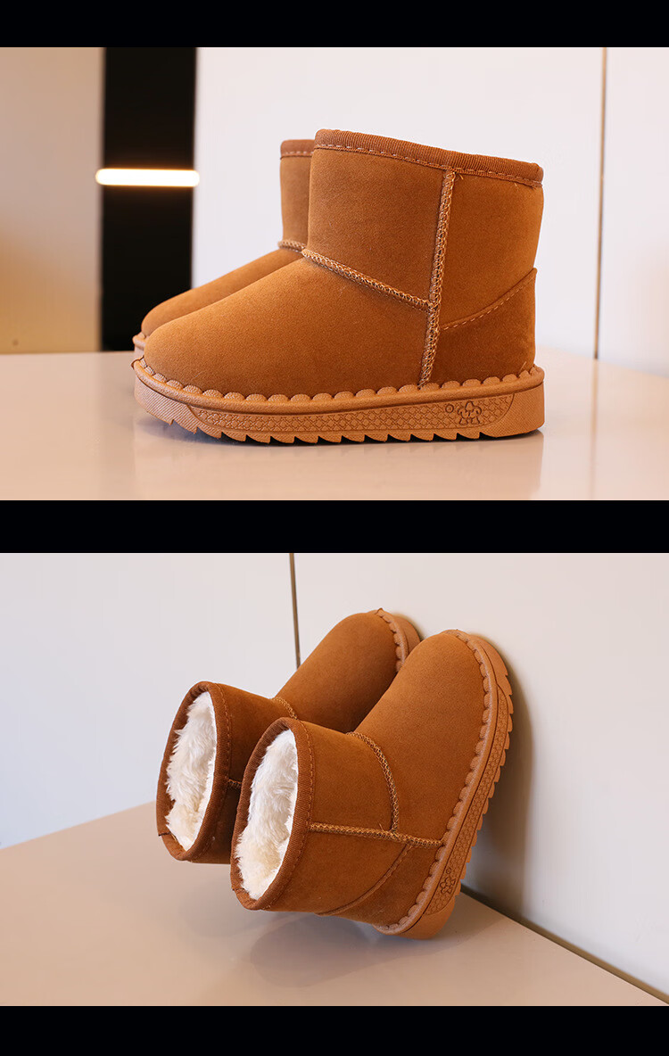 巴布豆巴布豆童鞋女宝宝冬季加绒靴子新款雪地靴男童轻便保暖二棉鞋 咖啡棕 27 适合脚长15.5cm