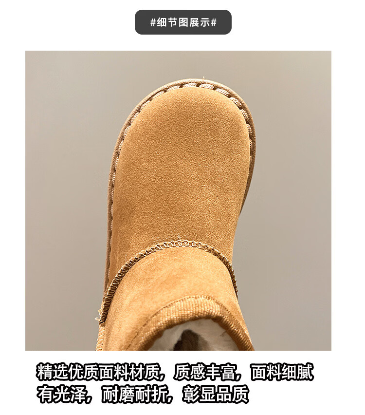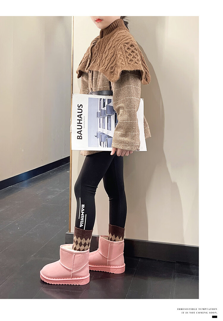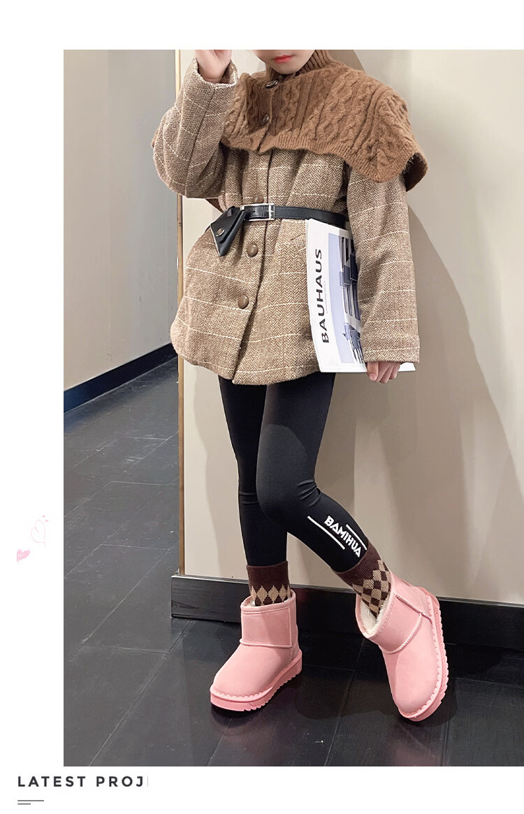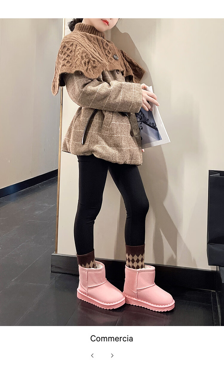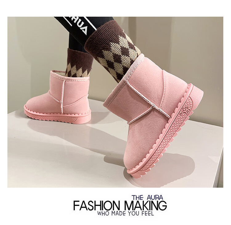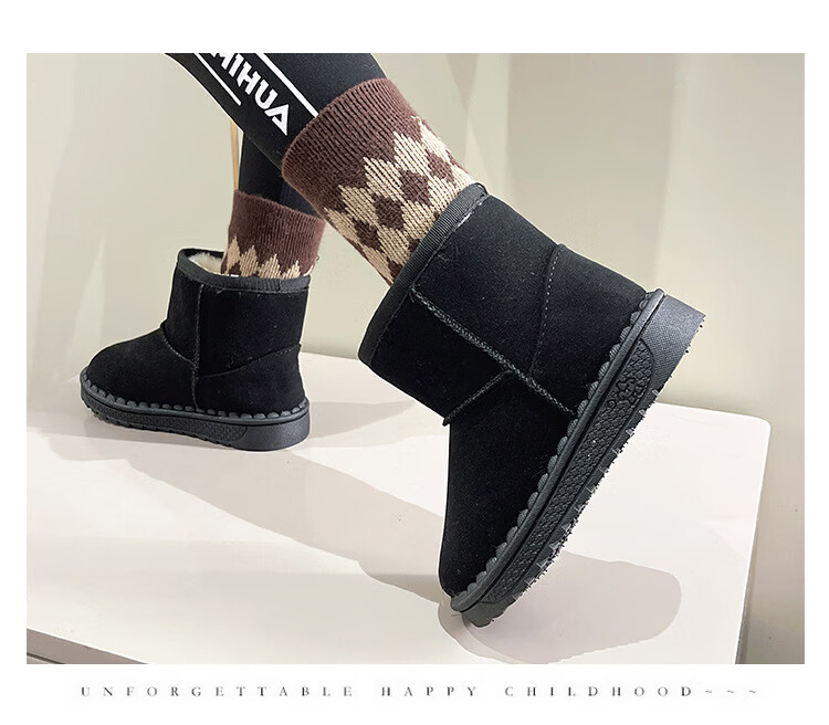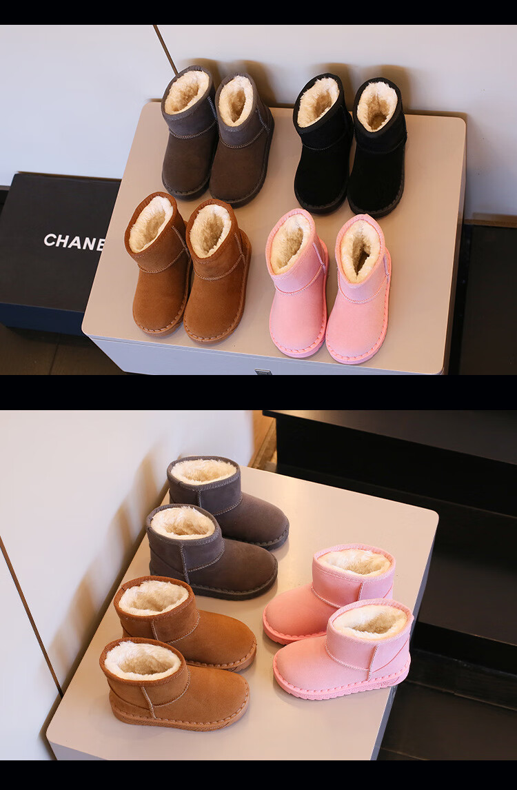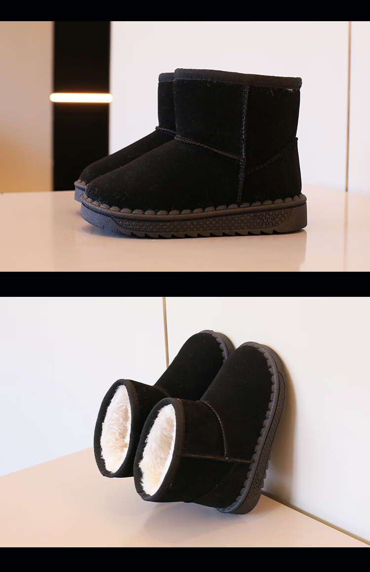 巴布豆巴布豆童鞋女宝宝冬季加绒靴子新款雪地靴男童轻便保暖二棉鞋 咖啡棕 27 适合脚长15.5cm