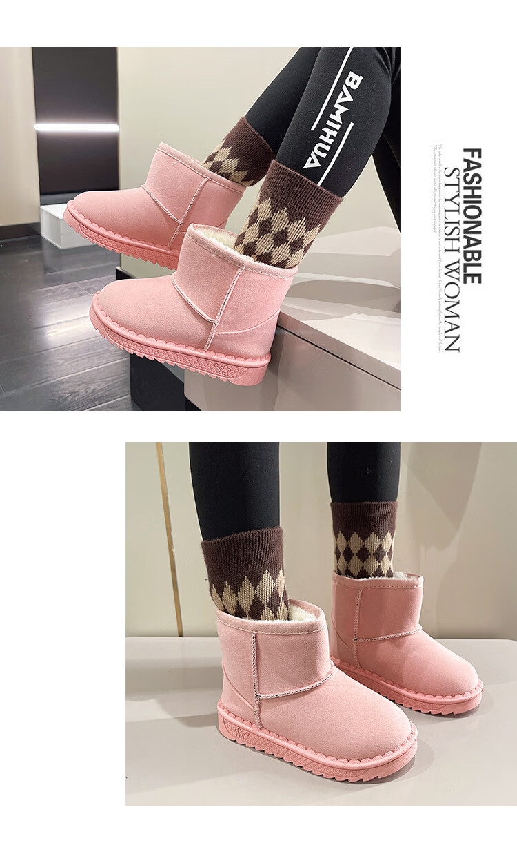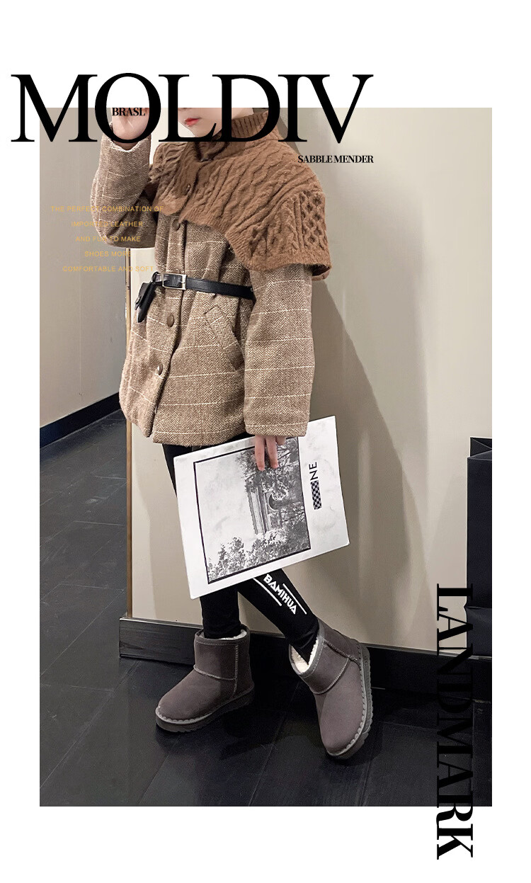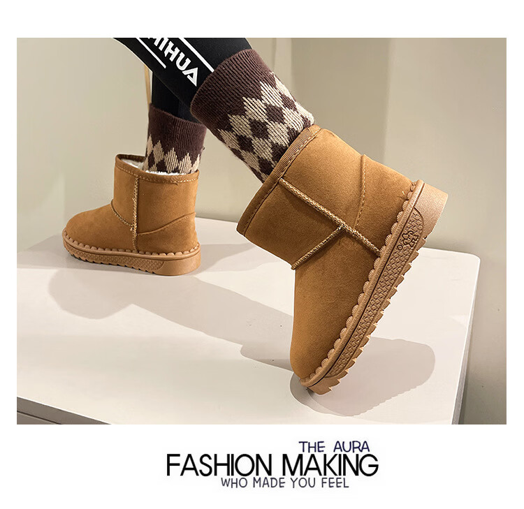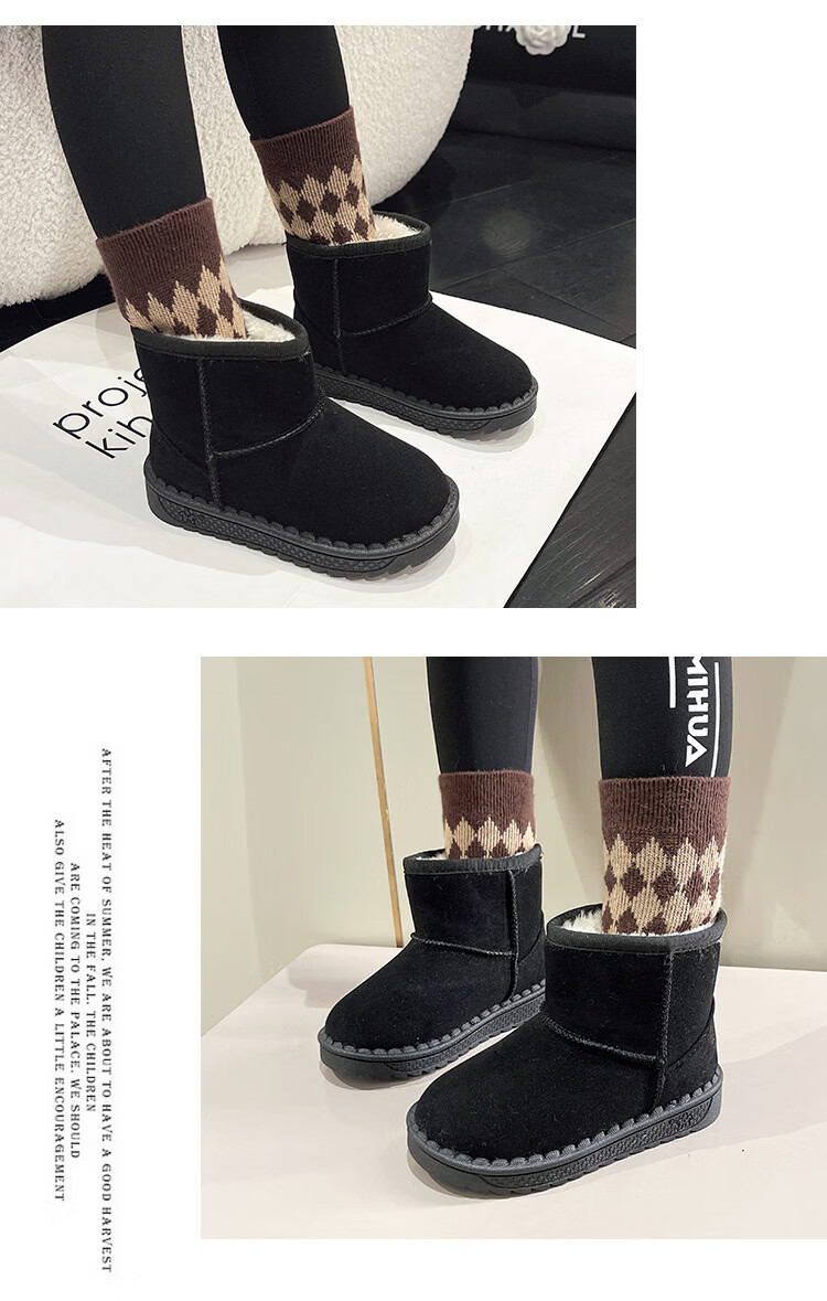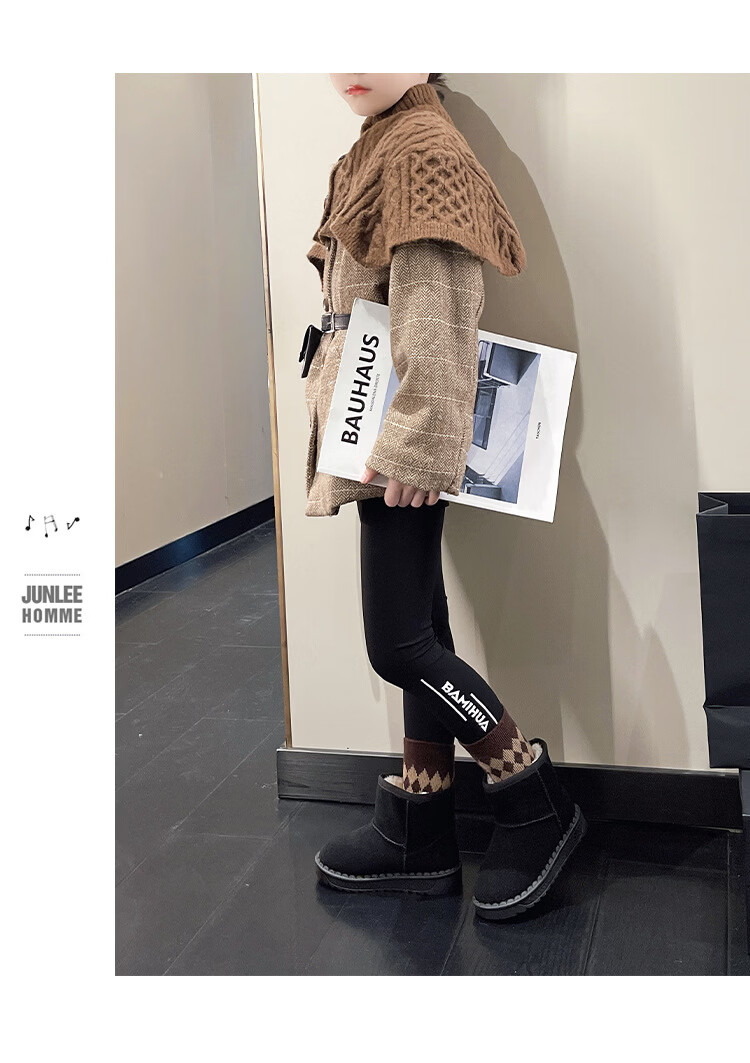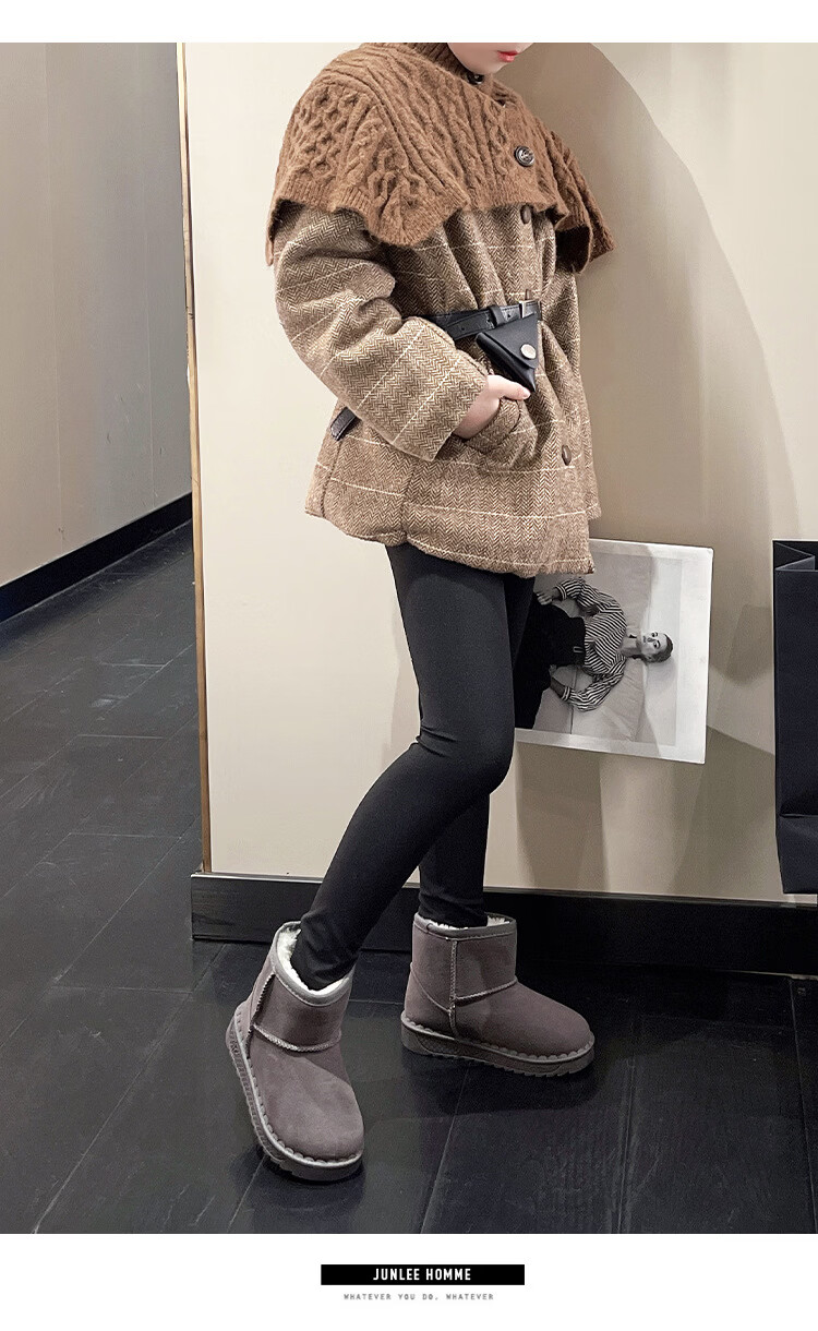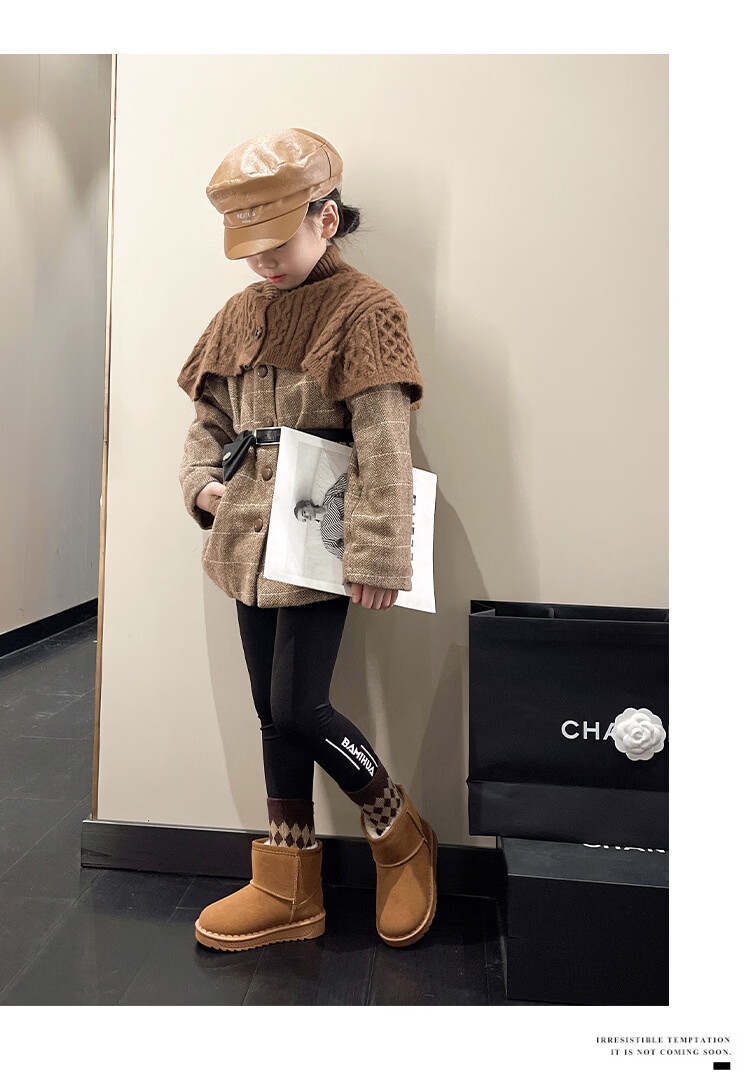 巴布豆巴布豆童鞋女宝宝冬季加绒靴子新款雪地靴男童轻便保暖二棉鞋 咖啡棕 27 适合脚长15.5cm