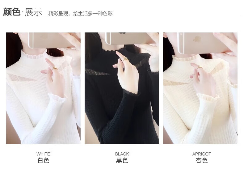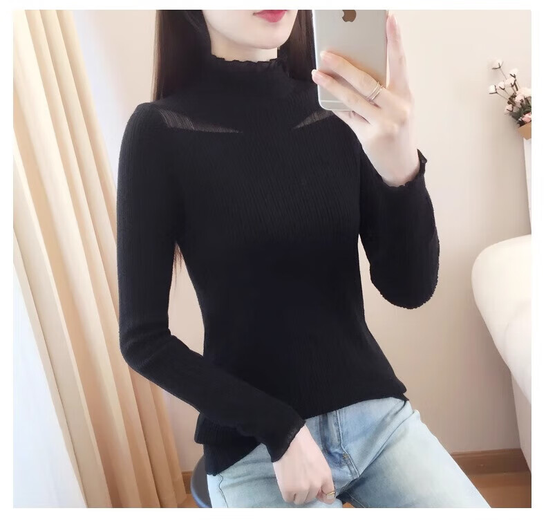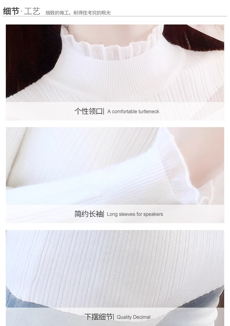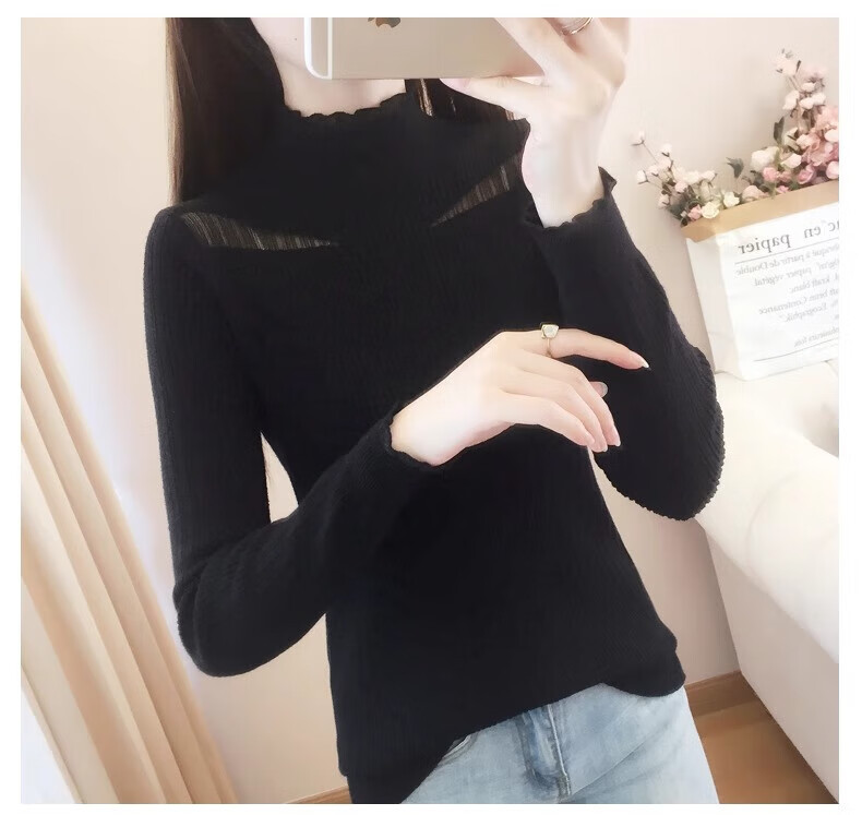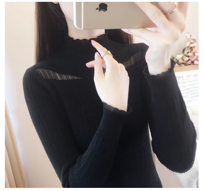 香影芬半高领蕾丝网纱拼接毛衣打底衫女秋冬2025新款内搭修身针织衫上衣 白色 XL (建议115-125斤)