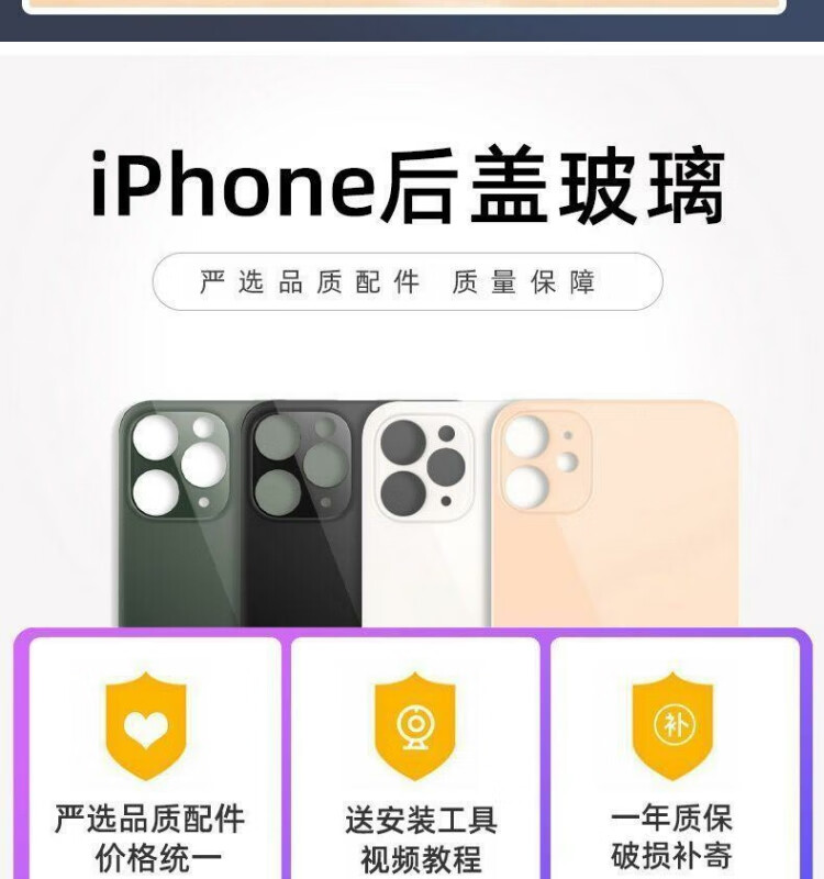 适用苹果后盖玻璃iPhone8p/xr/xs/xsmax/11pm/12/13/14防摔后玻璃 大孔玻璃送工具包 苹果14ProMAX银白色