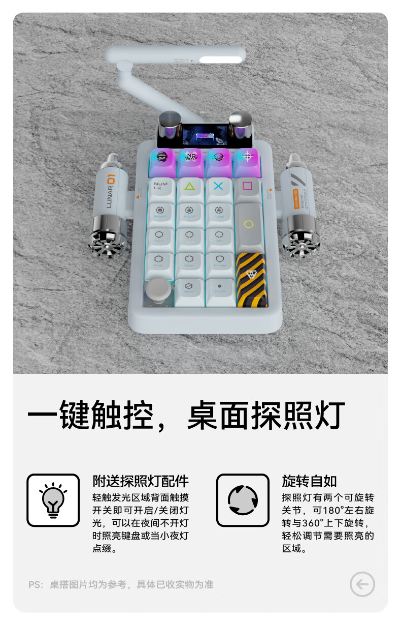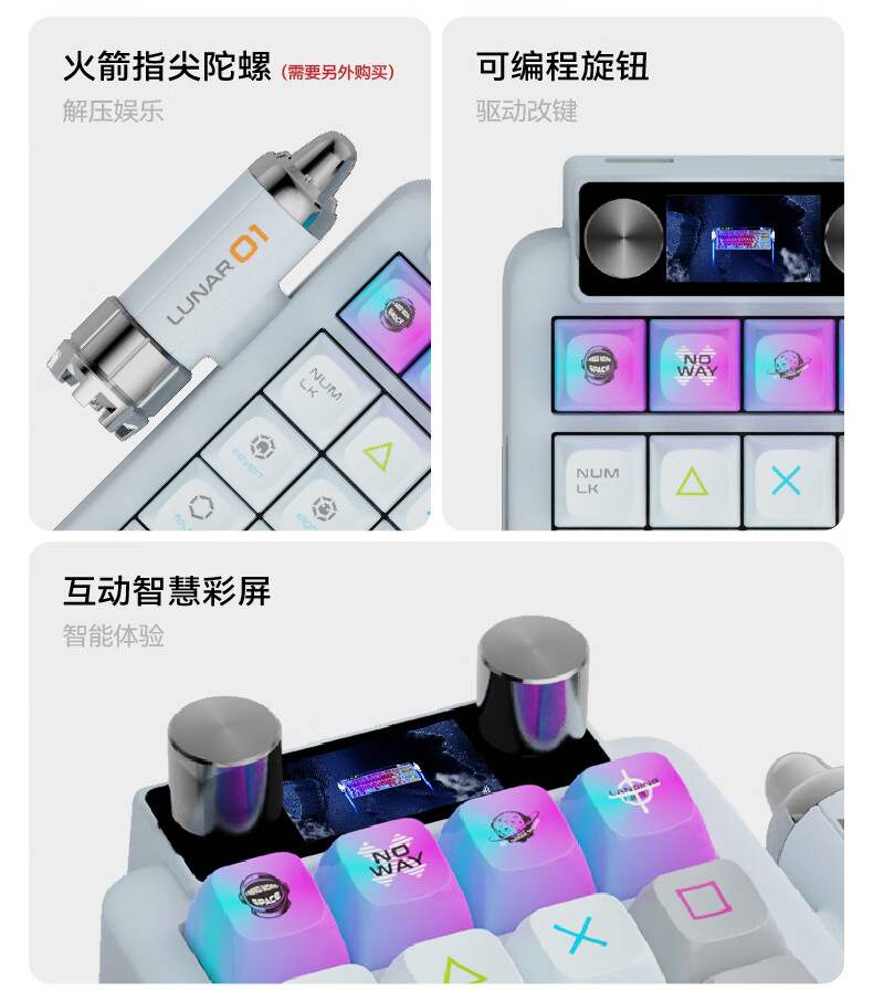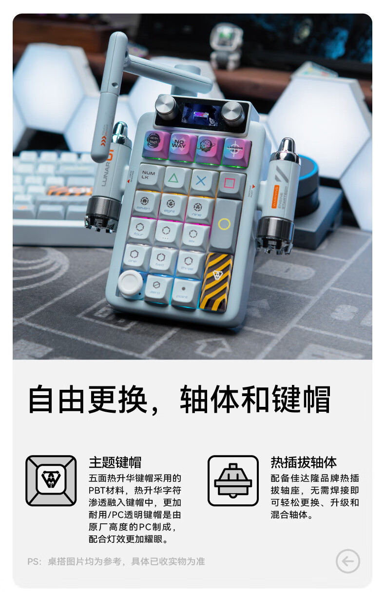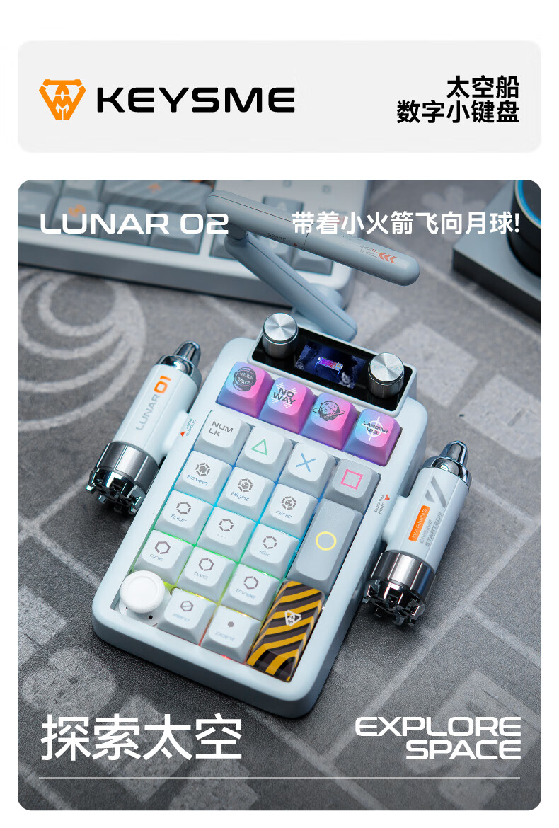 KEYSMELunar02数字小键盘无线蓝牙 三模机械键盘客制化 全键热插拔男女竞技游戏办公电脑iPad小键盘 黑月光小键盘+五面热升华键帽(不含火箭)RGB 佳达隆火星轴(线性轴)