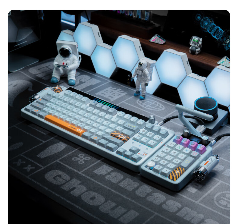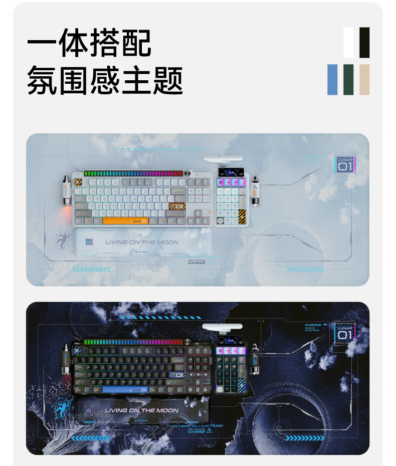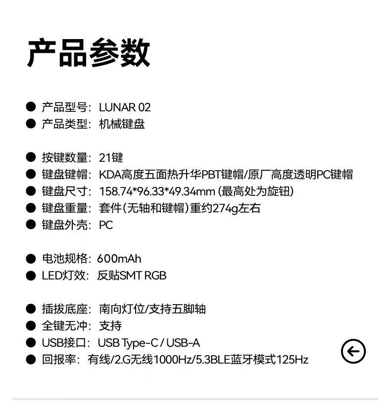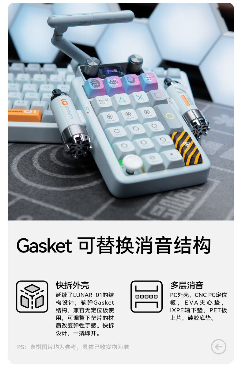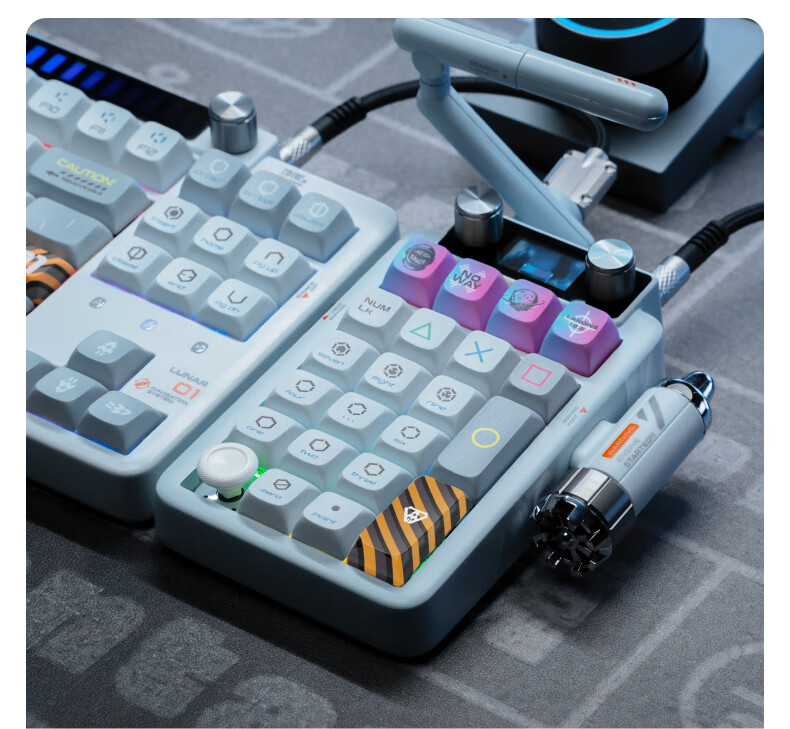 KEYSMELunar02数字小键盘无线蓝牙 三模机械键盘客制化 全键热插拔男女竞技游戏办公电脑iPad小键盘 黑月光小键盘+五面热升华键帽(不含火箭)RGB 佳达隆火星轴(线性轴)