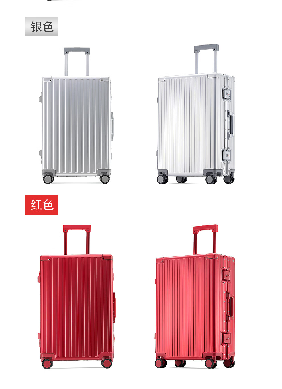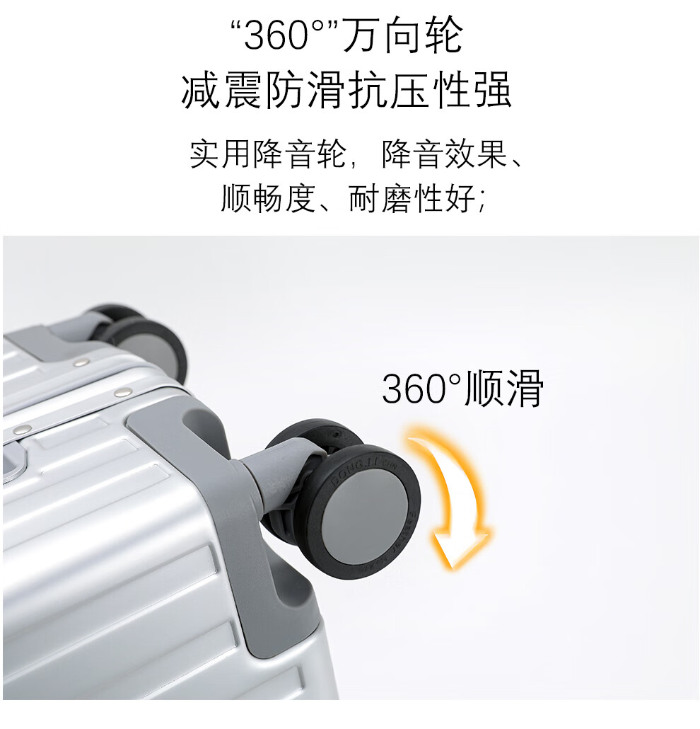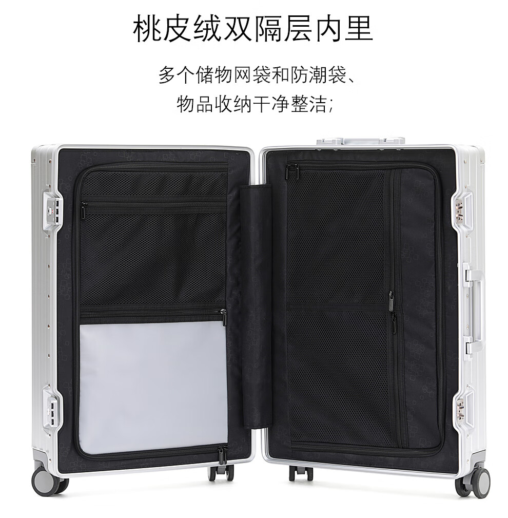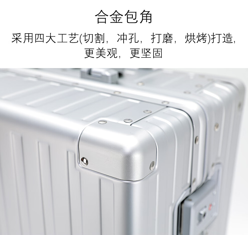 箱君行旅行李箱大容量铝合金框拉杆箱男女学生密码箱轻音万向轮商务旅行箱 加厚铝框款可坐人-银色 22英寸 【短途旅行】-顺丰-