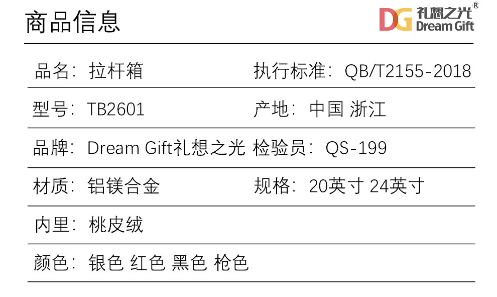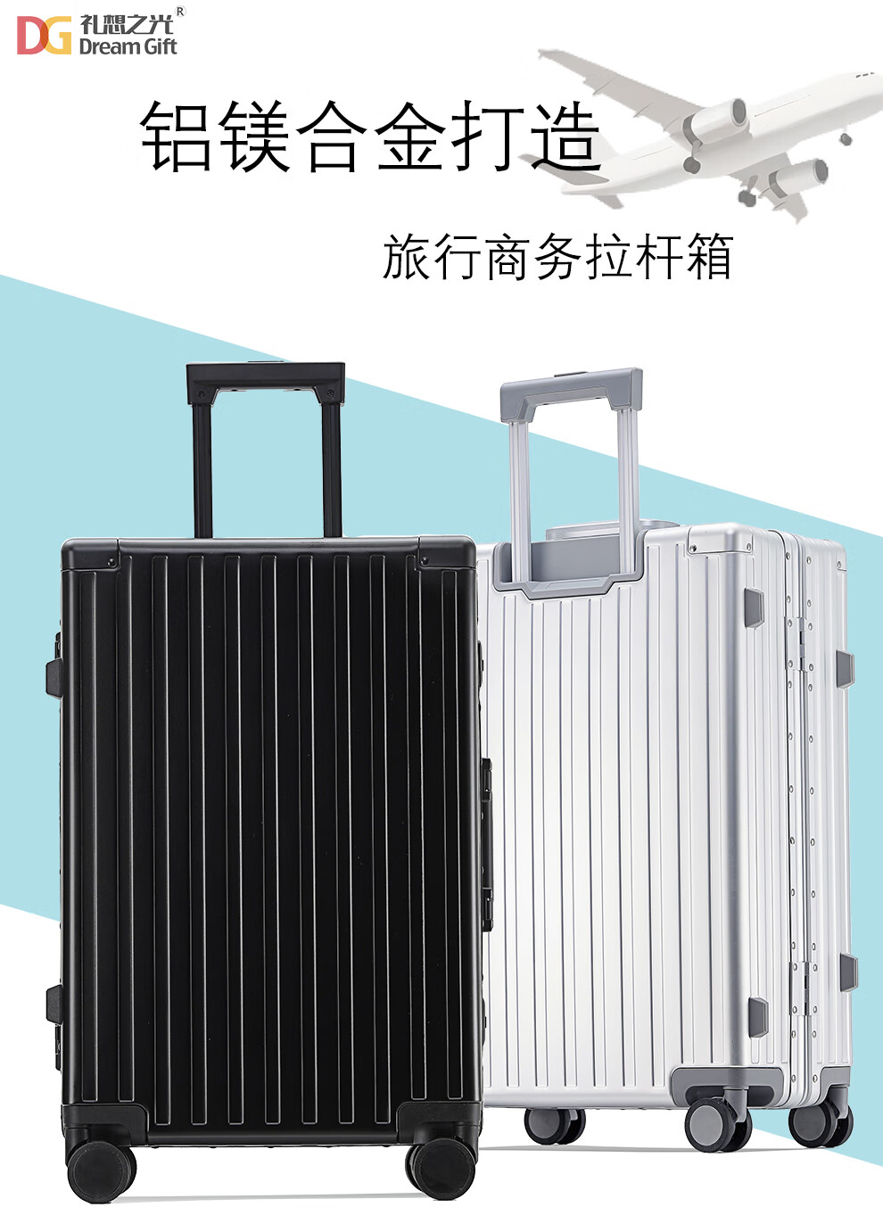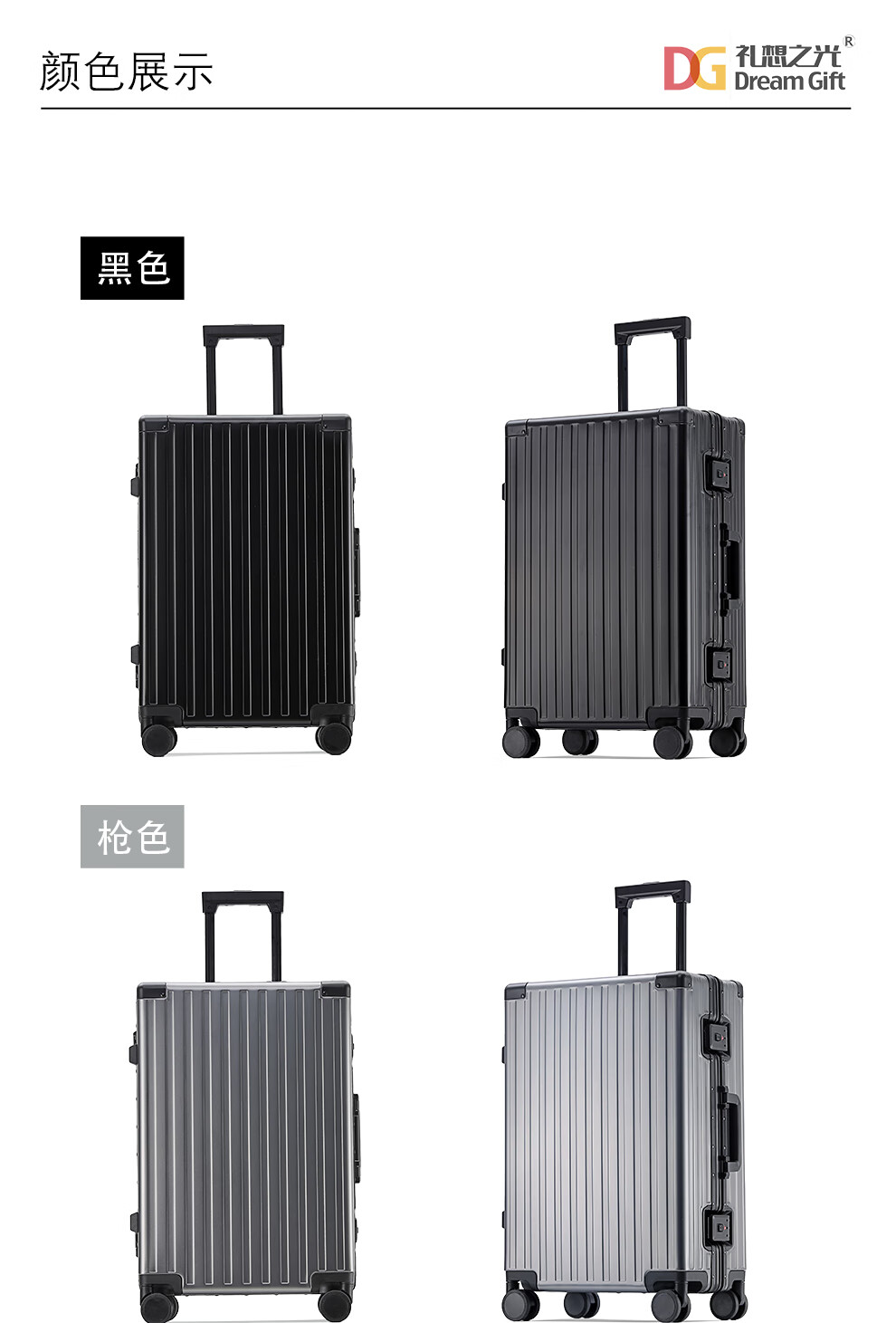 礼想之光TB2601铝镁合金坚固耐用商务旅行拉杆箱 枪色 24英寸