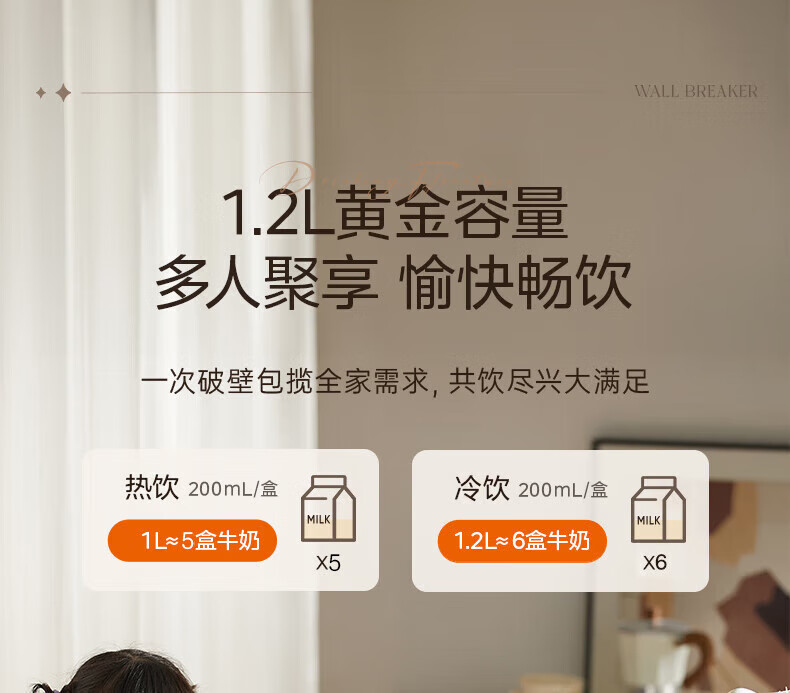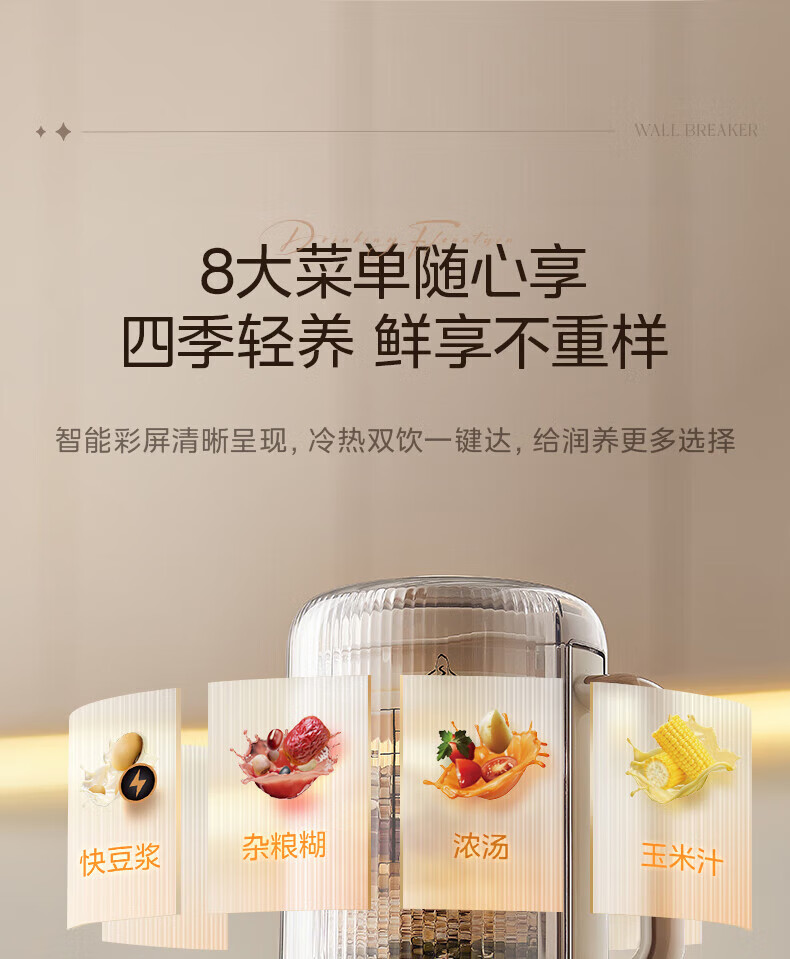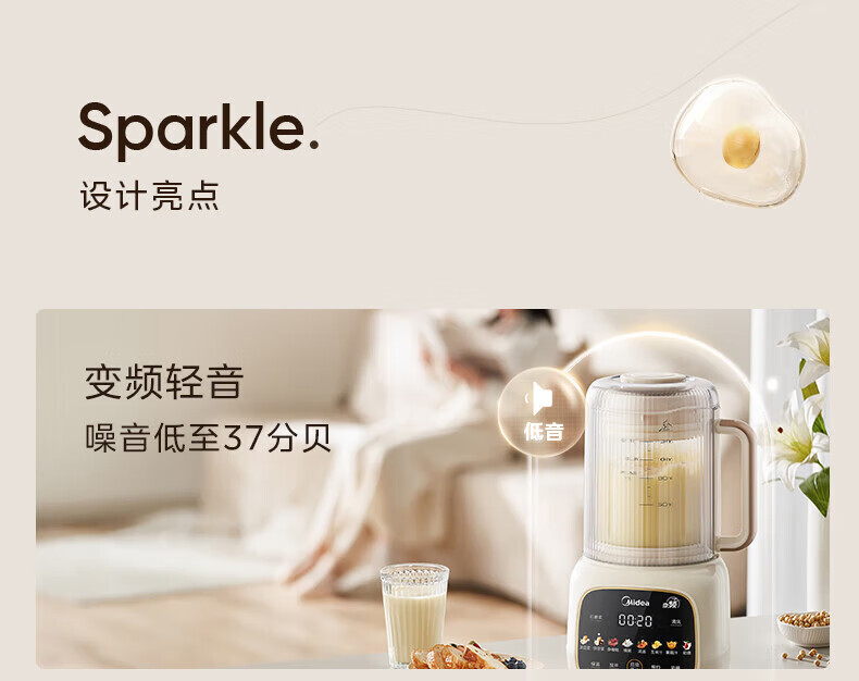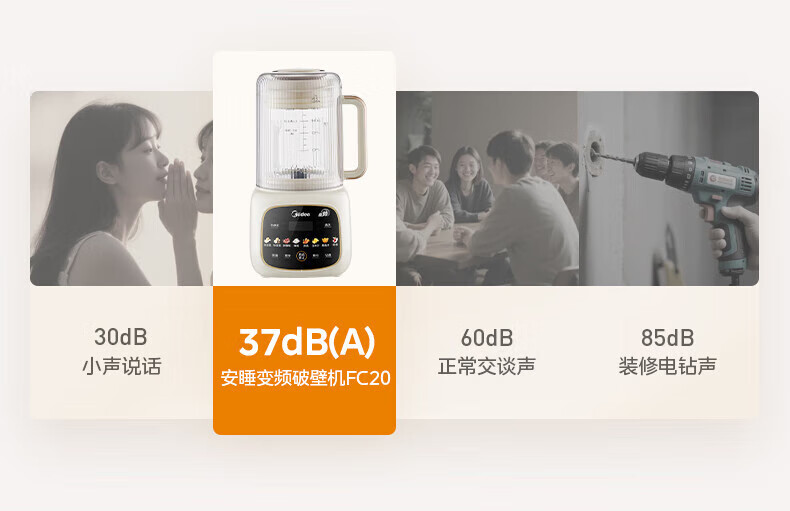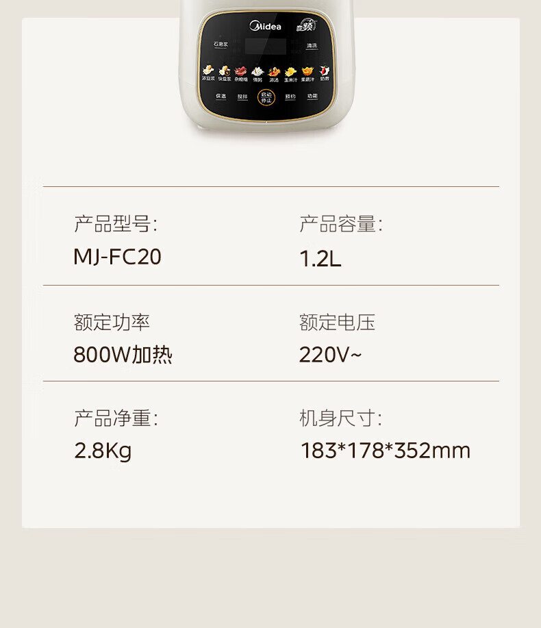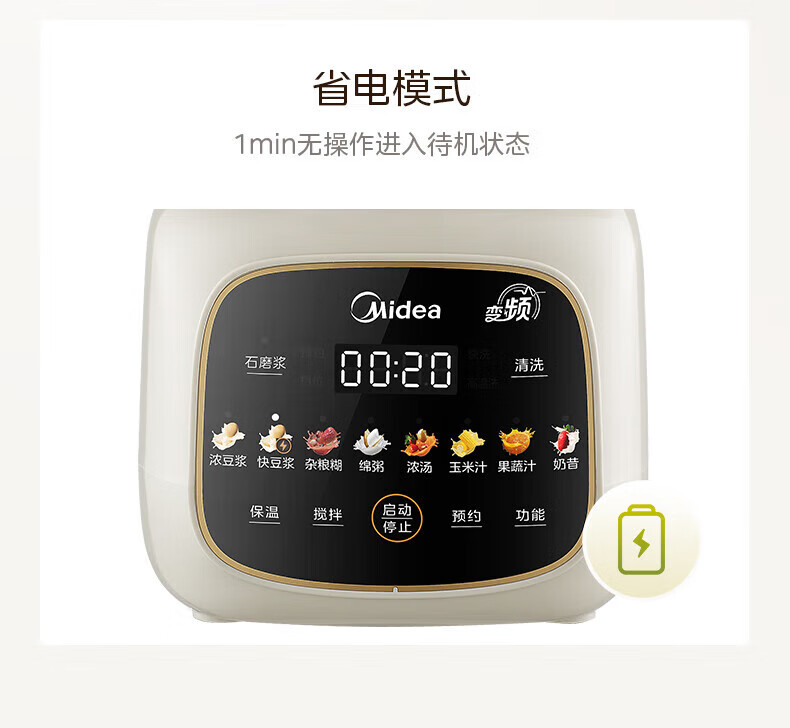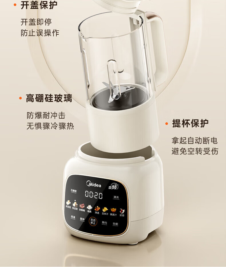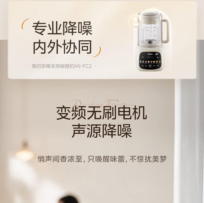 美的(Midea)破壁机家用安睡变频破壁机小型1-2人豆浆机全自动免煮2025新款静音榨汁机破壁机二合一料理机 FC20 【变频FC20】更轻音巴氏杀菌1.2L