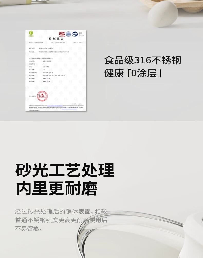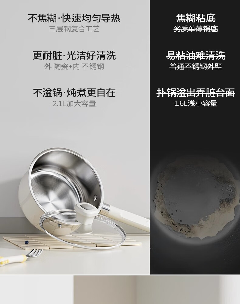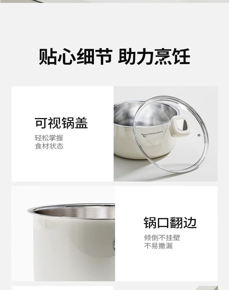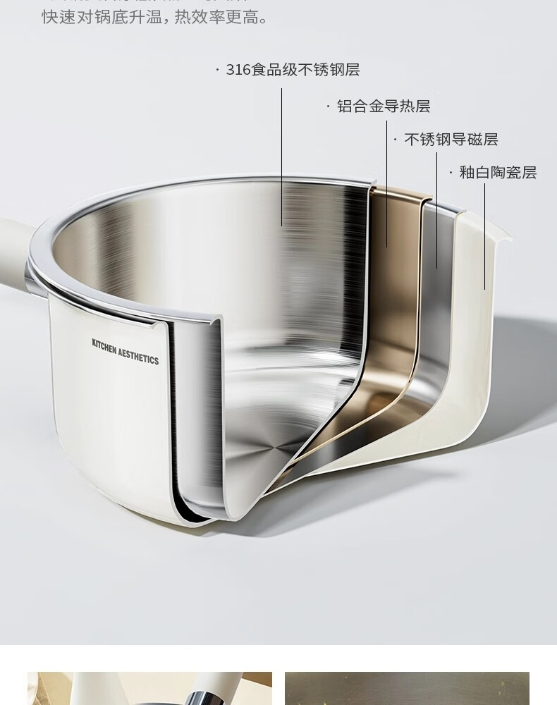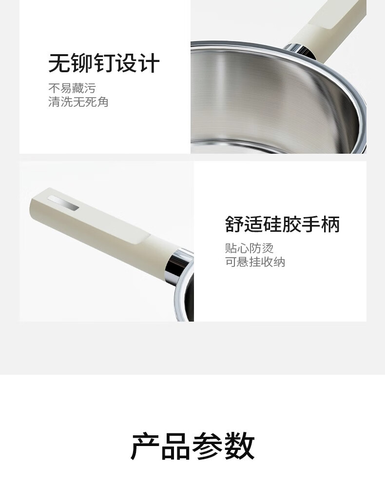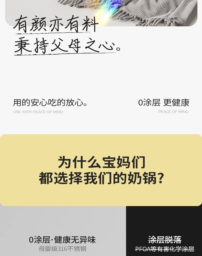 荣事达无涂层奶锅316不锈钢陶瓷婴儿宝宝辅食锅煮面热奶一体汤锅 陶钢奶锅+蒸屉【真·316不锈钢】 18cm