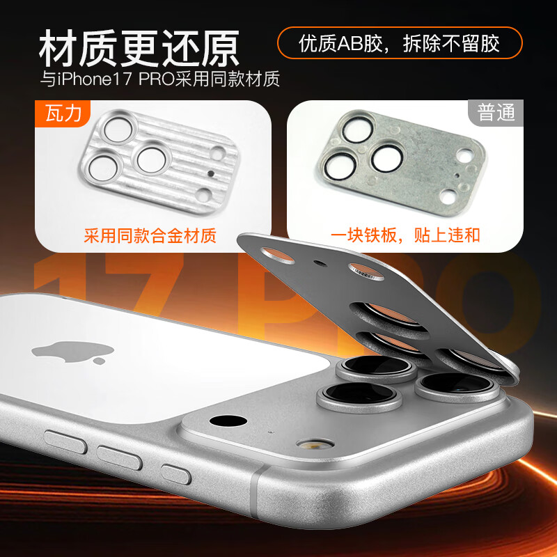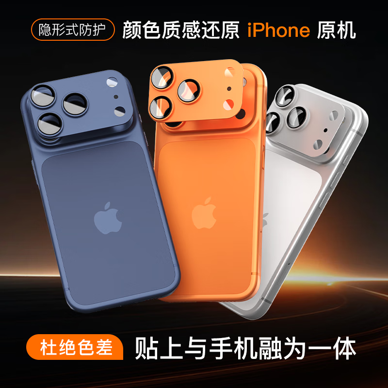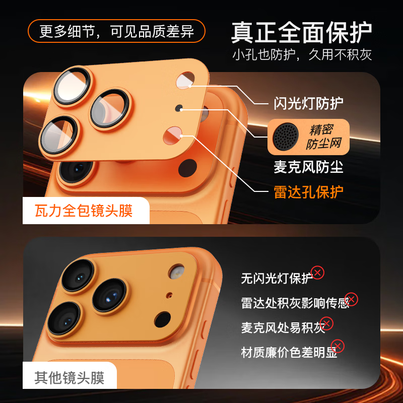 瓦力 【AR增透丨镜头全包】适用苹果17promax镜头膜iPhone17ProMax后置摄像背屏一体膜全包金属星宇橙