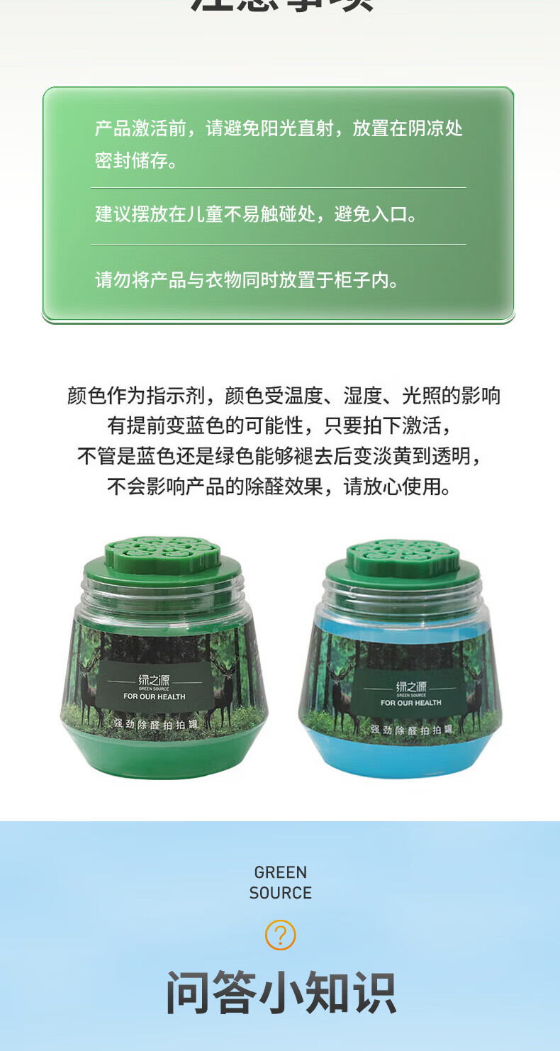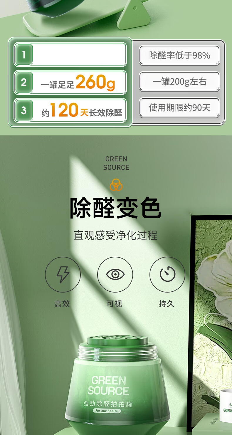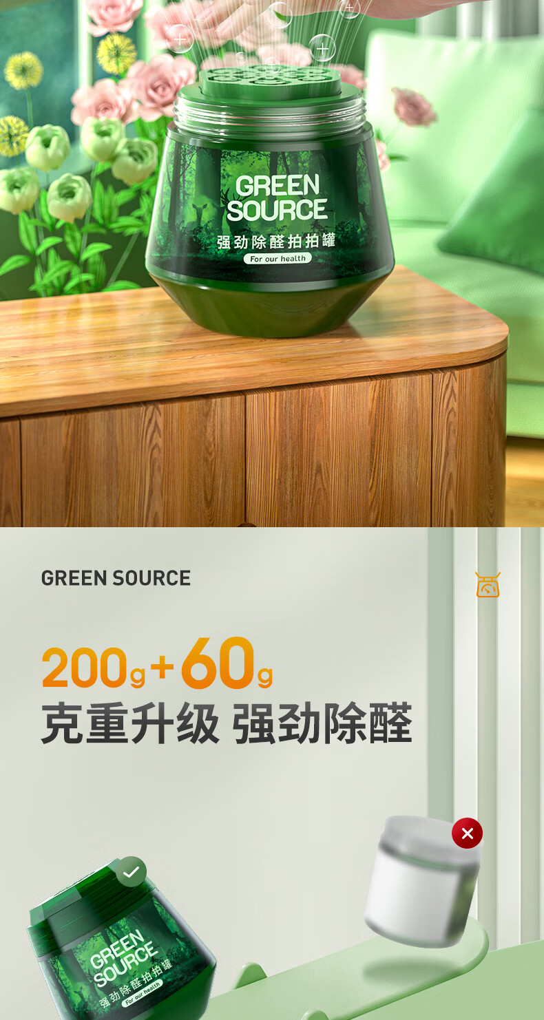绿之源去除甲醛清除剂除醛果冻凝胶小绿罐家用车内快速除甲醛魔盒拍拍罐 强劲除醛拍拍罐4罐装