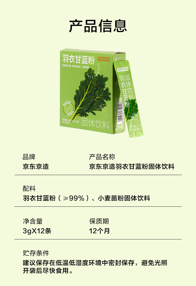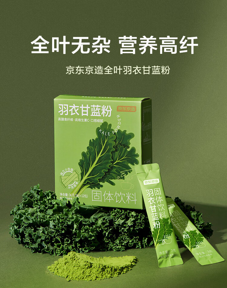 京东京造鲜来多羽衣甘蓝粉青汁果蔬粉自然原粉即食冲饮膳食纤维代餐粉36g