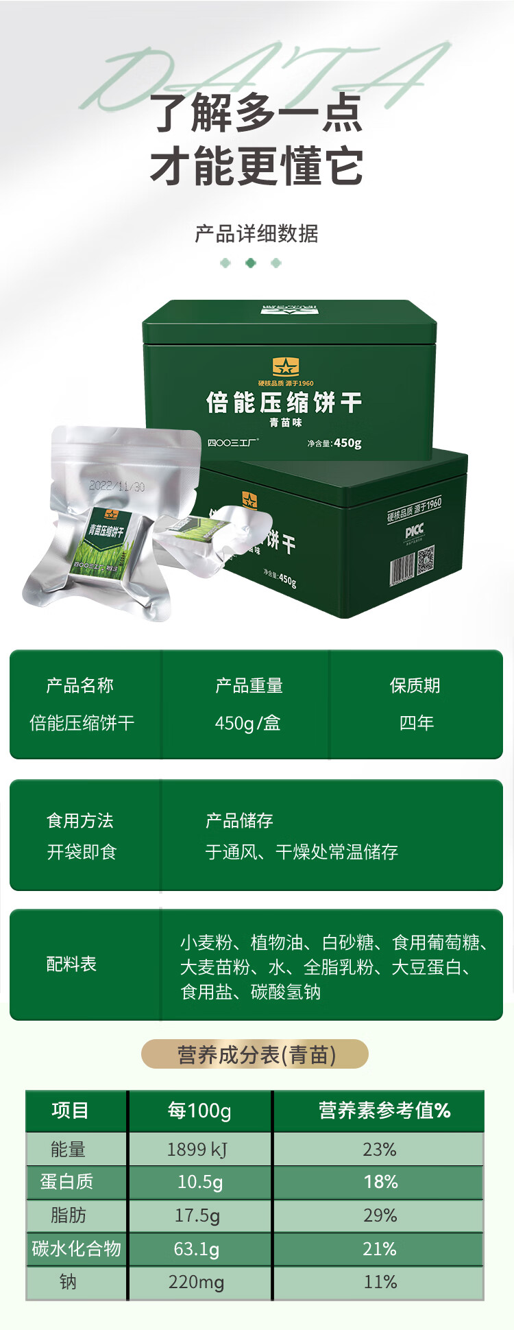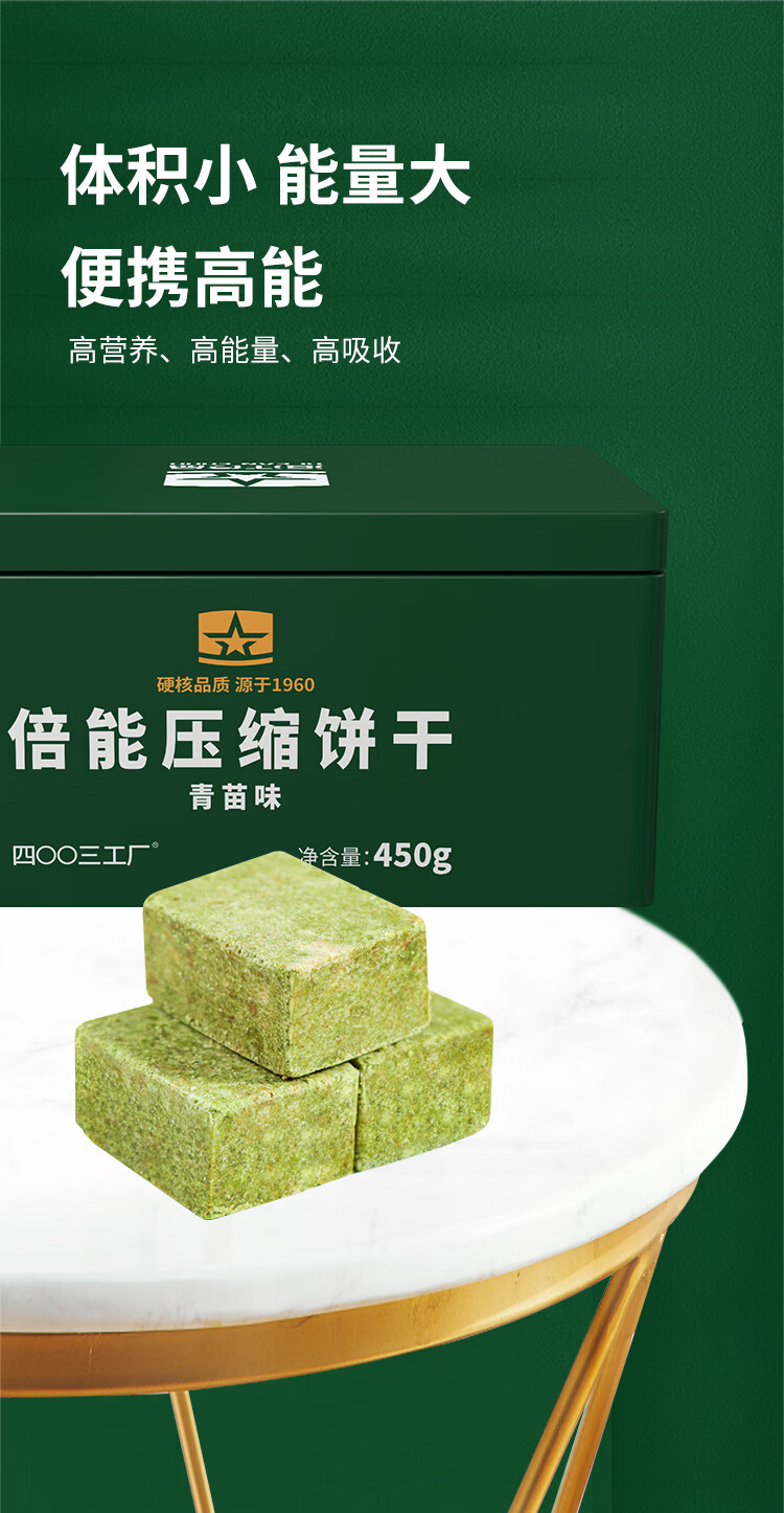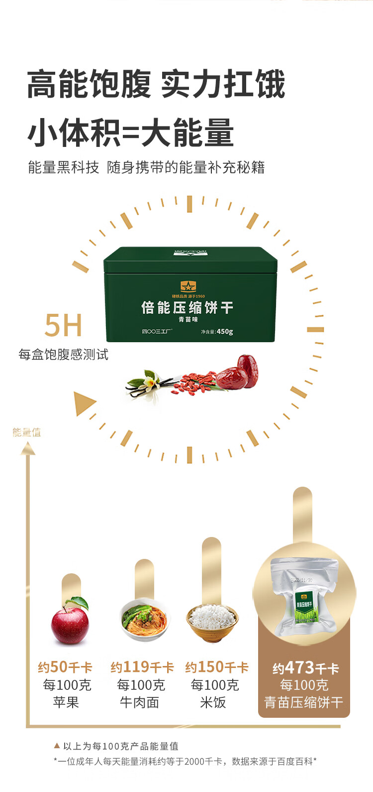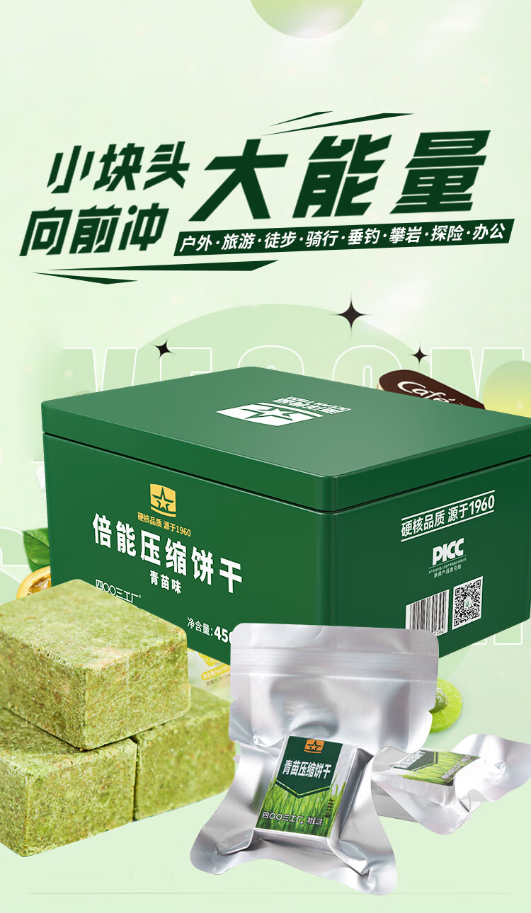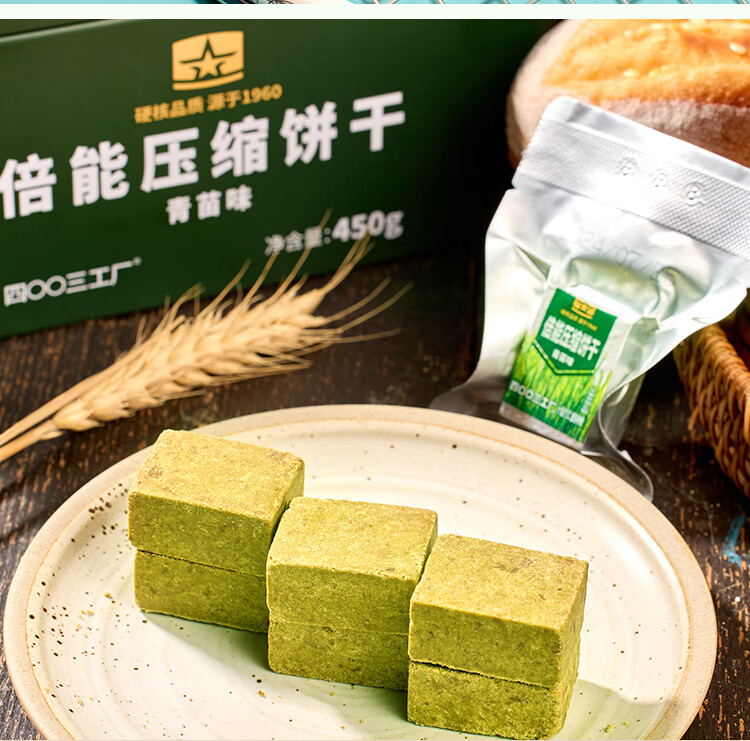 900倍能压缩饼干 户外代餐方便即食家庭应急储备 压缩干粮青苗味450g