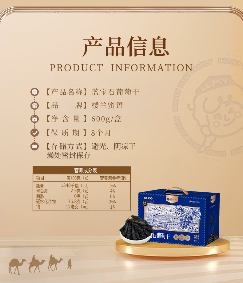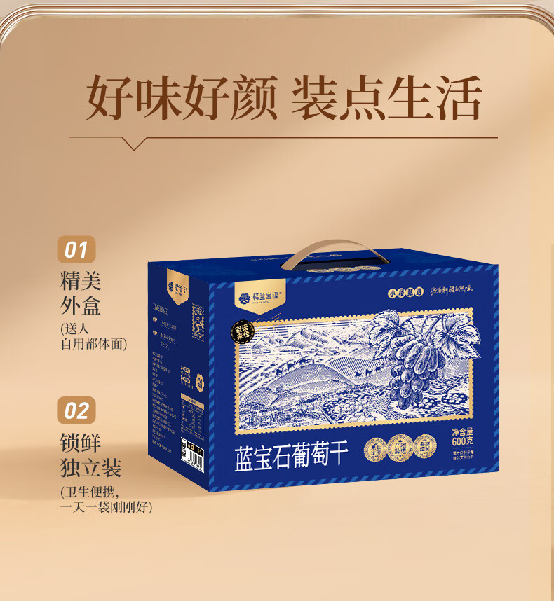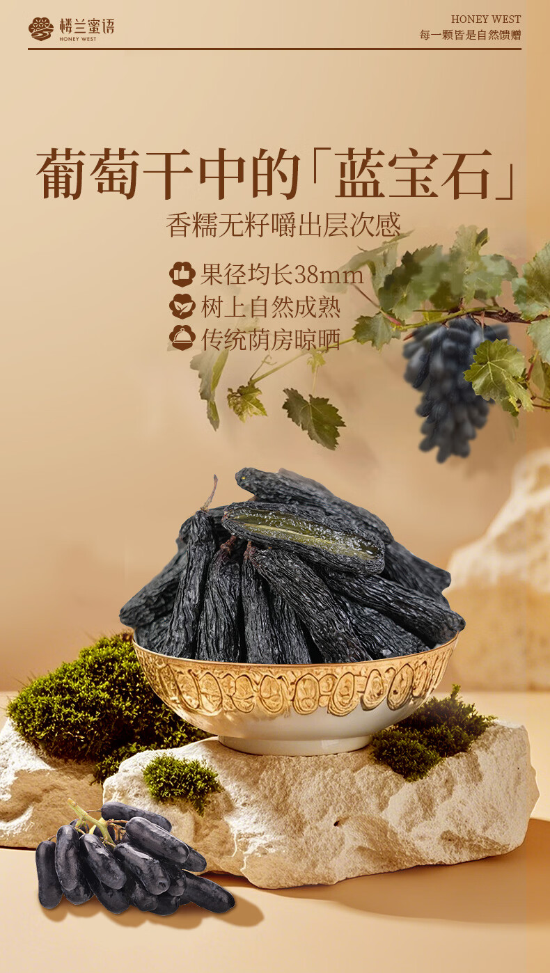 楼兰蜜语新疆大个蓝宝石葡萄干600g免洗特产年货送礼盒儿童黑手指零食蜜饯