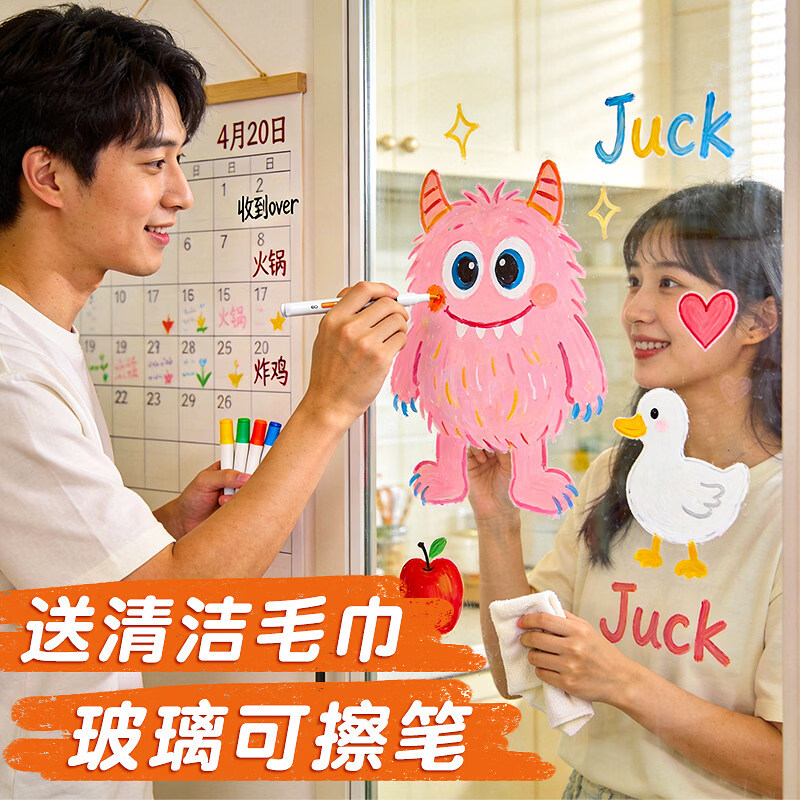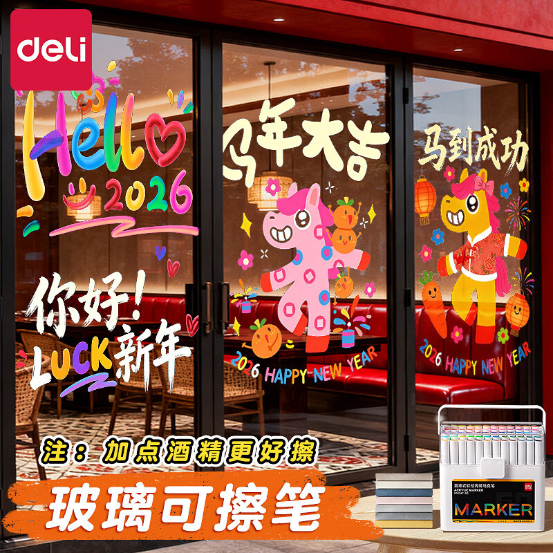得力(deli)玻璃专用麦克笔可擦彩色记号笔涂鸦液体海报玻璃门黑板直液式软头丙烯麦克笔彩色萤光板压克力橱窗 盒装48色【直液式玻璃可擦色彩饱满】