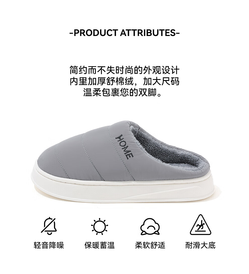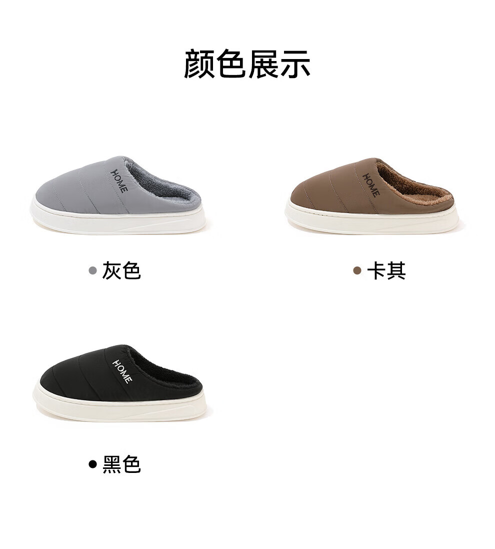 FZT保暖棉拖鞋女士2025秋冬季新款防滑毛绒居家简约轻便棉拖鞋男士 黑色 36-37 正码
