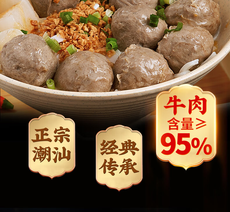 潮夫道纯牛肉丸250g 牛肉含量>95%正宗潮汕手打火锅食材关东煮烧烤丸料