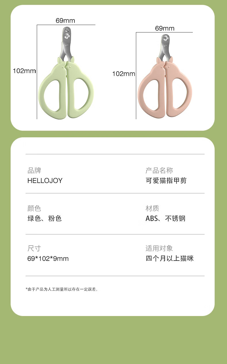 HELLOJOY猫咪专用指甲剪盲剪猫剪指甲神器宠物指甲钳指甲刀 绿色